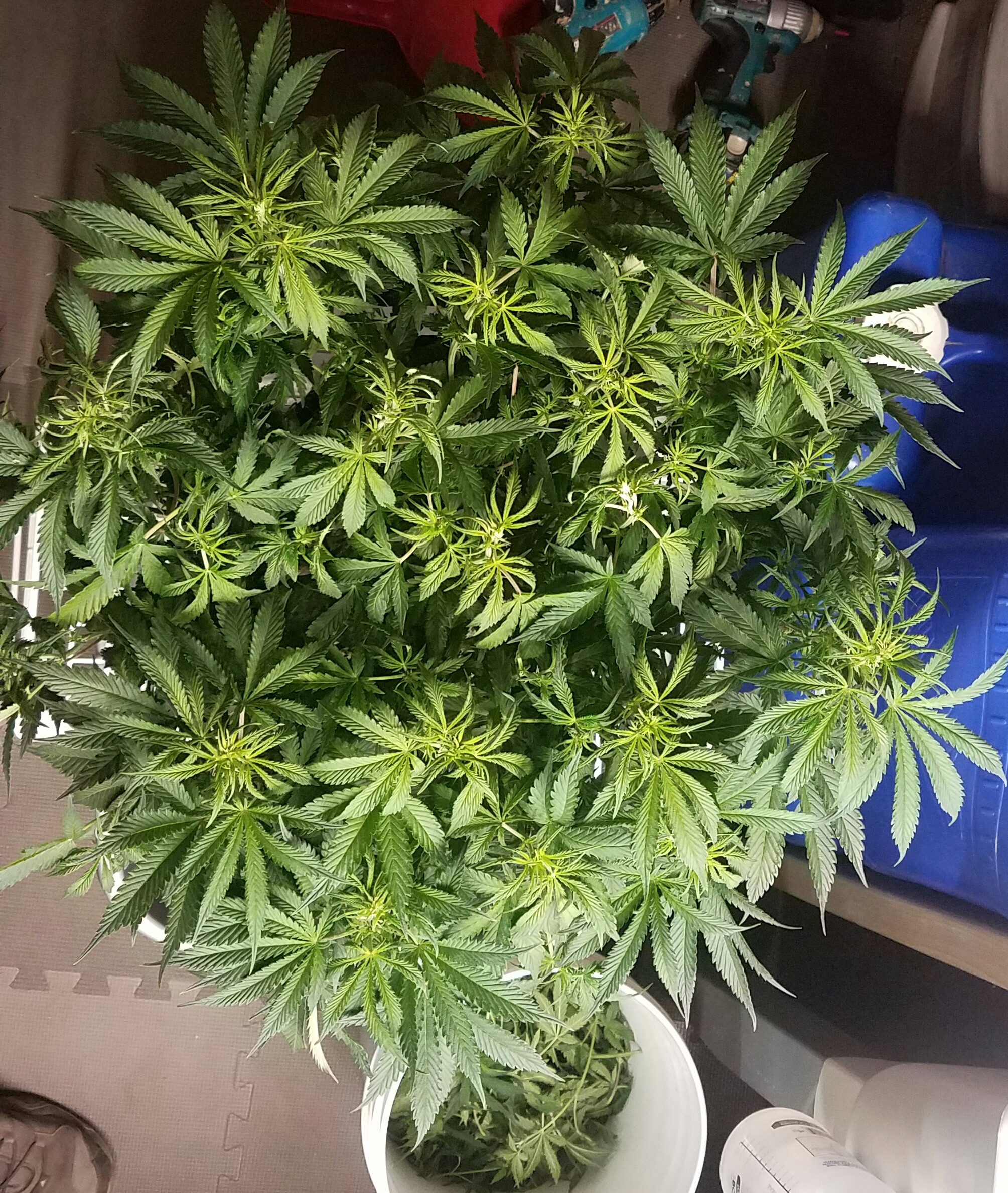 Could it be the late bloomer? They all got mixed up, no 1-2-3-4 labels, No notes, straight free handing this auto grow from here and memory, I lost her in the pile some time ago, It's not like I can keep the Phenos so every two days, pots are light when I lift them, full nute-nute-nute-sledgehammer-repeat. I'd like to note this is not my normal watering practices with my Photoperiod grows, I'm pushing more nute watering but using sledgehammer on the regular.