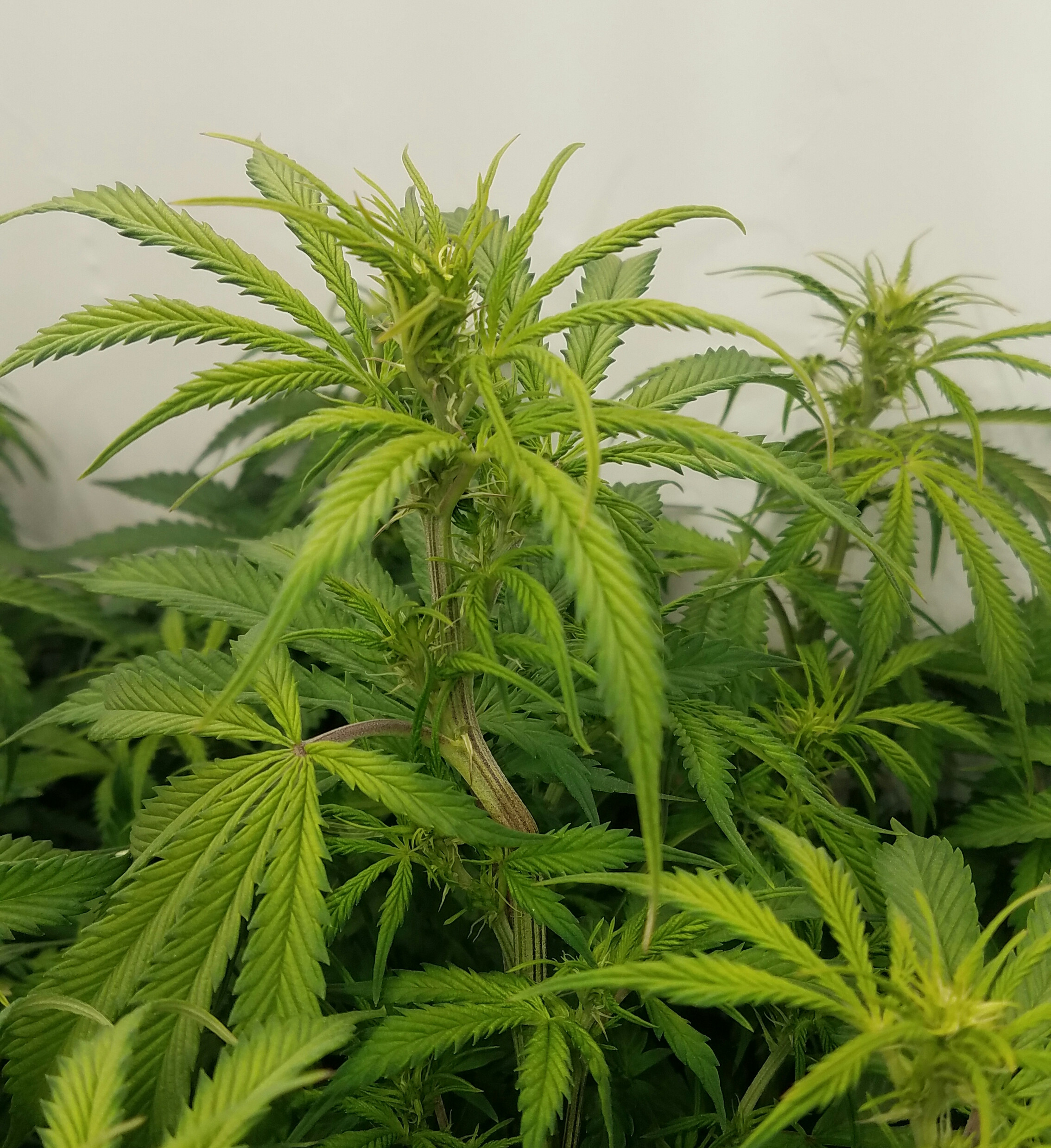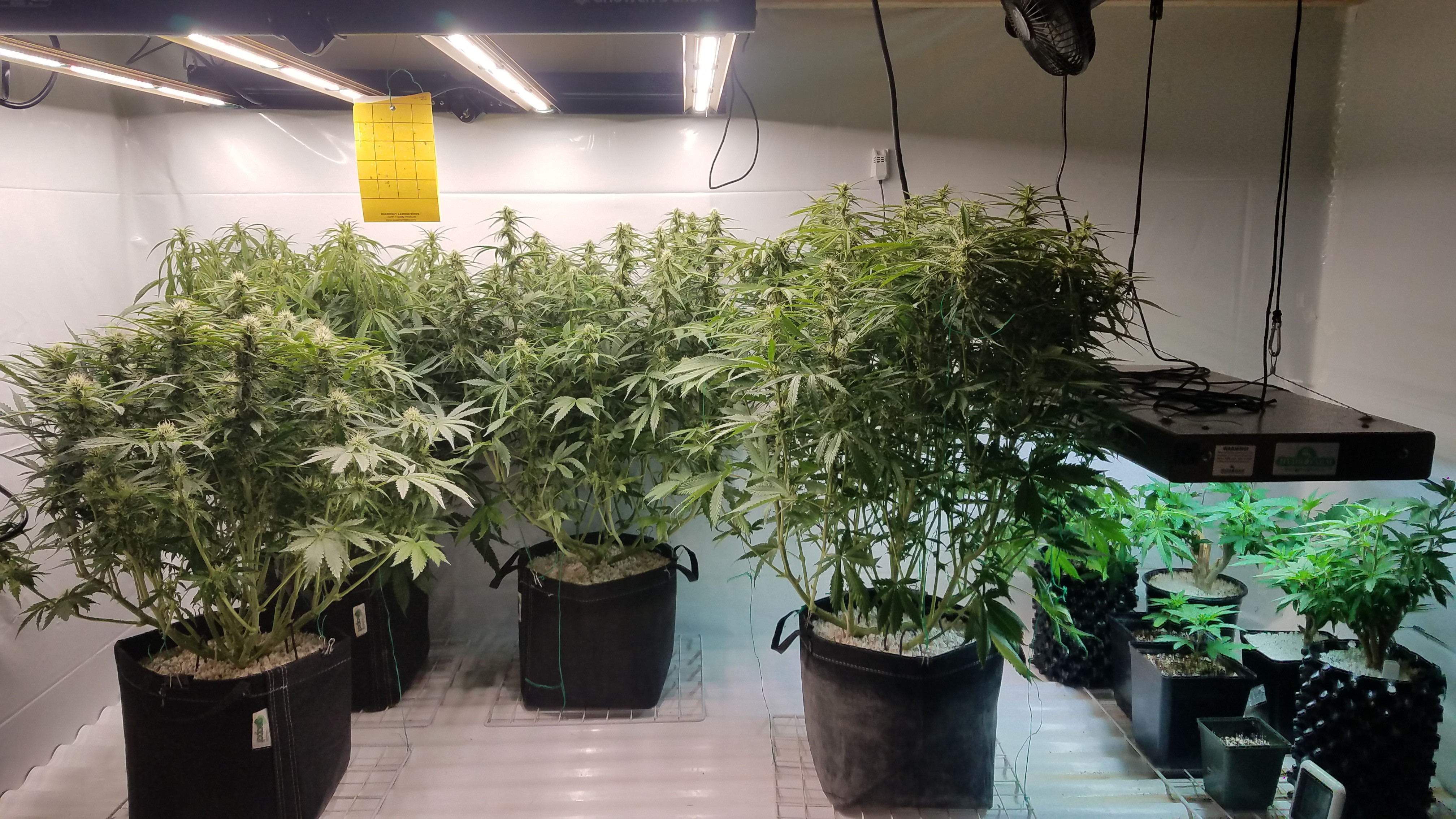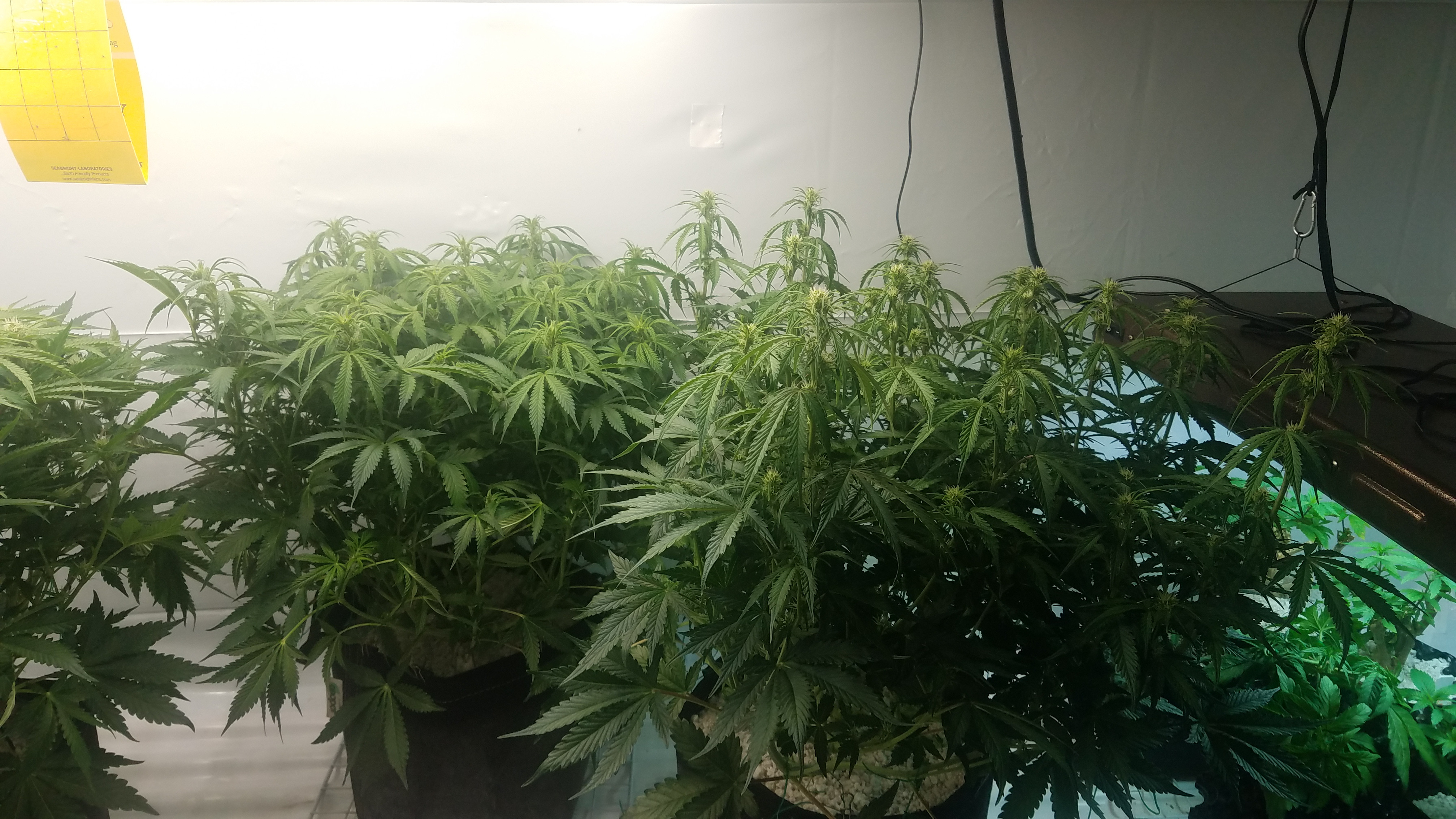 Lights saturation and humidity has been the story this week, Iv had one of the Autos under the GC420 grow within 3in (manufacturers claims 6 in, I'd say 8 to 12") with the light at 90% and it has shown. I'm maxed out on raising the light, i was able to get another 2 inchs up only and have super cropped as much as I can, the light had to be dim down to 83% again and everything seems better now. This light is sitting in a 32"d×36"w×42"h space and for now it's going to have to be what it is, in the future I'm going to have to looking at growing short strains.
