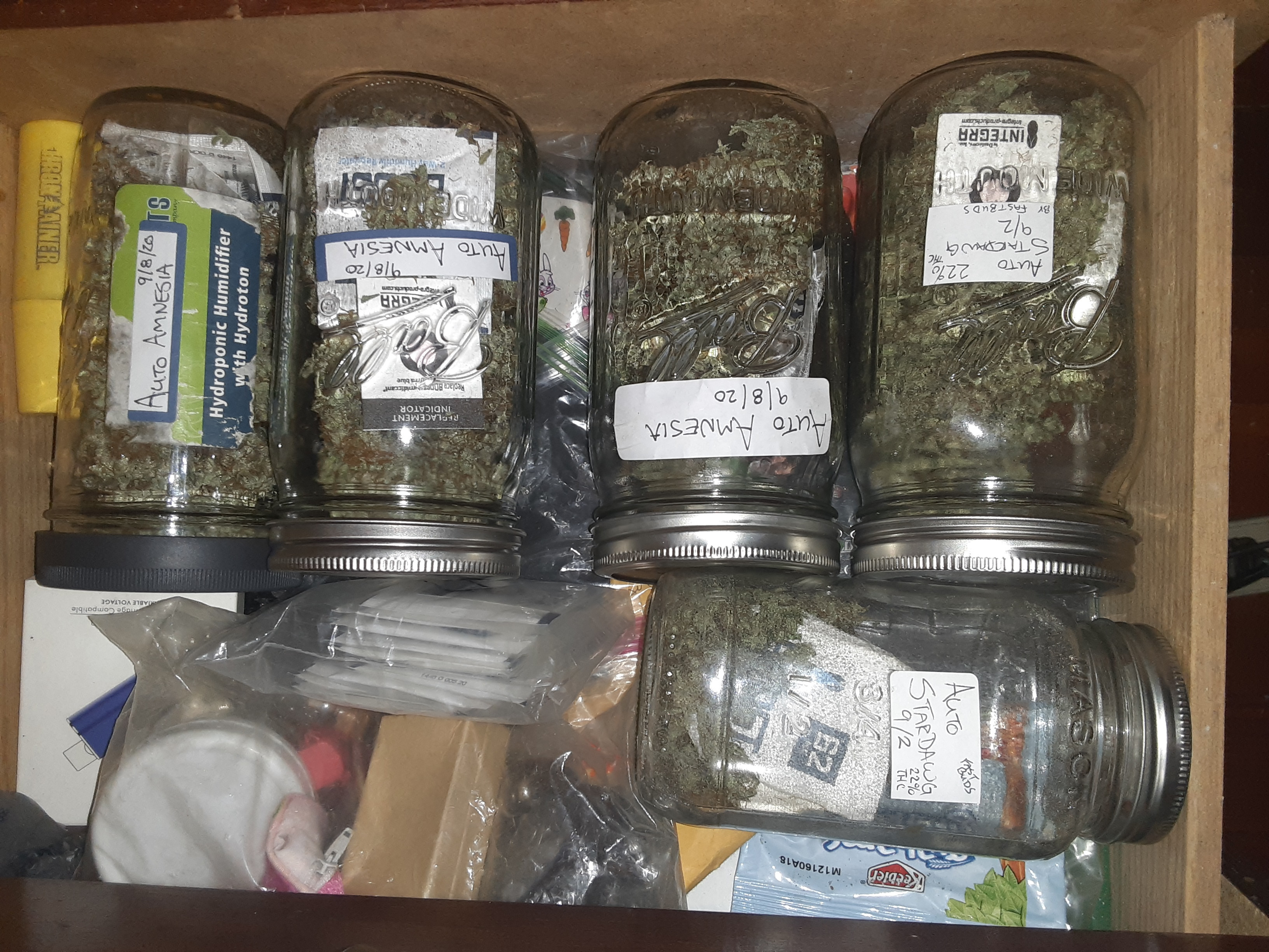 jarring with your packs. Lids with built in hygrometers are useful as are hygrometers you can place in the jar. I treat my bud like my women and horses and never put 'em up wet. Organic soil auto grower.