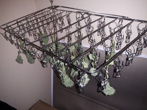 just harvested one of my auto flower plants and thought i would show my new hang drying rack instead of me having to craft something to hang them up i bought this for $27 DUOFIRE Stainless Steel Folding Clothes Drying Racks | Laundry Drip Hanger for Drying Clothes, Towels, Underwear, Lingerie, Socks (66-Clip