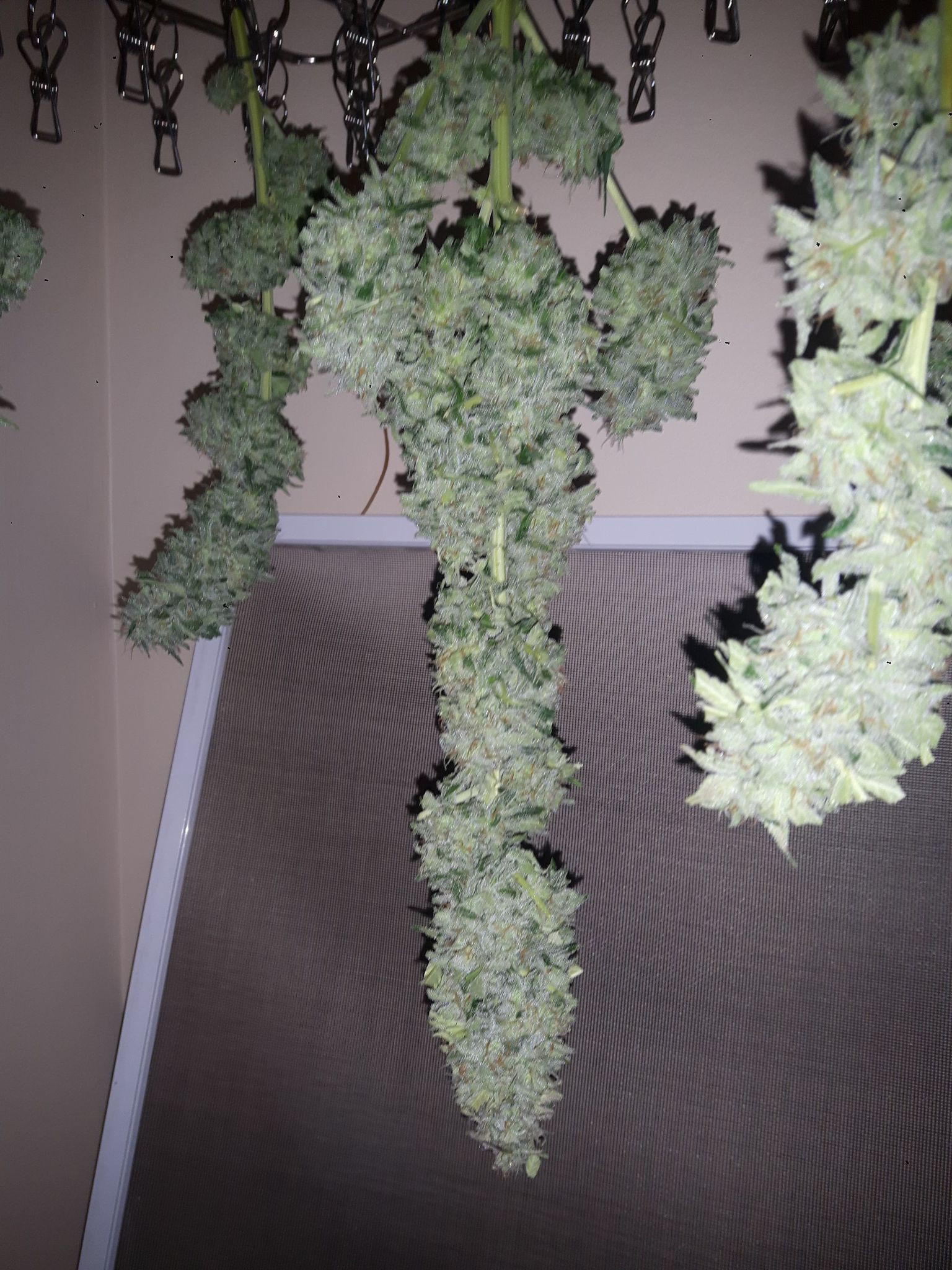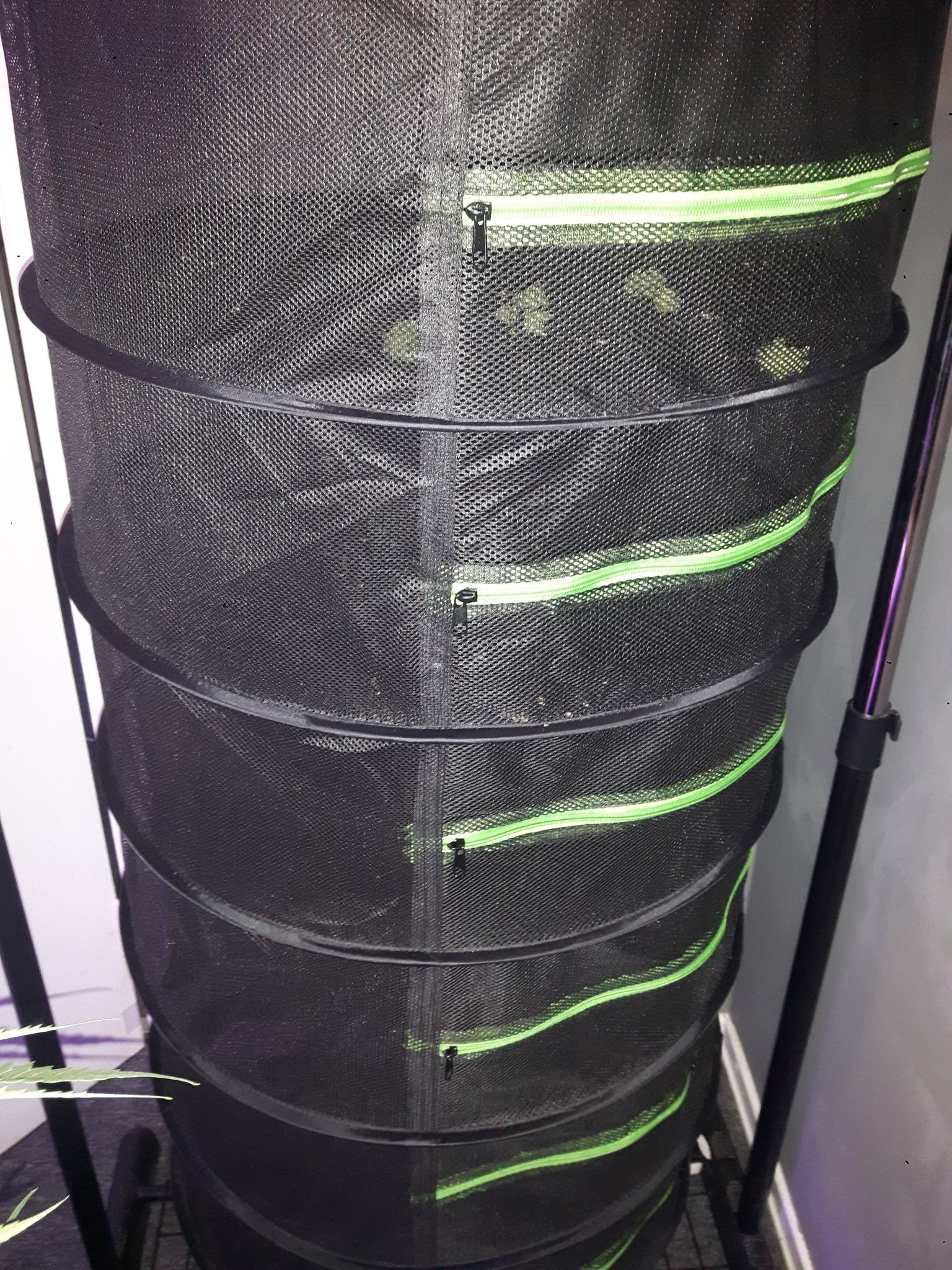 Now i got both a Drying rack for popcorn nugs and a hang drying rack Ignore the small amount of cannabis would of filled the rack up but i only grew one autoflower while i let my feminized plants veg they have gotten taller then i ever had them but i still got alot of space for the flower stretch i also tried some new stuff to increase resin production and i did get good results as the auto flower is way more frosty then the grow before.