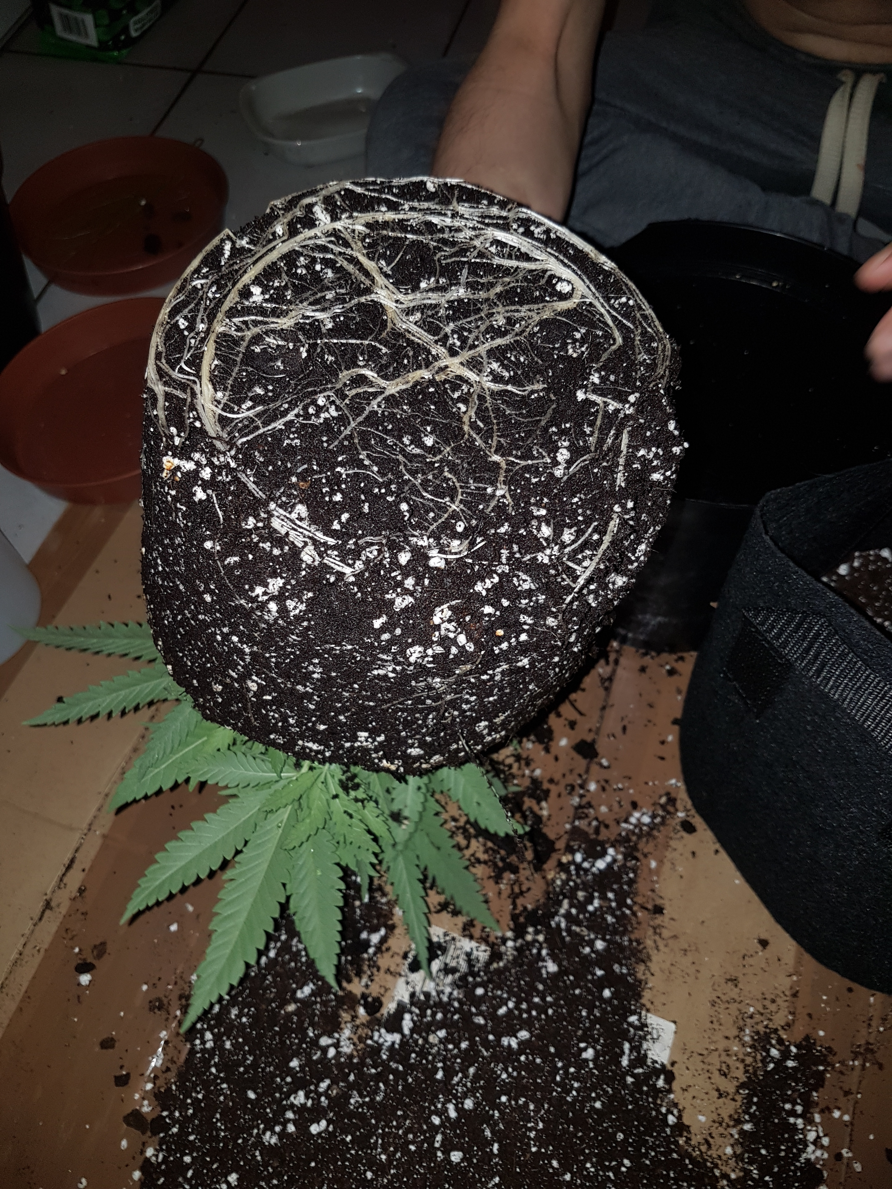 I'm planning on transplanting 2 of my 3 plants a little later.(only 2 of 3 pots turned up) from 5ltrs to 12. I've done some reading and watched some videos of it and have done some small flower transplants with my mother in the past but I have this vision in my head that when I tip pot up to take out plant all the soil is going to fall off. I know this is probably just me playing out the worse possible scenario lol.