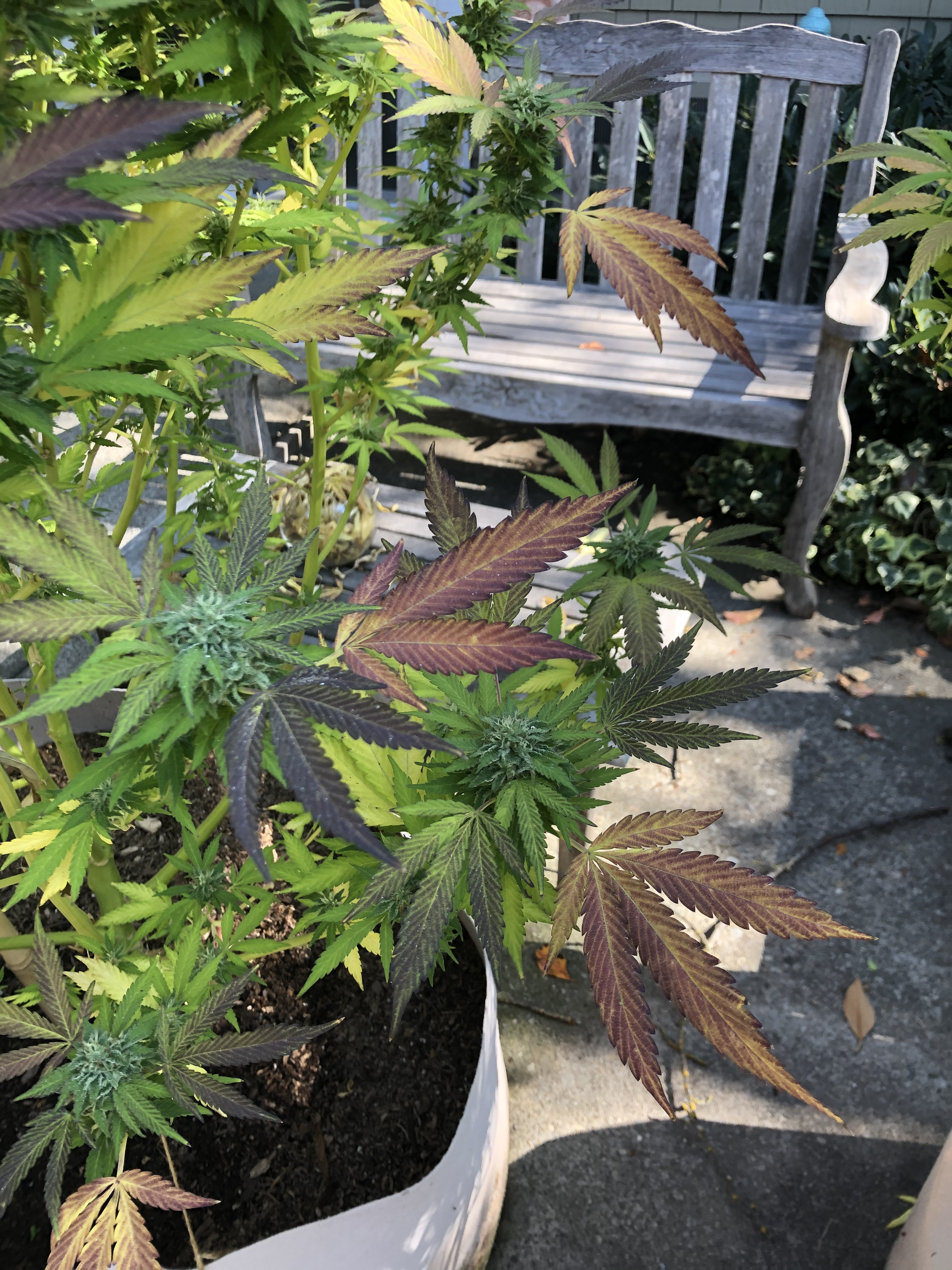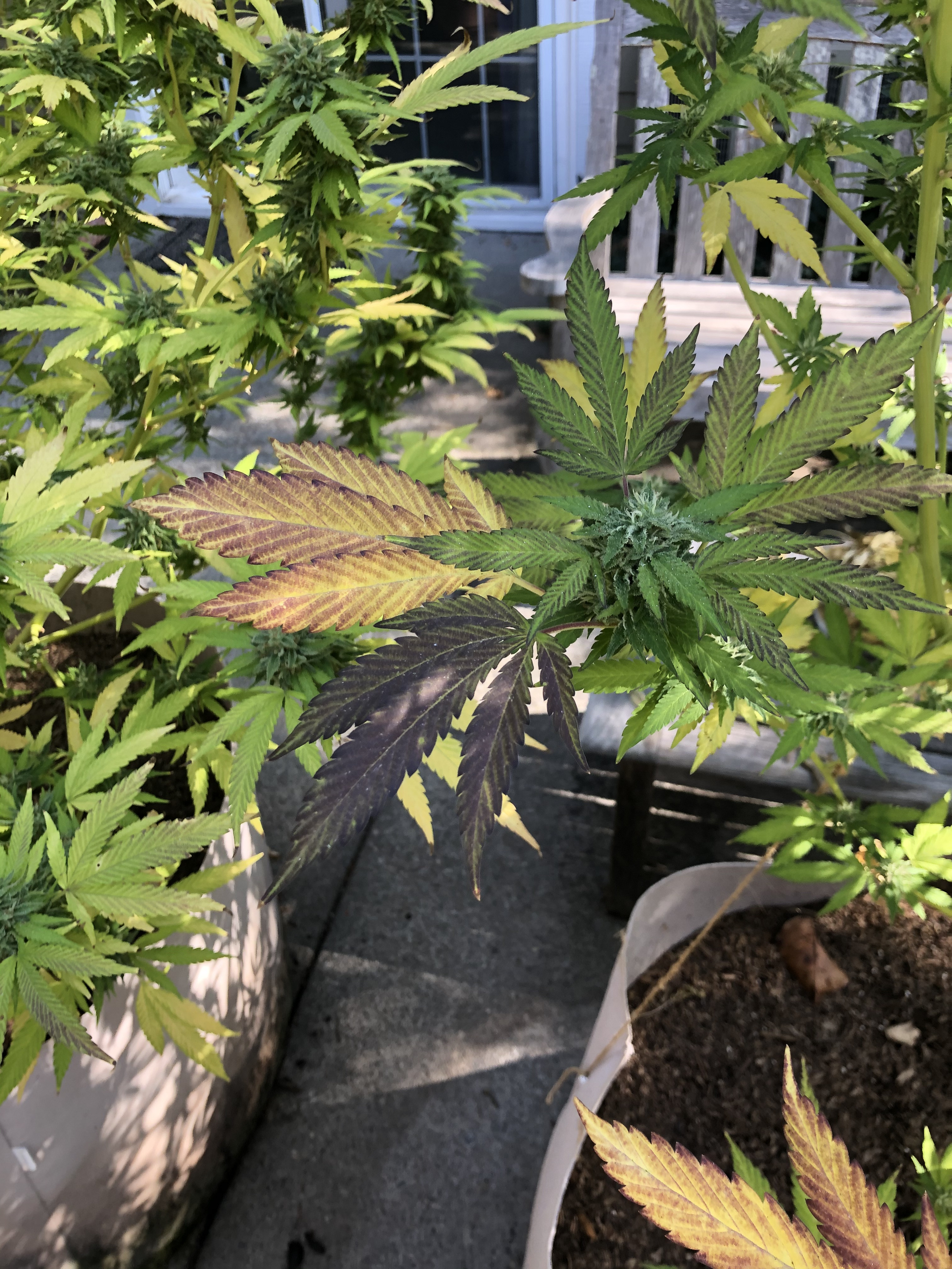 Hi all. My plants have been budding for over a month now and have recently started to show a deep purple in the leaves. Could this be the strain or is this a nutrient issue, or something else?? Thanks for the help!