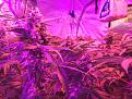 This is my first grow. I have a 5x5x80" tent. 2 1200 watt Maxsisun old style leds (blurples) with a veg and bloom switch and no dimmers. I am growing six Pineapple Upside Down Cake (Surfr Seeds version, not Humboldt's version) plants from seeds I luckily got from a dispensary eighth of the strain. Nutes: Botanicare Pro Grow during Veg, Botanicare Pro Bloom, Tiger Bloom, Organic Blackstrap Molasses during Bloom, plus I used a granular bloom booster for just one application when I switched to 12/12 instead of after each 3-4 weeks as prescribed. Each plant is in an 8 gallon pot. I have two levels of trellis supporting them and which I used to separate flowers and try to keep the bud sites at the same height to the best of my very limited ability. The entire grow I have had zero issue with temperature, humidity, ph, insects, mold, or anything else. When I pushed the Tiger Bloom one time as a test and got a few yellow leaf tips I immediately backed off. When my plants stretched too close to the lights and I saw the tiniest smidgen of "light burn" (not from temperature, from the amount of light hitting them - 2400 watts of 10 watt LEDs is a lot for a 5x5) I immediately tied them down lower or raised my lights. So all is good as far as I can tell with no reference points and having never done it before. I have had the ear, luckily, of two professional growers who I know, one in Oregon and one in Pennsylvania. They have answered many of my plethora of questions and I'm certain have had a positive effect on my grow. So that's all the background. I have attached some pictures from Day 50 of flowering. The tops of the buds are about 4.5 feet off the ground and about 18-20" from the lights. The sidelights are UFO 22 watt 12"x12" full spectrum light boards, which are there just to keep a little full spectrum in the tent once I switched the overhead main lights to bloom only. Everyone, including the manufacturer, says to finish your grow using both the veg and bloom switches on. My guru on the west coast told me to trust him and disregard that advice, and instead run it on both veg and bloom until about a month left til harvest, then switch to just the bloom lights to bathe them in red for the last month. I am very glad I took his advice, cuz my buds exploded when I did that. Thus the red lighting in the photos.