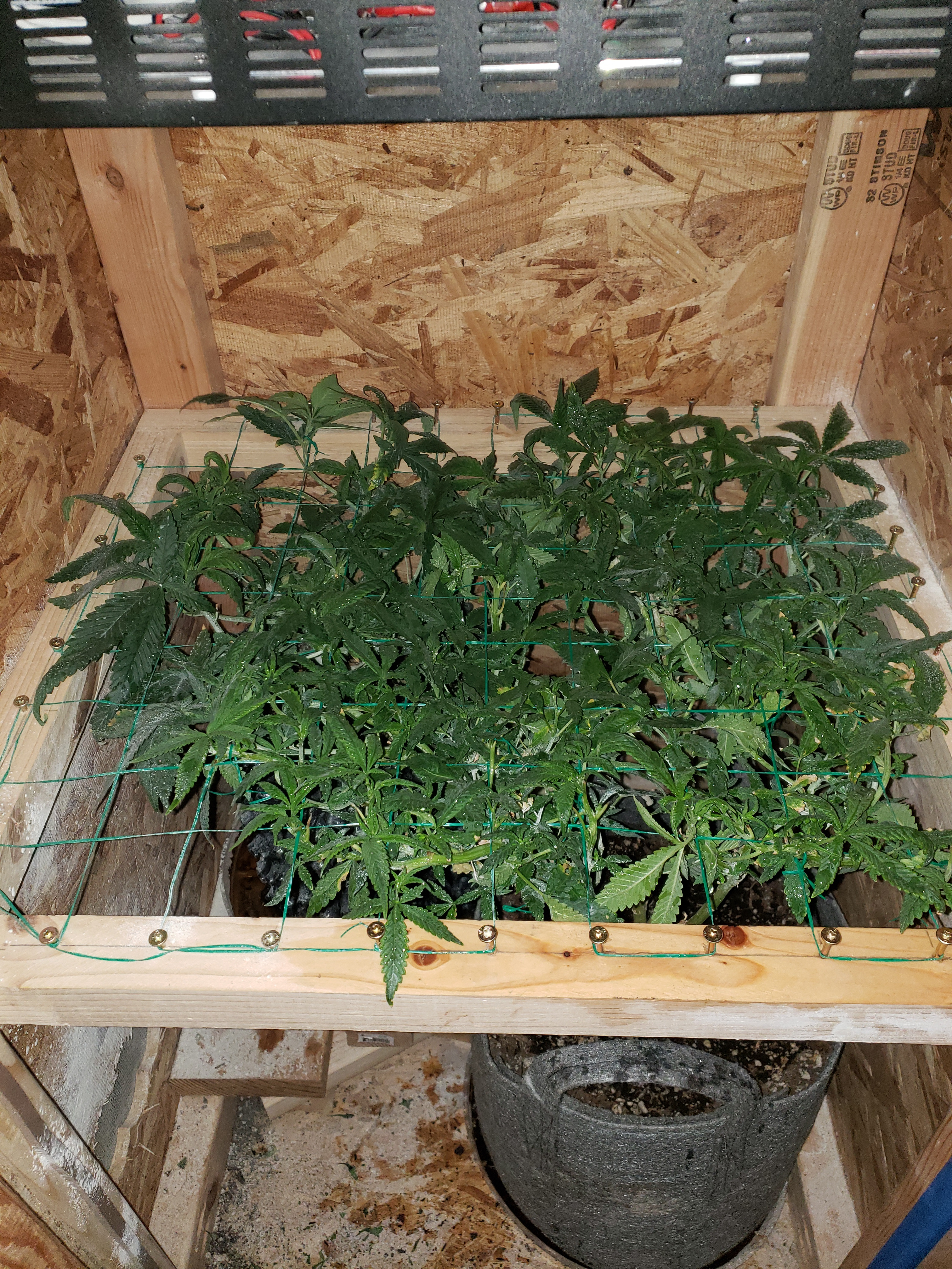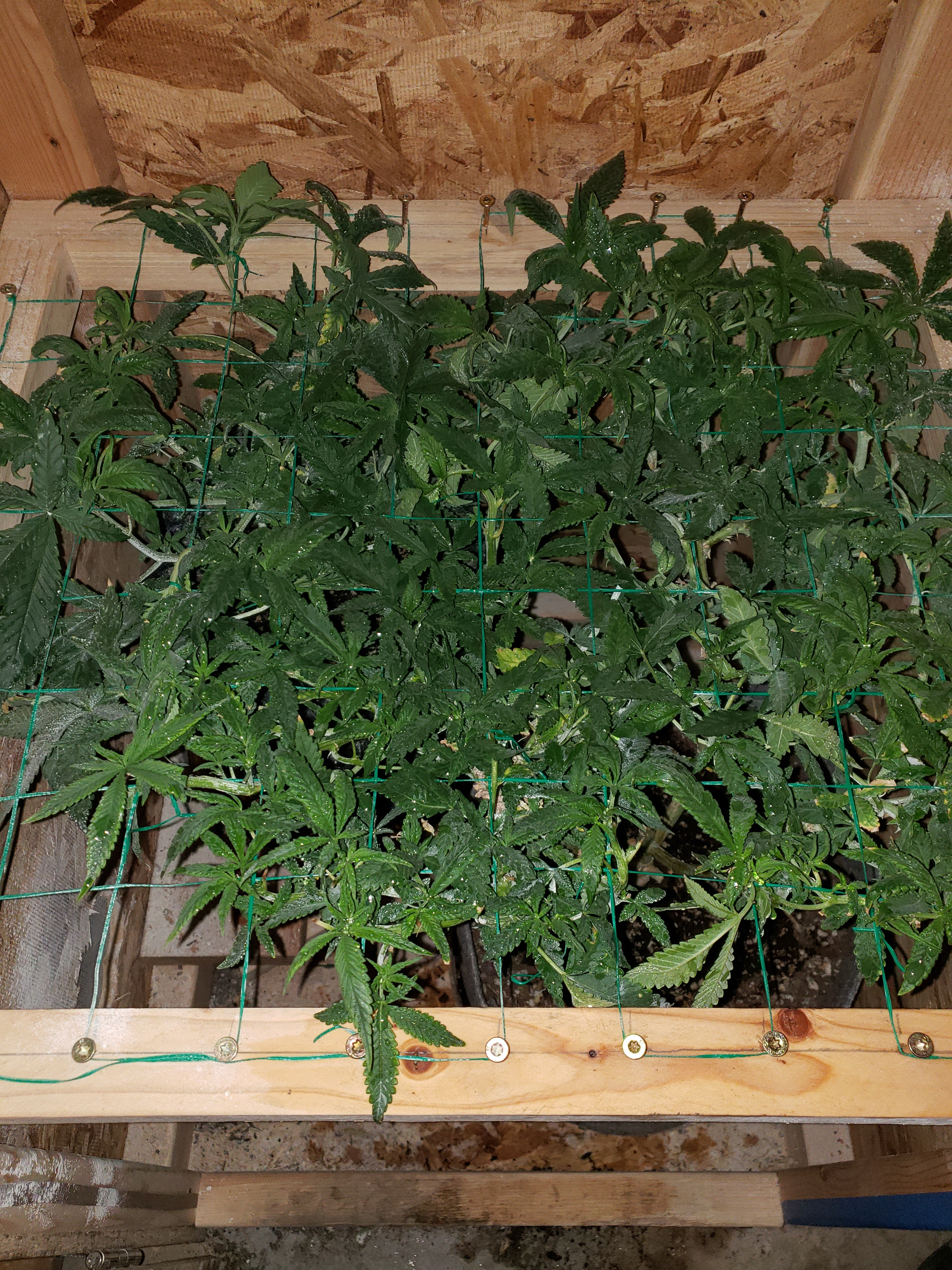 I'm a newbie on my second grow, or maybe third if you want to count the one auto ive harvested lol, while harvesting my first I got the bright idea to reveg one of them and see what happened. While she was revegging I got the even brighter idea to try scrog with her and a reveg clone I took off one of the first batch. 8 weeks and some heat strain, and recently a couples weeks of defoiliation, later im pretty happy with the way they are growing.