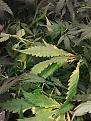 Started flower yesterday, took out scrog, feed and water. Definitely shouldn't have up'd the veg nuts shes looking burnt very dark green, probably high N, I noticed a few weird looking leaves I haven't noticed before can anyone tell me what this is?