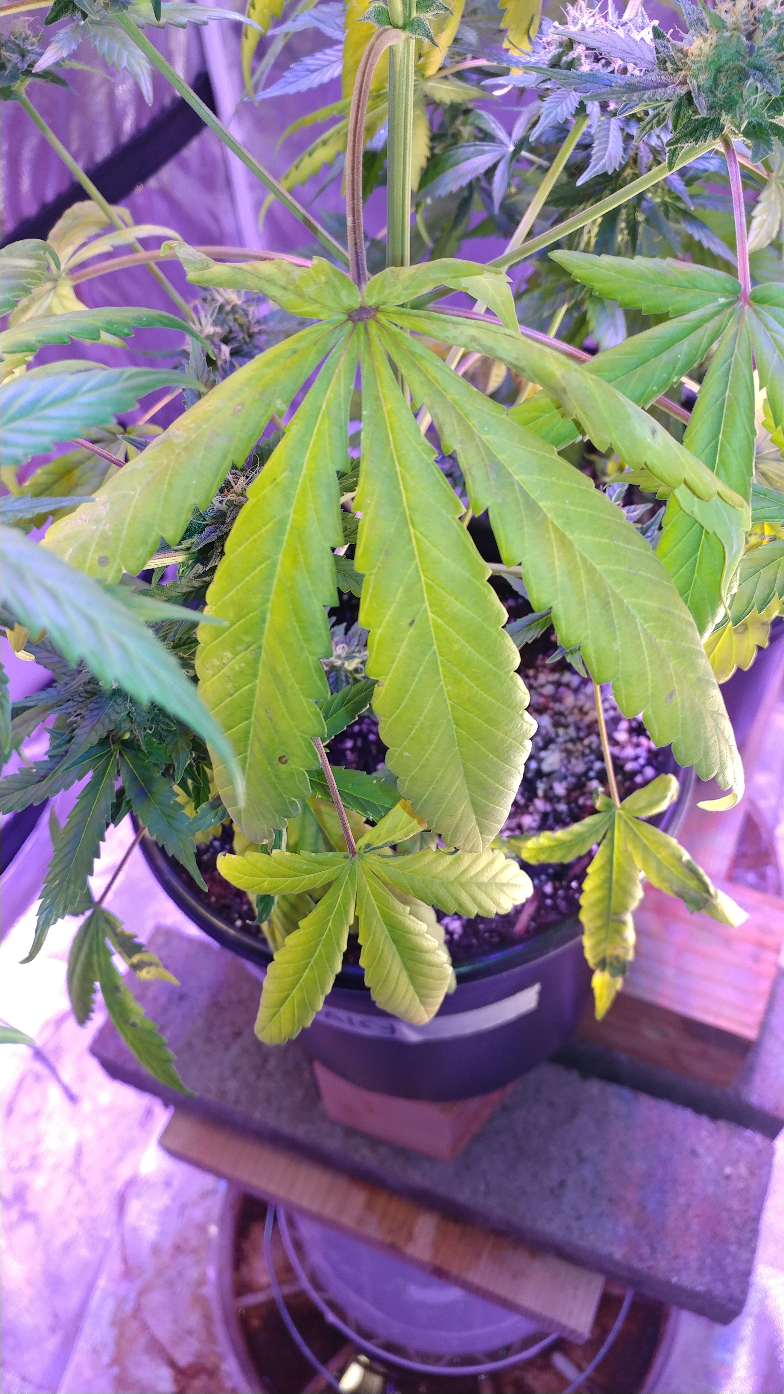 I just read an article on flushing, and it says that after flushing, the plant will start to turn to the leaves for stored nutrients. So, perhaps that's why several of the leaves look like those in the 2nd and 3rd pics pic. 11 leaves are yellowing 2 days after flushing.