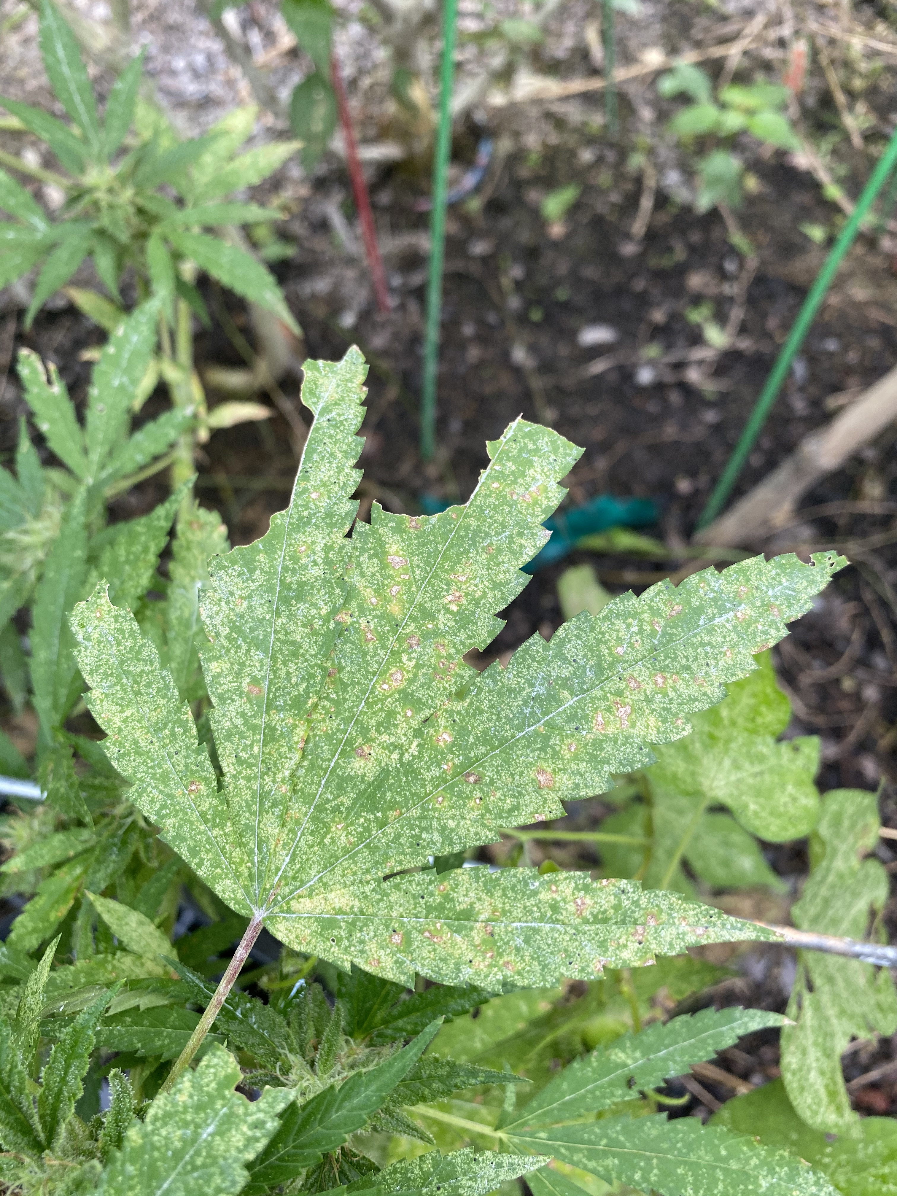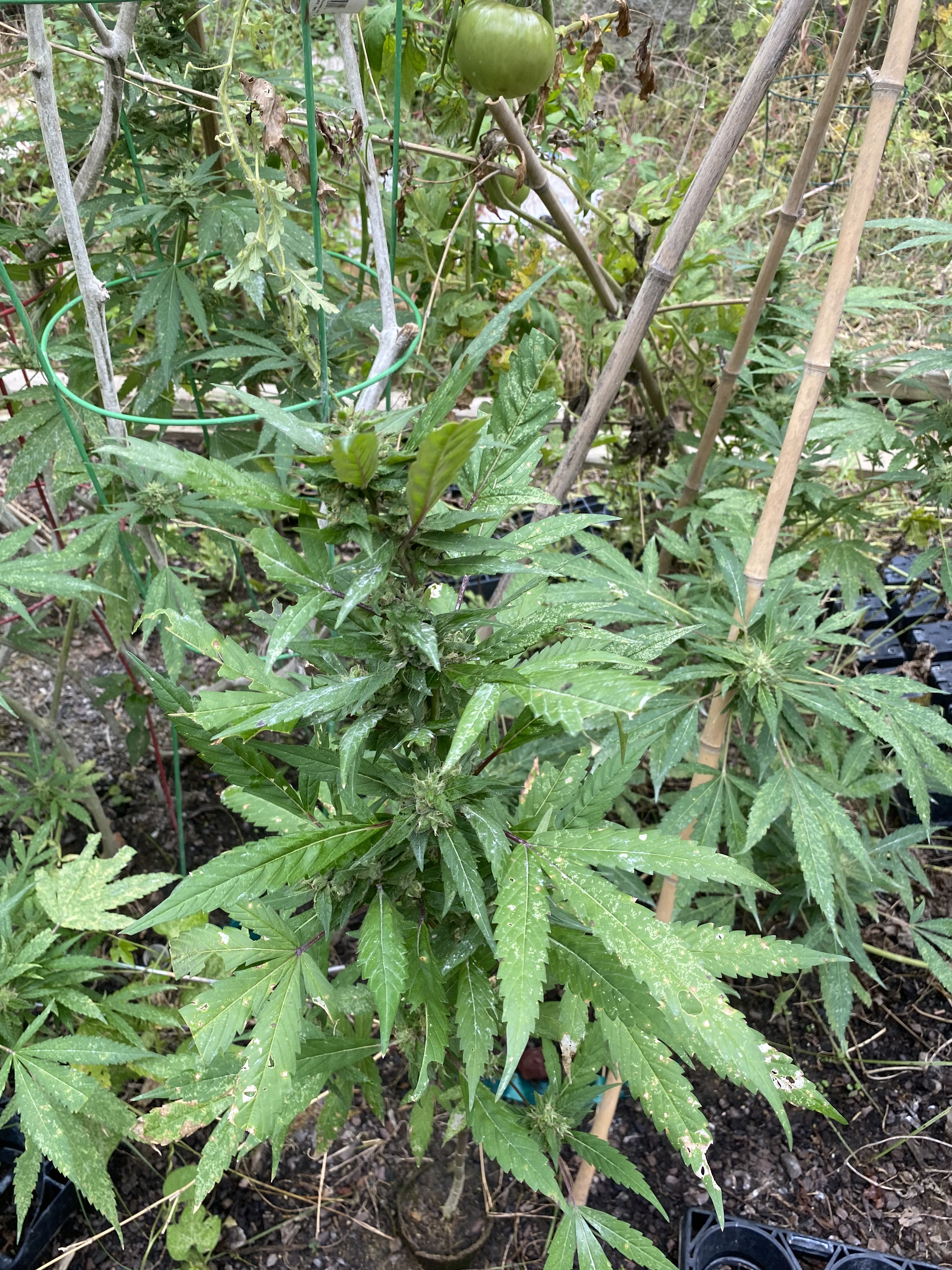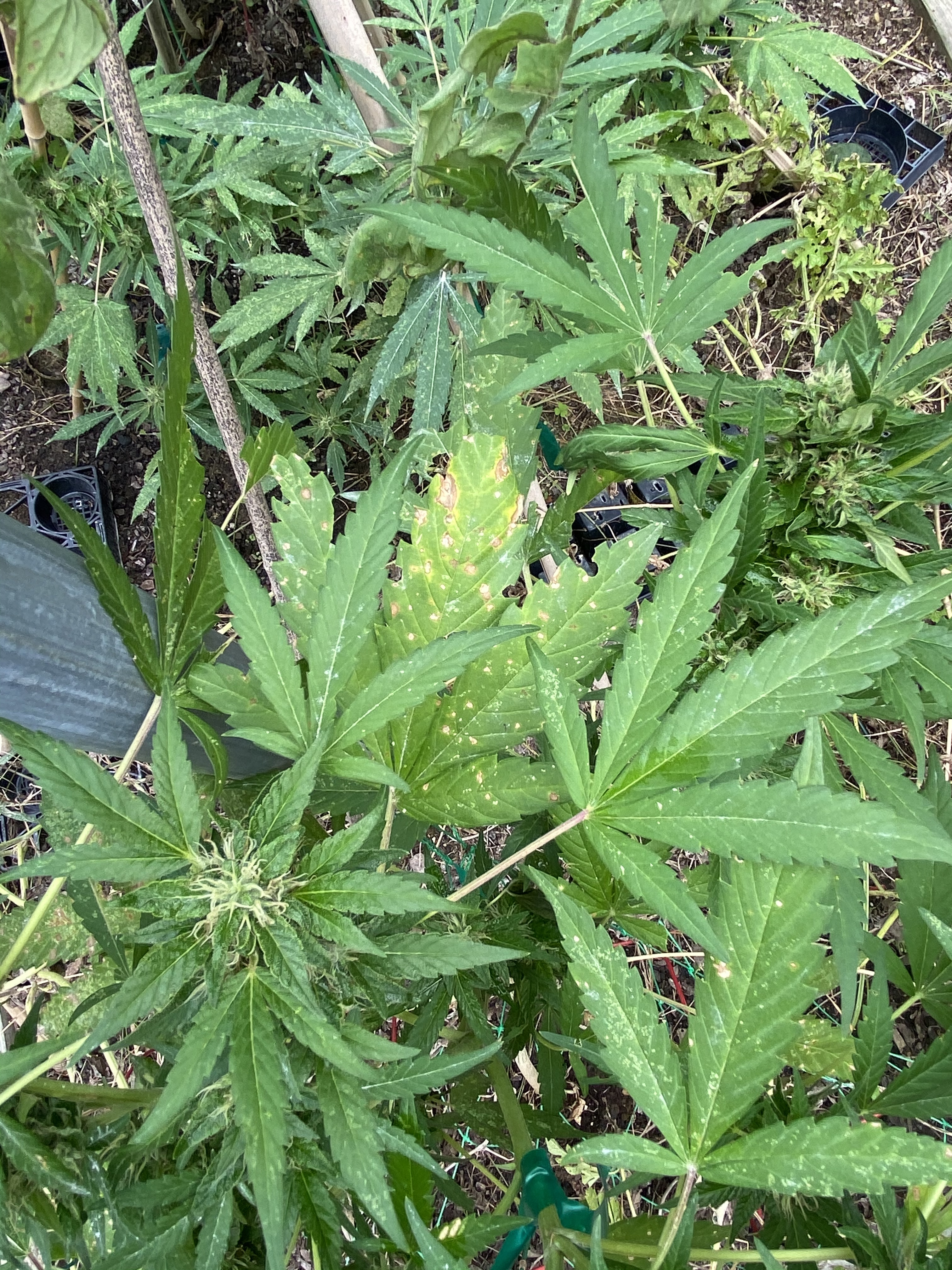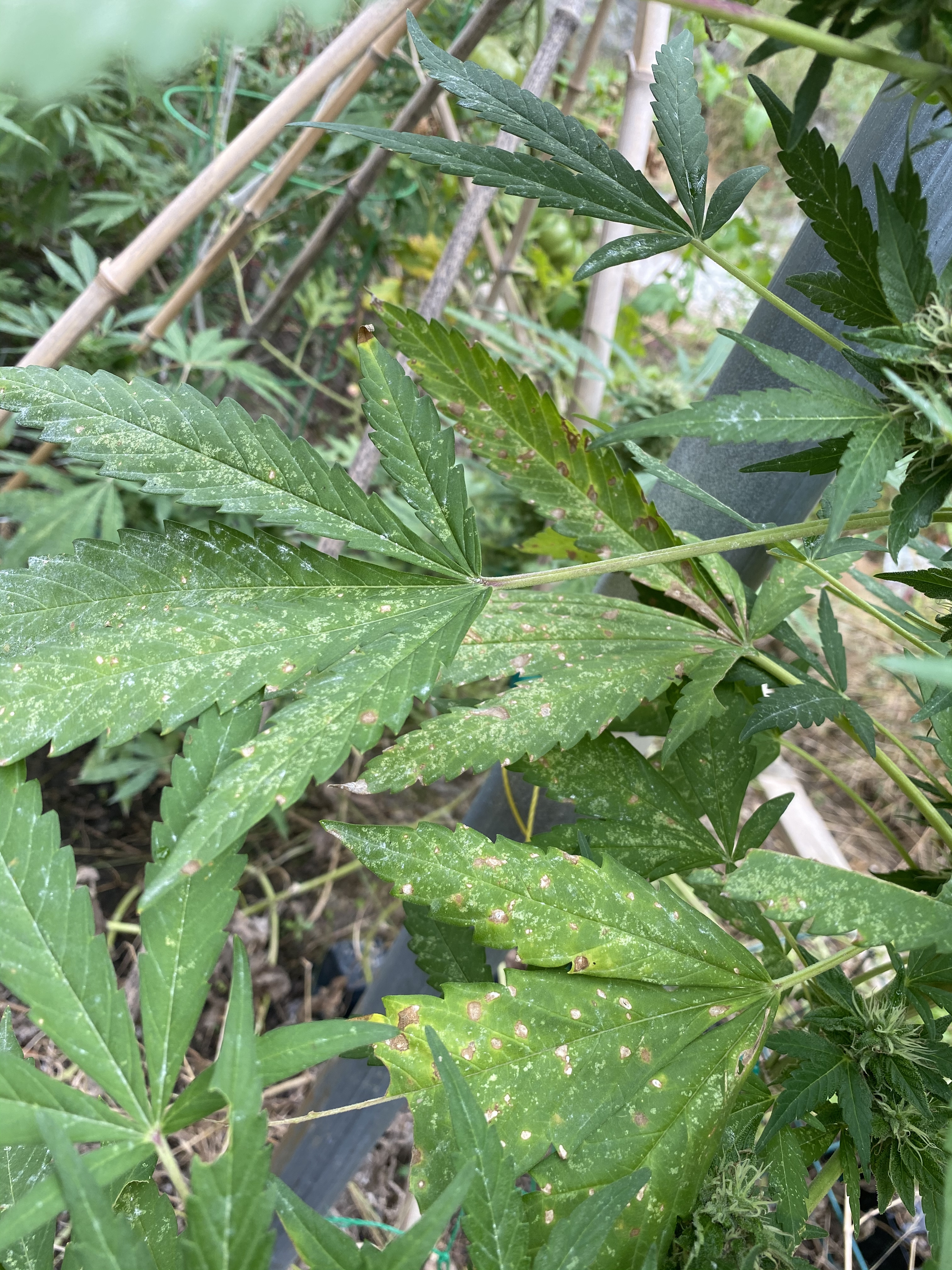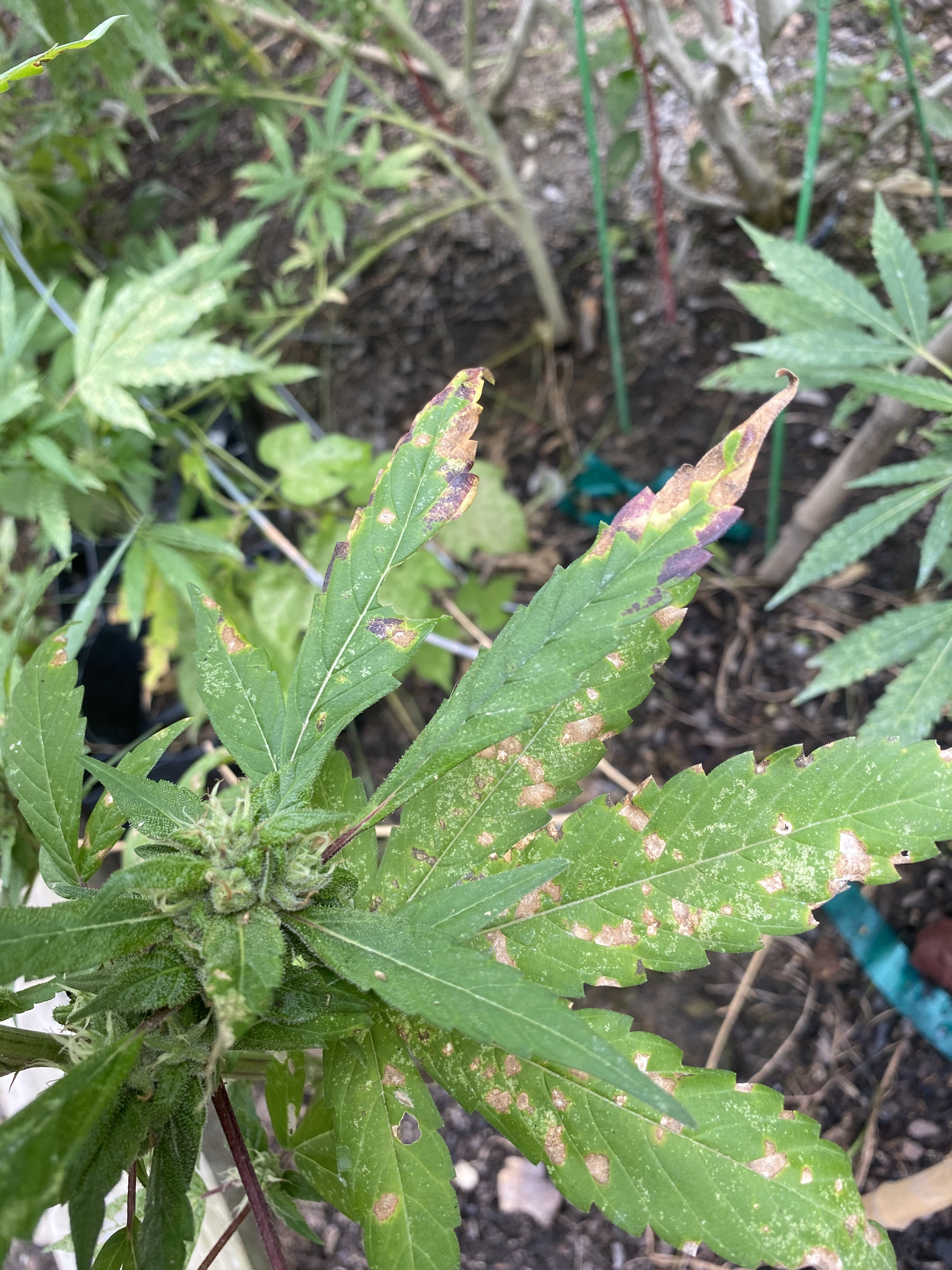 I’m growing 4 plants outdoors about 2 weeks from harvest and for sometime it’s foliage has been looking more and more distressed.