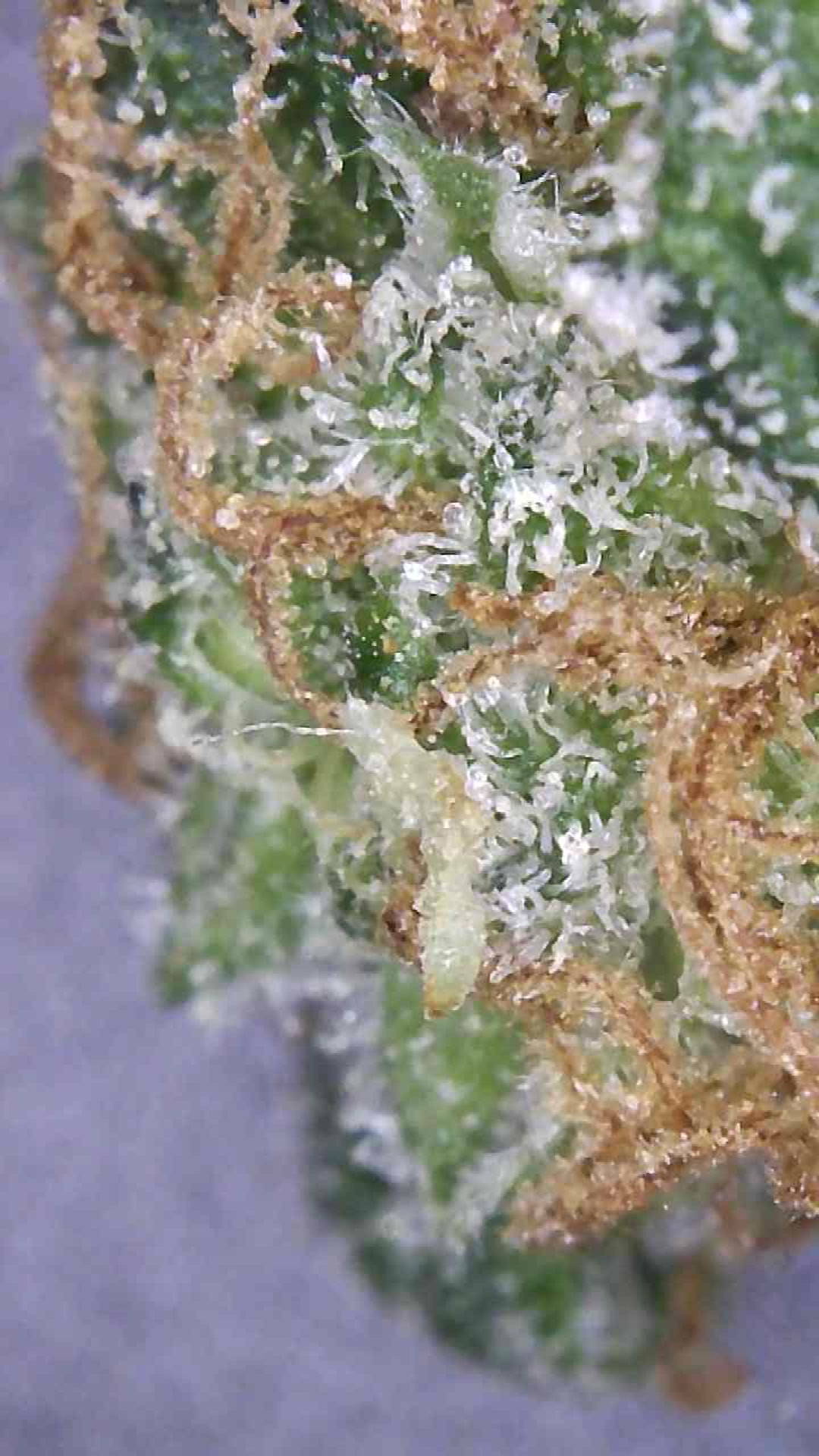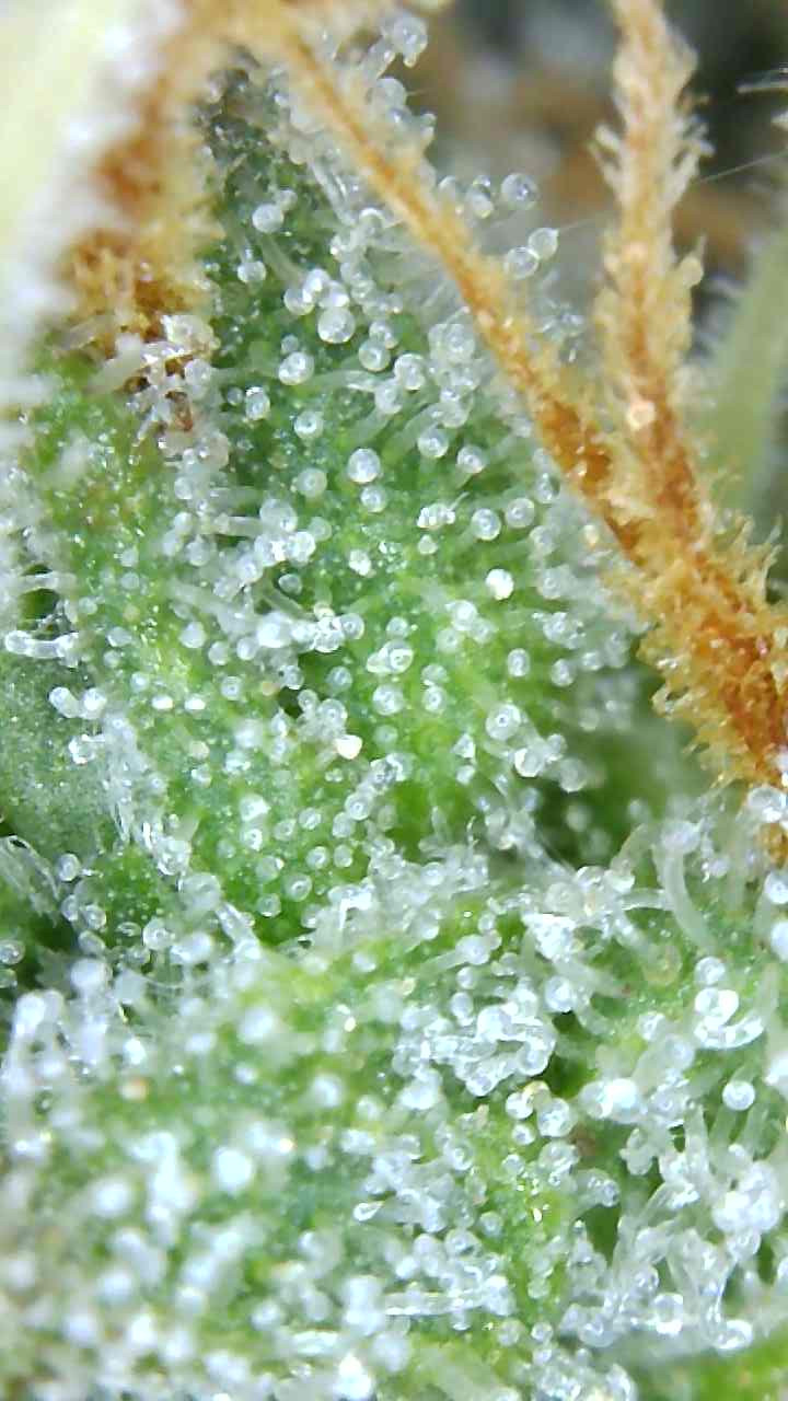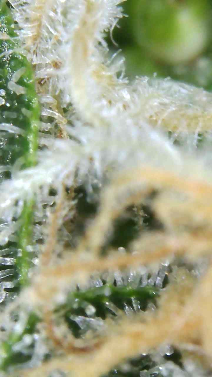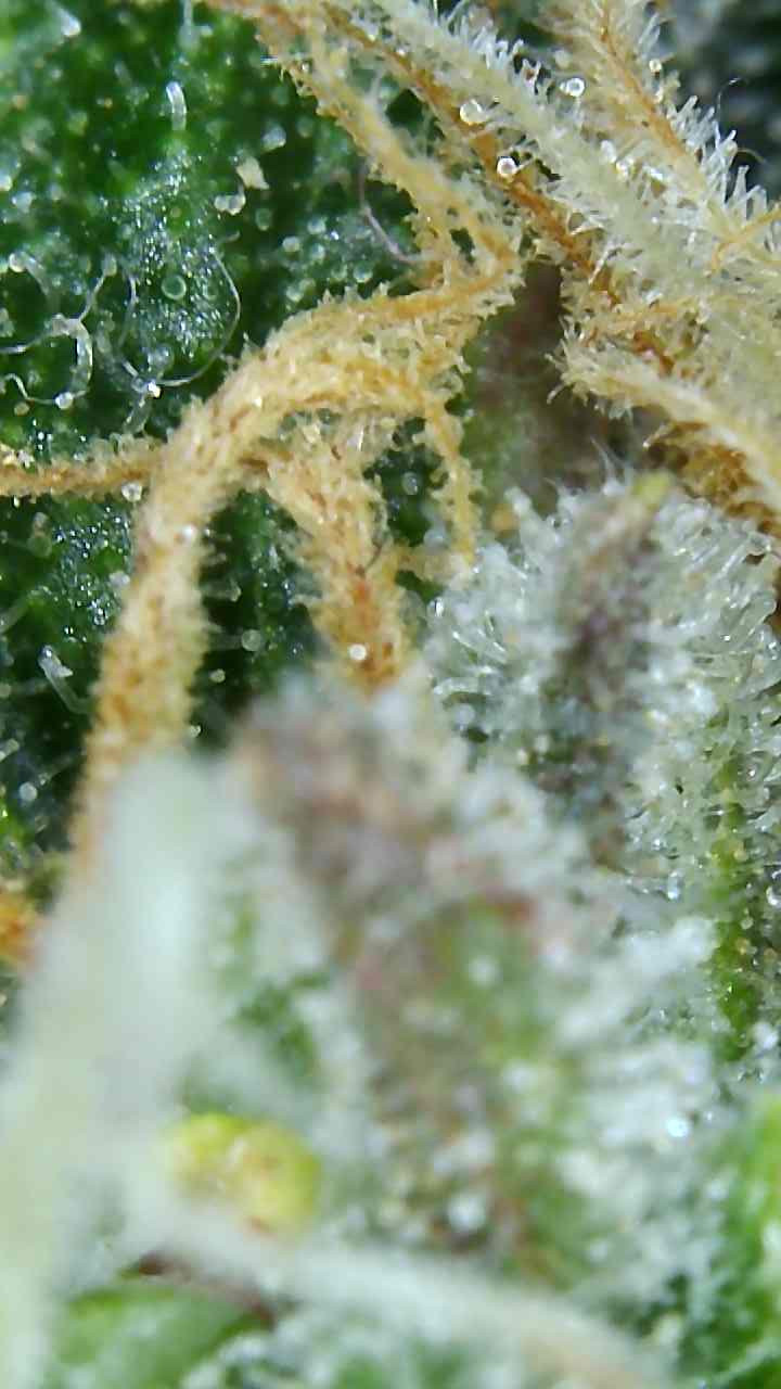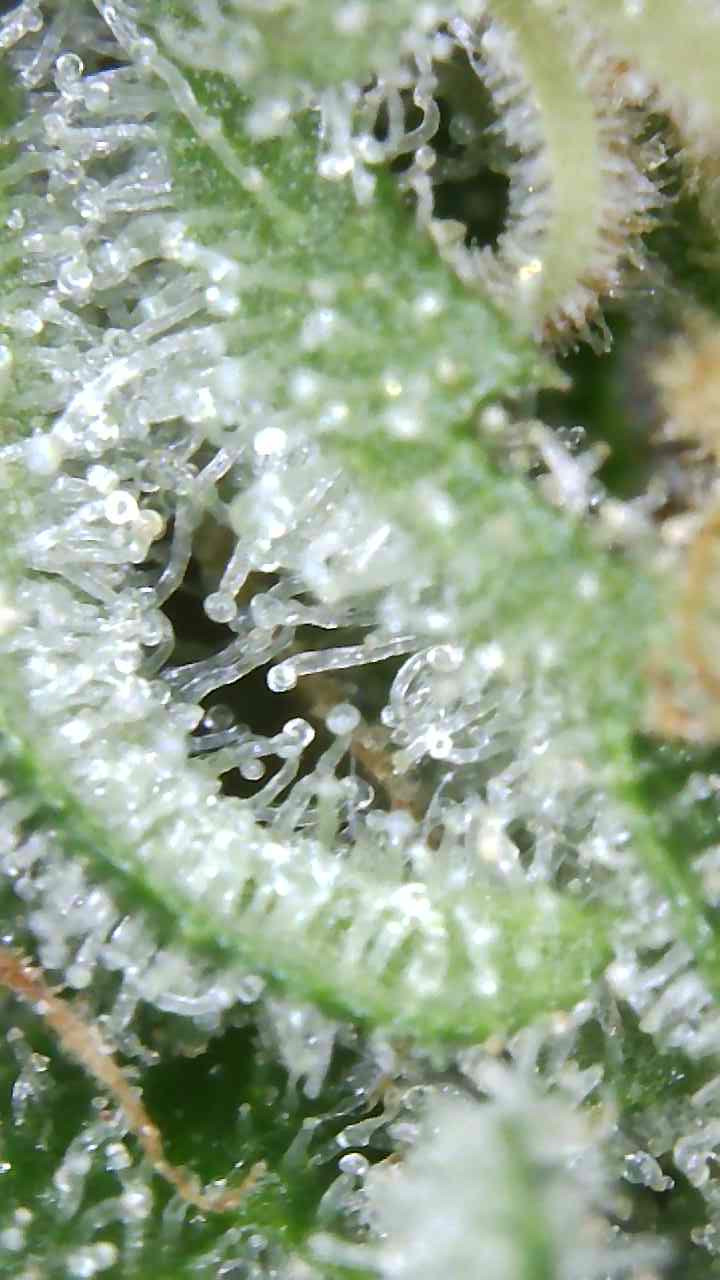I am uploading a few pics I took yesterday of the girls with pics of the trichomes as well. Will keep the pics of each plant separately as they are maturing differently. From what I'm seeing they are pretty much all cloudy, especially the larger plant, and I am going to start flushing like my feeding program says to do for the last week. People's thoughts on this would be greatly appreciated. I have only gone by the pistils turning brown/orange when I have grown outside, so just want to double check that what I am seeing/doing is on the right track. Cheers.