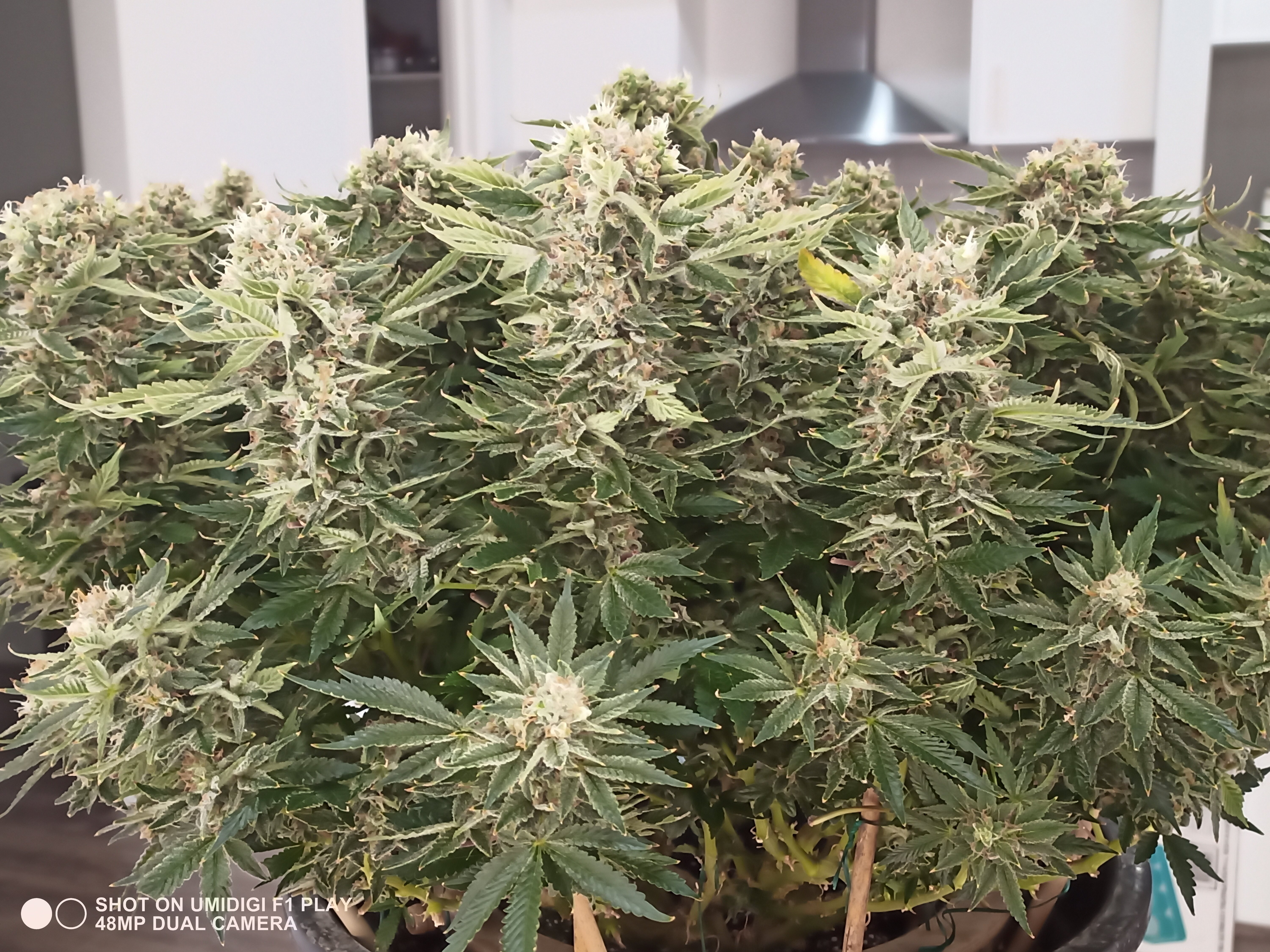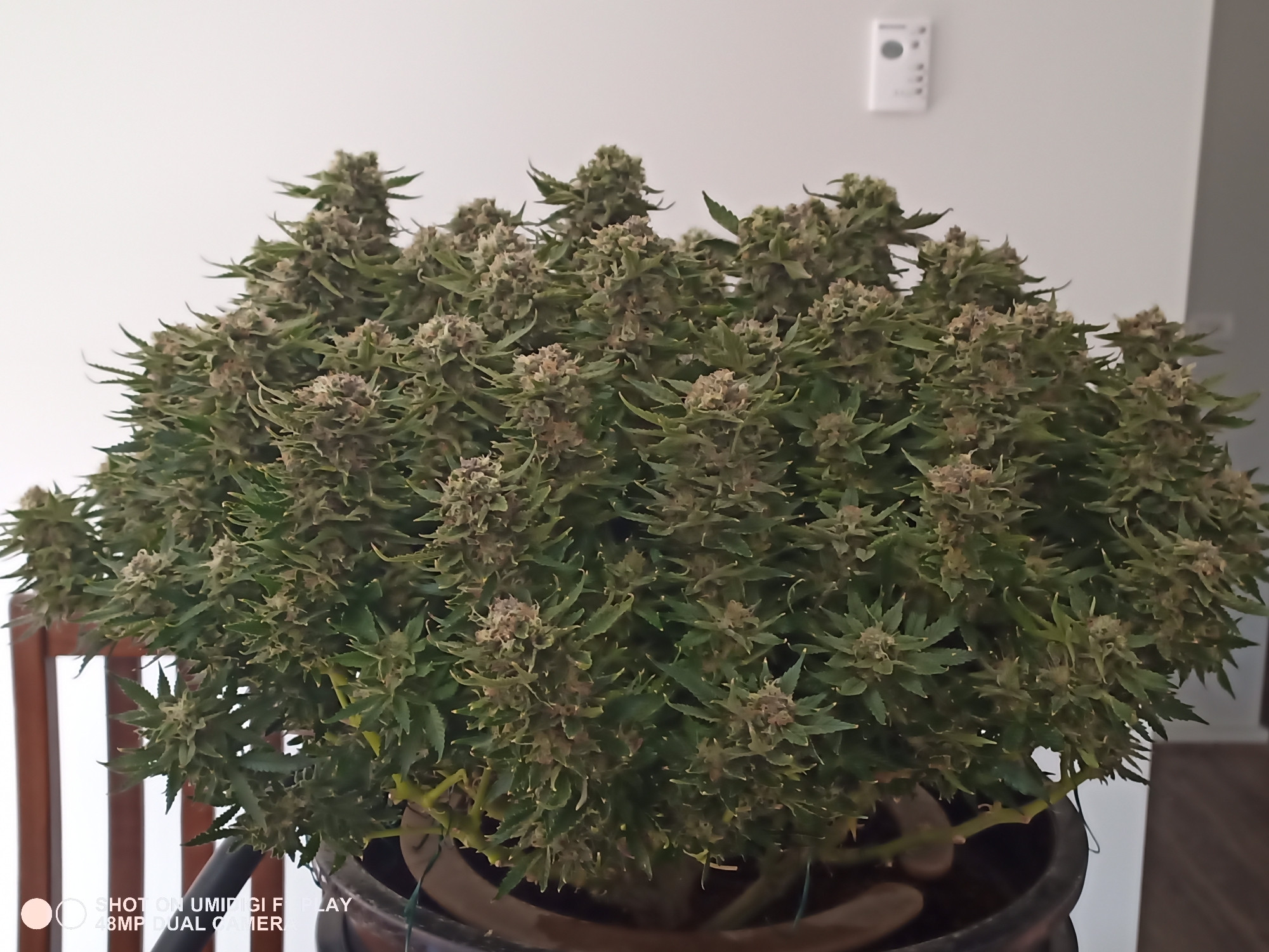 Well l have made it to the 8th week of 12/12 lighting schedule, still don't know how haha. The girls have been through a lot the last couple of weeks with higher humidity/temperatures, nutrient burn, foxtailing, and a phosphorus deficiency. I have been able to lower the humidity to 35% during the day, and 40% at night. Temperatures have been sitting perfect during the day and night.