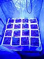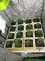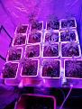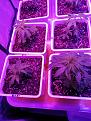 hi. all but one have now growna couple of new leaves and look good. Already quite a difference in heights, even between clones from same plant. i did transplant them pretty small. Photos are from tonight. for posterity i broke the sixteen up into quadrants. One of the gelato i the only one not looking good. it was one that didnt have root showing whenput in coco. Remo nutrients now used three days. almosr full strength. I have not checked water ph, but think i will from now on - why not since it's easy. i think i will switch to 12-12 on Monday. Figuring one to three colas per pot, since i can get the pot about an inch apart. I have my watering wand still from last grow, that works great. must slop the under pan a bit more, but will do that when i take out the milk crates. photos wont upload tonight so only one included. I just bottled the last of my three outdoor plants. boy, if you really take the time trimming leaves, the quality is outstanding.