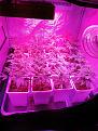 Hi rfolks. I hve just set up my first attempt at a sea of green in my 3 by 3 by 6 ft tent. The reson is two-fold, as I have lots of product on hand and looking to increase variety, and i am really curious how it will work out. I have started 16 clones and just yesterday planted them in the 1 gallon pots. See the photo for set up. they are sitting in a washer tray, 2.5 inches deep, sitting on 4 milk crates to hopefully allow for syphon draining ( although i have a little diaphram pump if needed). I intend to let them grow to around 10 inches andswitch to flowering. They are planted in a mix of 20%nhome mixed soil, 30% perlite and the rest coco. I have two LED light, one a 600 W BESTVA Elite 600W and a 300 W Mars Hydro Reflector Series. I plan on using the Remo 7 part series nutrients that I picked up at a yard sale thissummer for a deal. I have 3 Gellatto, 2 Afghan Hasshplant 1 Zkittles Glue from one friend, 2 Kush Kush and 2 White Rhino from my summer grow, 3 blackwater from a mother plant another friend kept for me, and 3 Northern Lights from a seed I started awhile ago. I fully expect to be looking for advice later. if anybody wants to comment or offer anything in particular to look, for feel free. there already seems to be new growth so i will likely feed tomorrow for the first time. This should be fun. It is now a hobby as opposed to supply. Liking the rules here in Canada. I plan to water with a wand, with the occasional bottome watering when i am rushed only. I dont have a lot of height so i may later have to remove the milk crates/ i am hoping for each of these to produce one or more likely 2 or 3 colas each