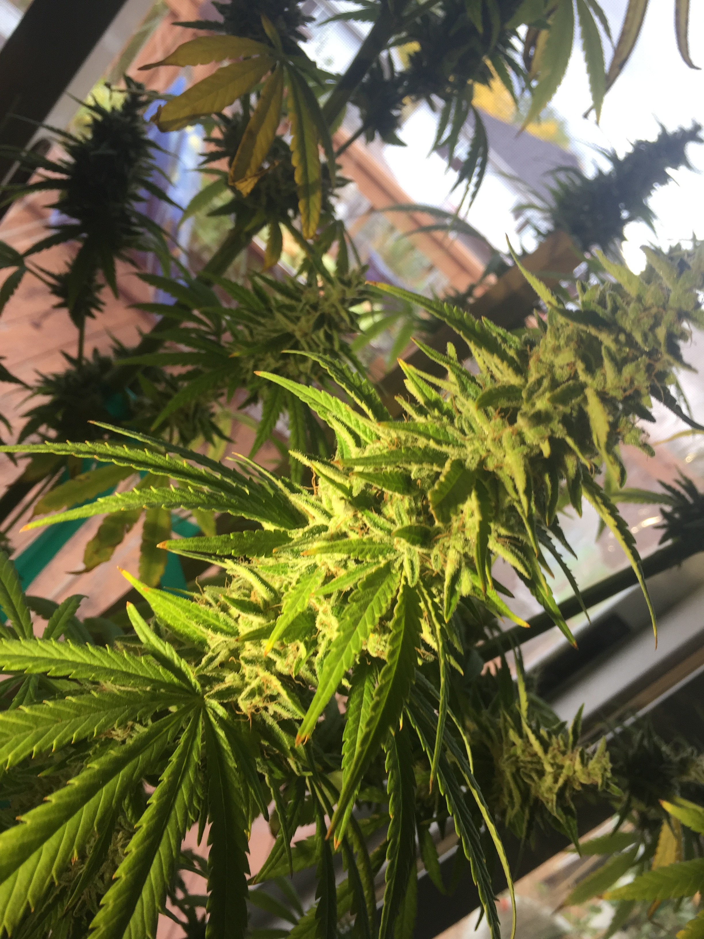 Yes its pretty hard as far as buds go and they are long colas, its a bag seed and I thought it was hybrid because it came from a hybrid strain bag but when i saw the 9 leaves yeah I'm pretty sure its sativa. if it is 11 weeks flowering then it should be done by now Its been flowering for like 2 and a half months and started to flush around a week ago. I'm mainly talking about the main colas as I have lots of popcorn buds with white pistils still showing. oh and lots of leaves have yellowed and fell off so far