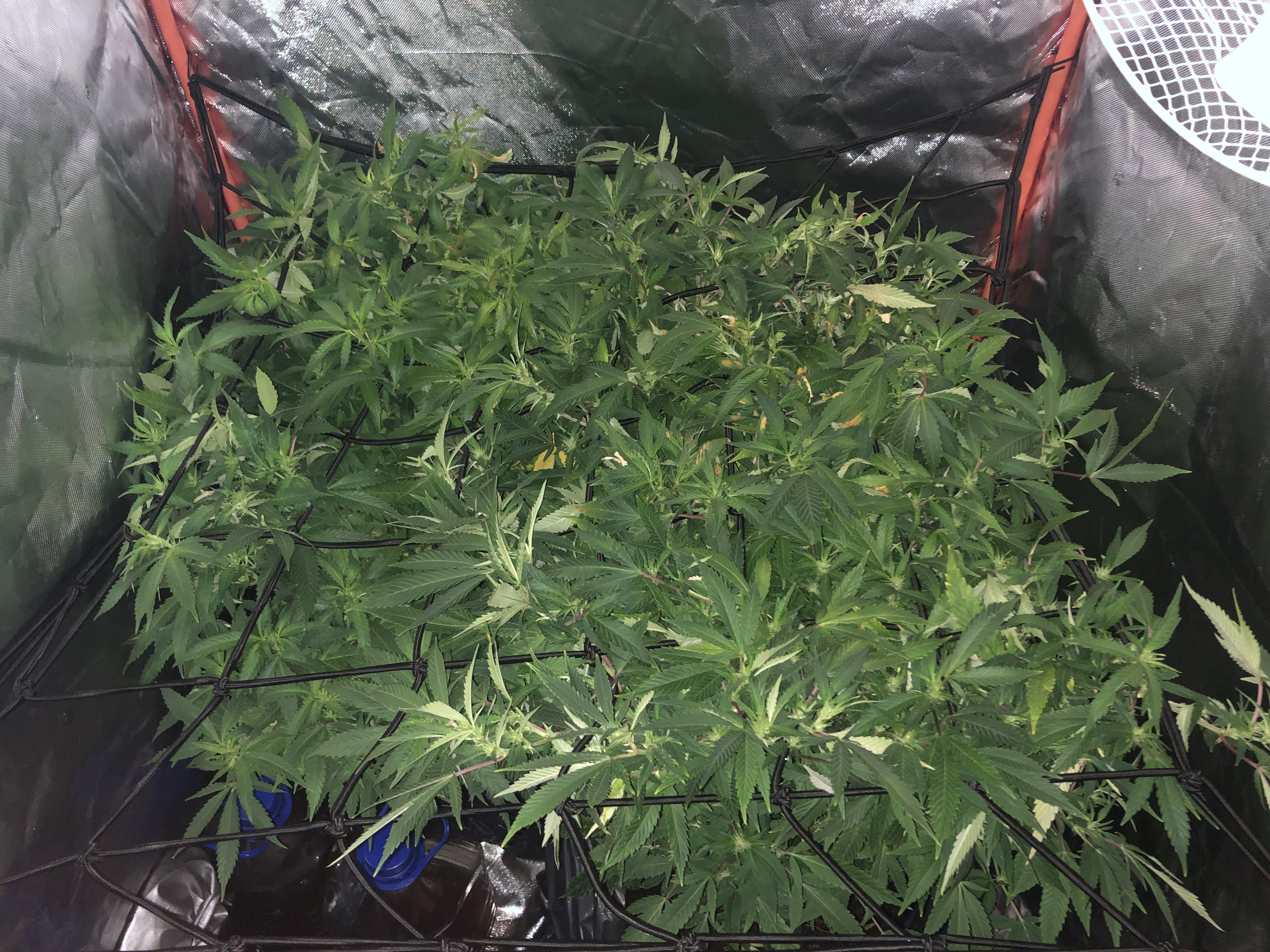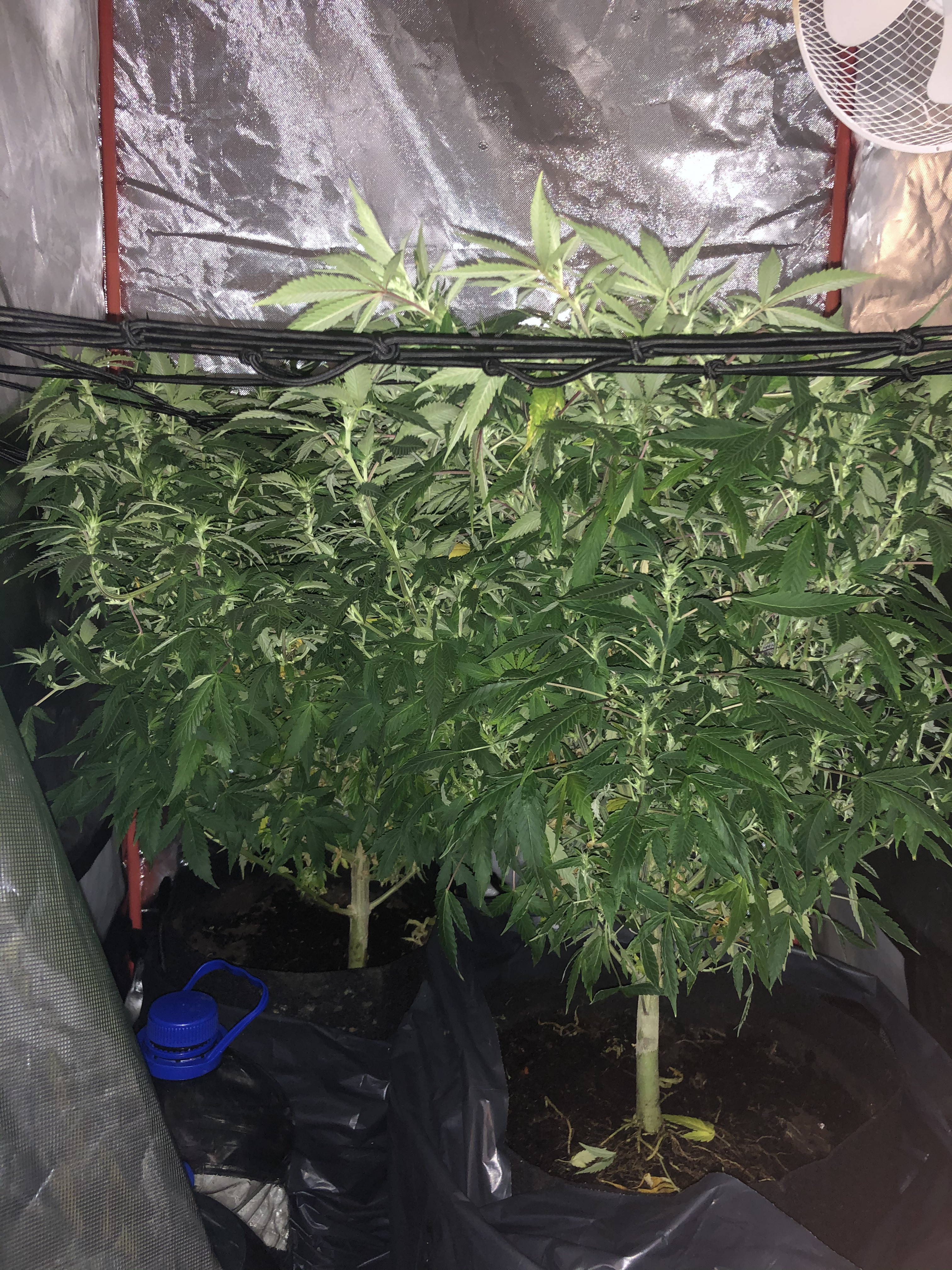 it growing low and wide. After that I wait until everything growing out has atleast 5 nodes then I top to 4th nodes and keep growing the plant wide. Now this is where my way is different than anything I’ve read on ScrOGing so far. Once the plant is the size I want I flip to 12/12 and let it grow out 1wk then I defoliate and put my screen down. After that I keep the plant growing UNDER the screen (none of that weaving in and out bullshit) and I keep moving the branches as they grow out to manipulate them until there are colas underneath every hole in the screen. After that it’s cruise control until harvest. I also took a old water hose and cut a 4ft length so I can lay it on the soil and easily water. My preferred method, always gets me the best looking buds overall. The only downfall is it limits the amount of plants you can fit in your tent bc they’re growing out not up.