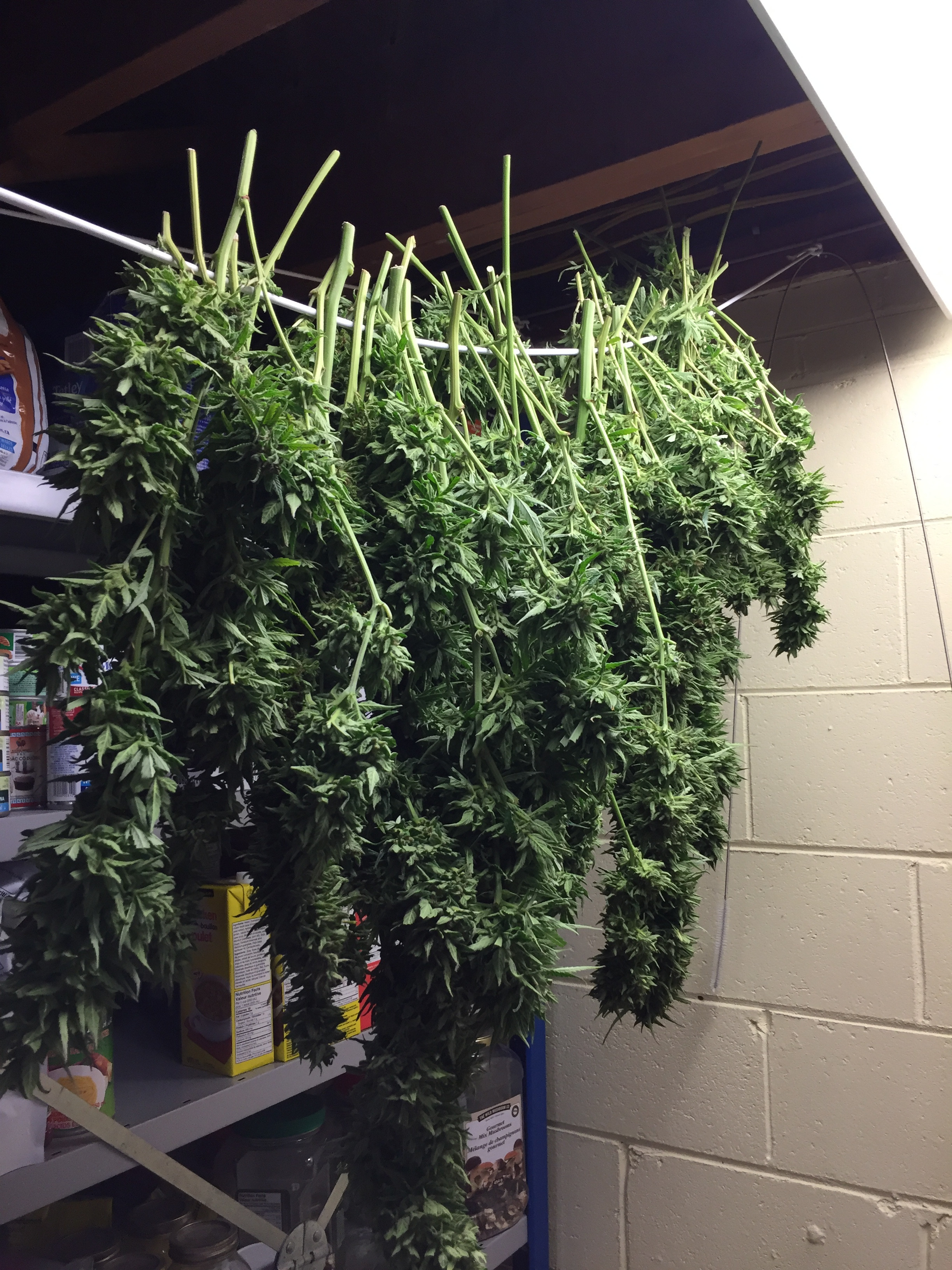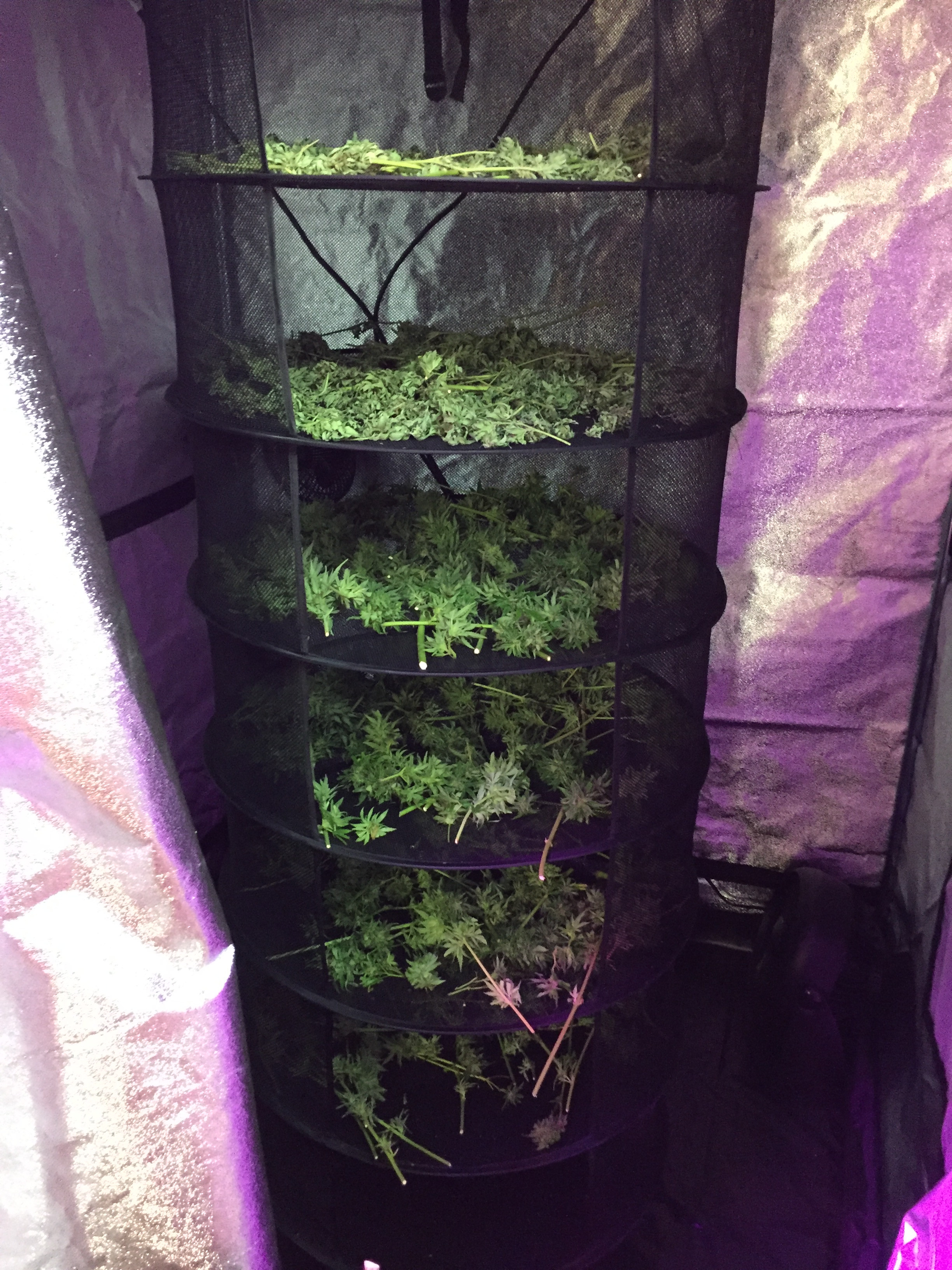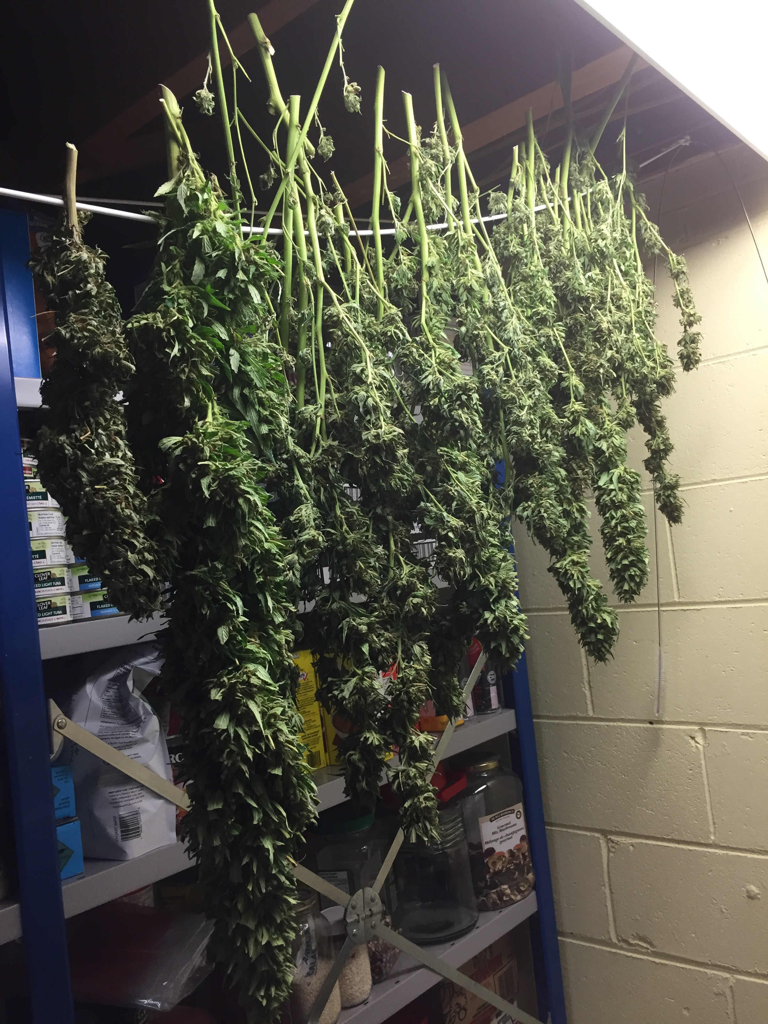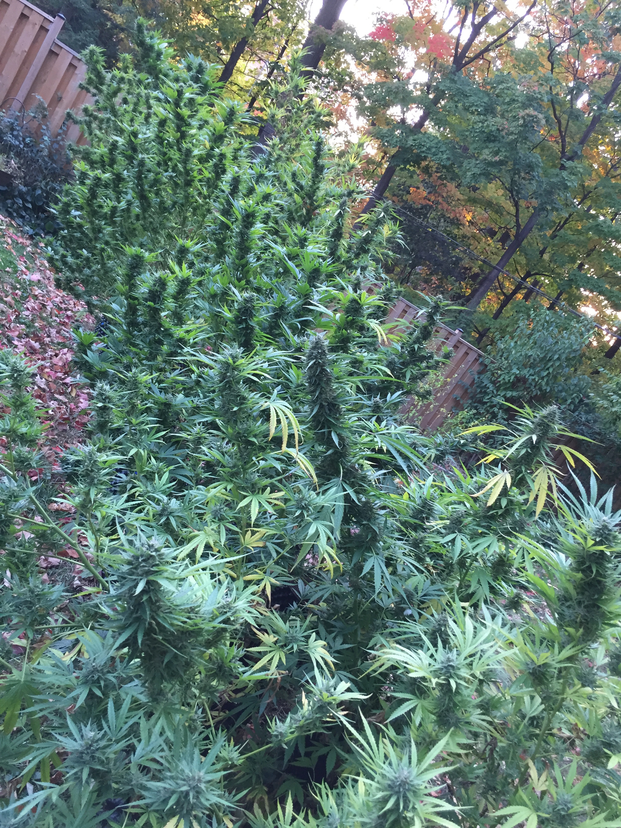Well that's excellent. I love to see family involved in growing. I do the same pre trim all outdoors mow them up. I then cut the stalks down just like you. I don't grow the monsters anymore just shorter indica hybrids. I got 5 more i'm waiting on GSC and Mango. I'm just waiting for a bit of amber in these trichs. I can't go much longer with this grow it's getting real cool overnight, and i gotta drag pots in and out of protection/cover to get what sun there is anymore at my place. But i sure admire these big grows man i love walking through the fields of green
