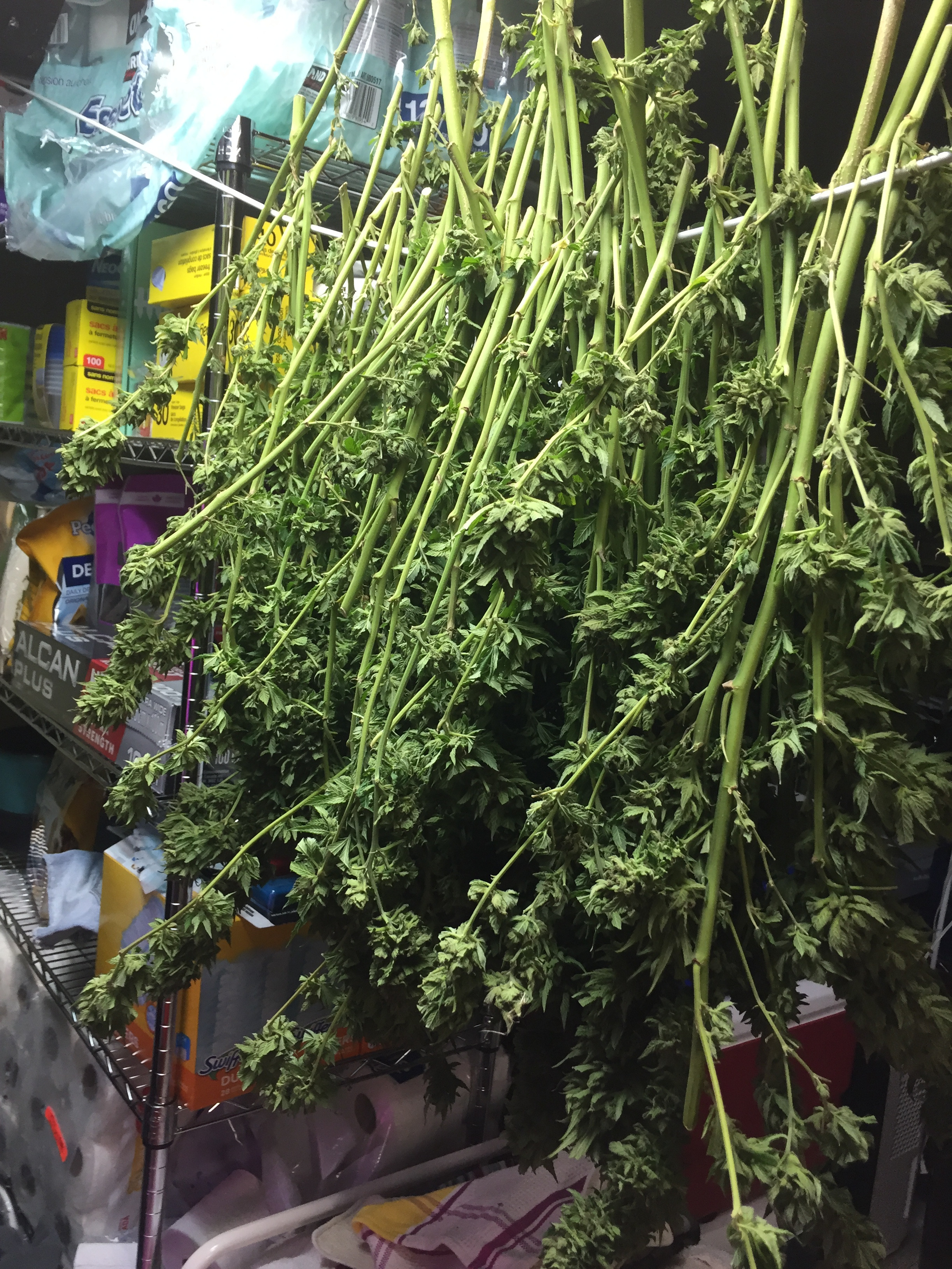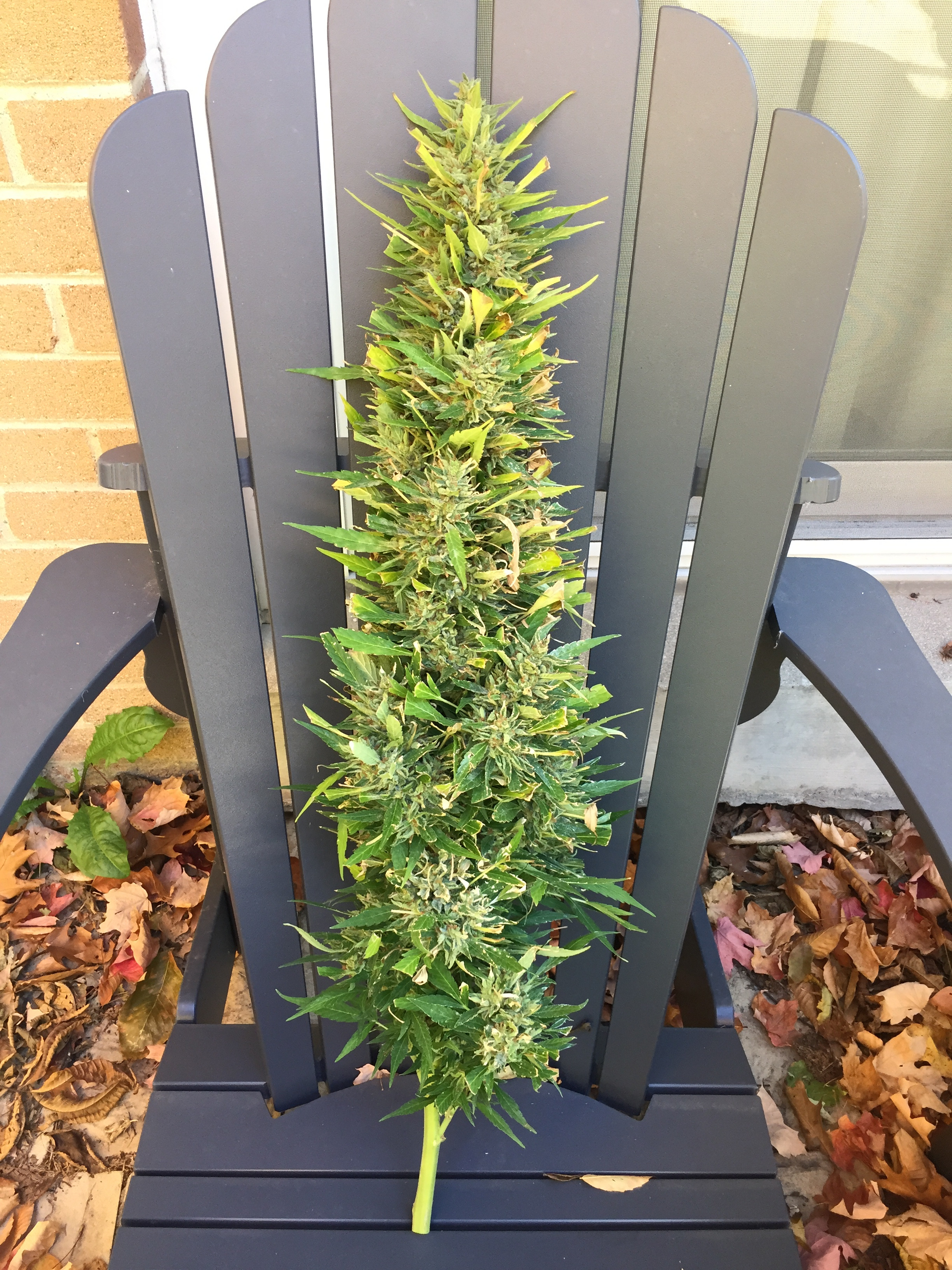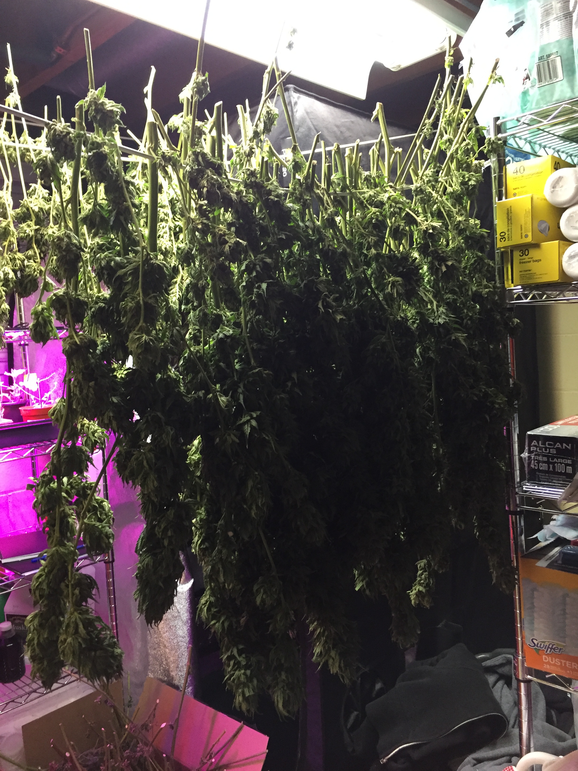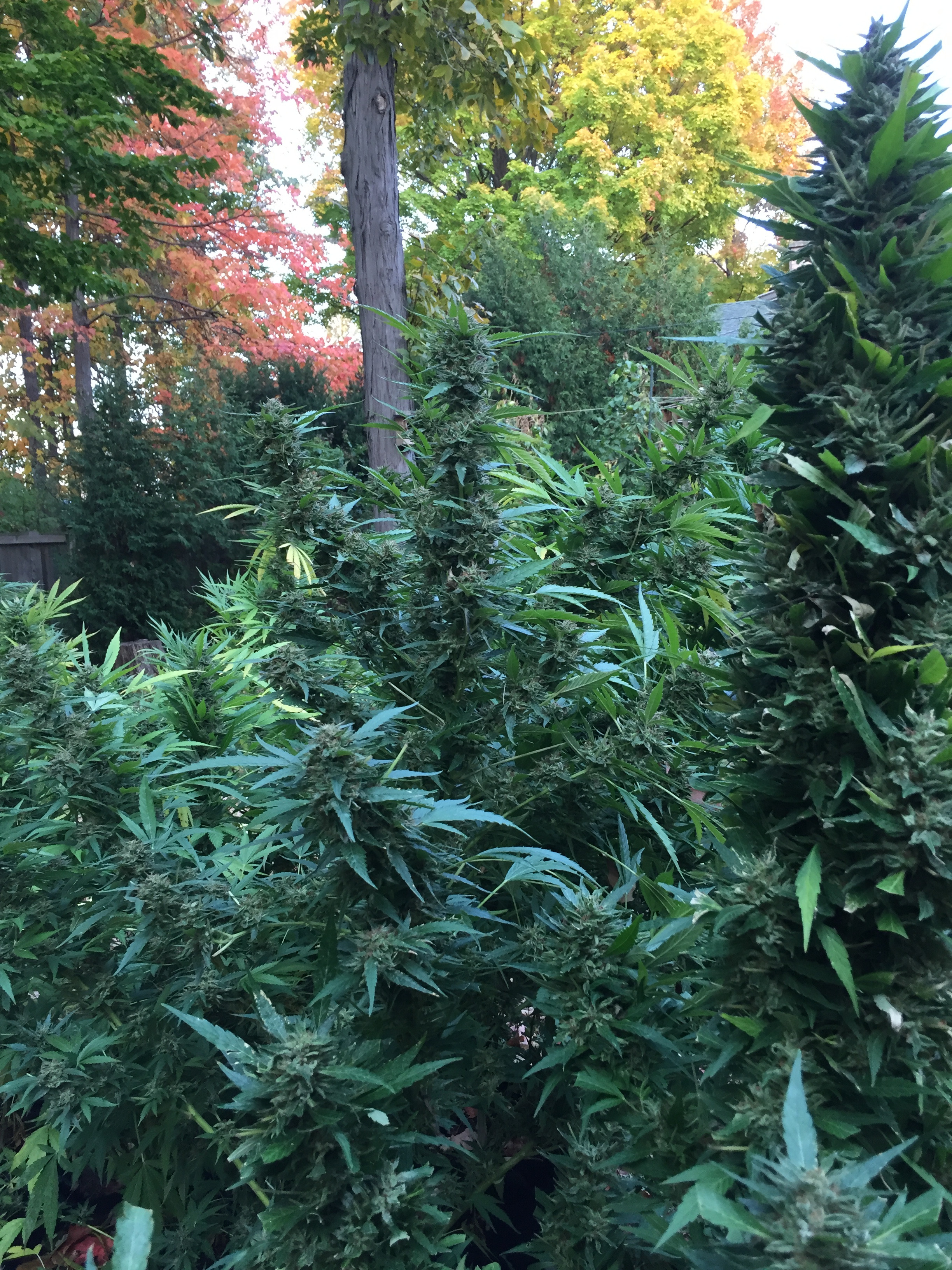 Well that's excellent. I love to see family involved in growing. I do the same pre trim all outdoors mow them up. I then cut the stalks down just like you. I don't grow the monsters anymore just shorter indica hybrids. I got 5 more i'm waiting on GSC and Mango. I'm just waiting for a bit of amber in these trichs. I can't go much longer with this grow it's getting real cool overnight, and i gotta drag pots in and out of protection/cover to get what sun there is anymore at my place. But i sure admire these big grows man i love walking through the fields of green