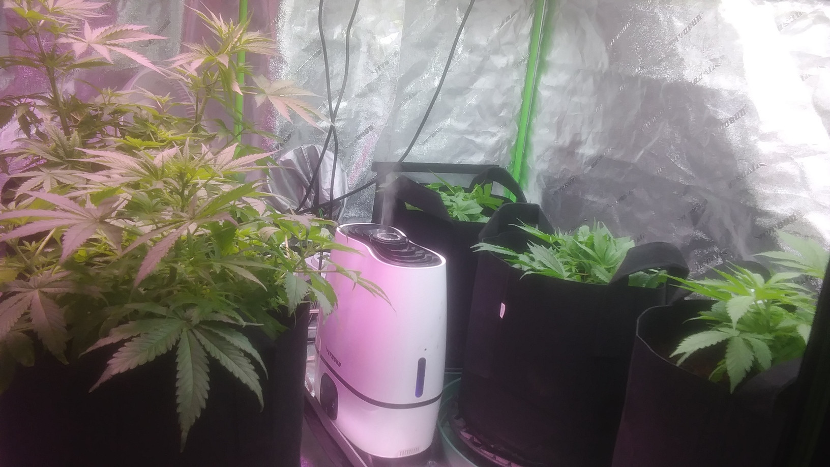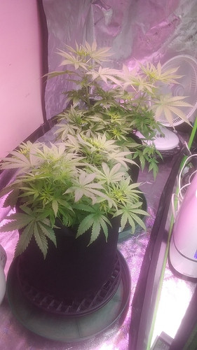 Girls are through there first week of flower an puttin in work.. also dont see no balls so i believe there all females which is fuckin dope, even if we did have a dude in there id probally use his pollin n make a cross, Temps are better than at the start when its up to 90 degrees at times… but winter is comin n thats where they get there fresh air from so its expected i guess…also had add a humidifer cause RH was at a steady 20-25% which would fine for me at the end but m sure they need it for stretchin, i can upload pics of my last batch if anyone is intrested or earlier pics of this batch jus let homie know but other than that things are alright an m fuckin geeked so thanks for stoppin by an Happy Growin