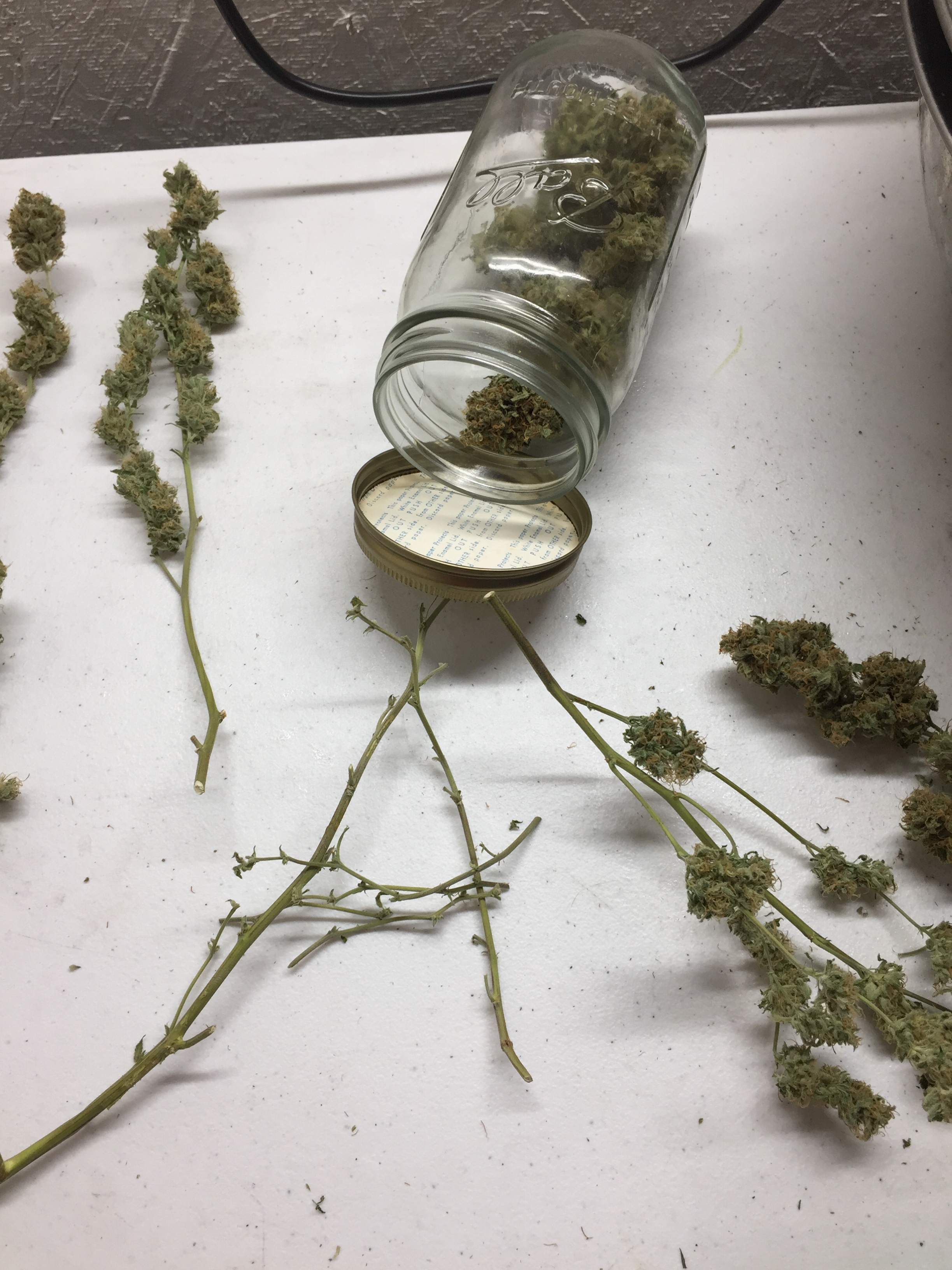 I've used biggest Tupperware bowls, before I jar it up. If after 3 days of daily checking, if they moisten back up leave the lid off . Once the big buds will snap when bent, I jar them. I've also jarred too early, had to dump them back out for more drying. Seems to be a fine line for perfect smokability. If it does get too harsh , you can make edibles. Very nice haul on your plant. I have a feeling your gonna need more bigger jars