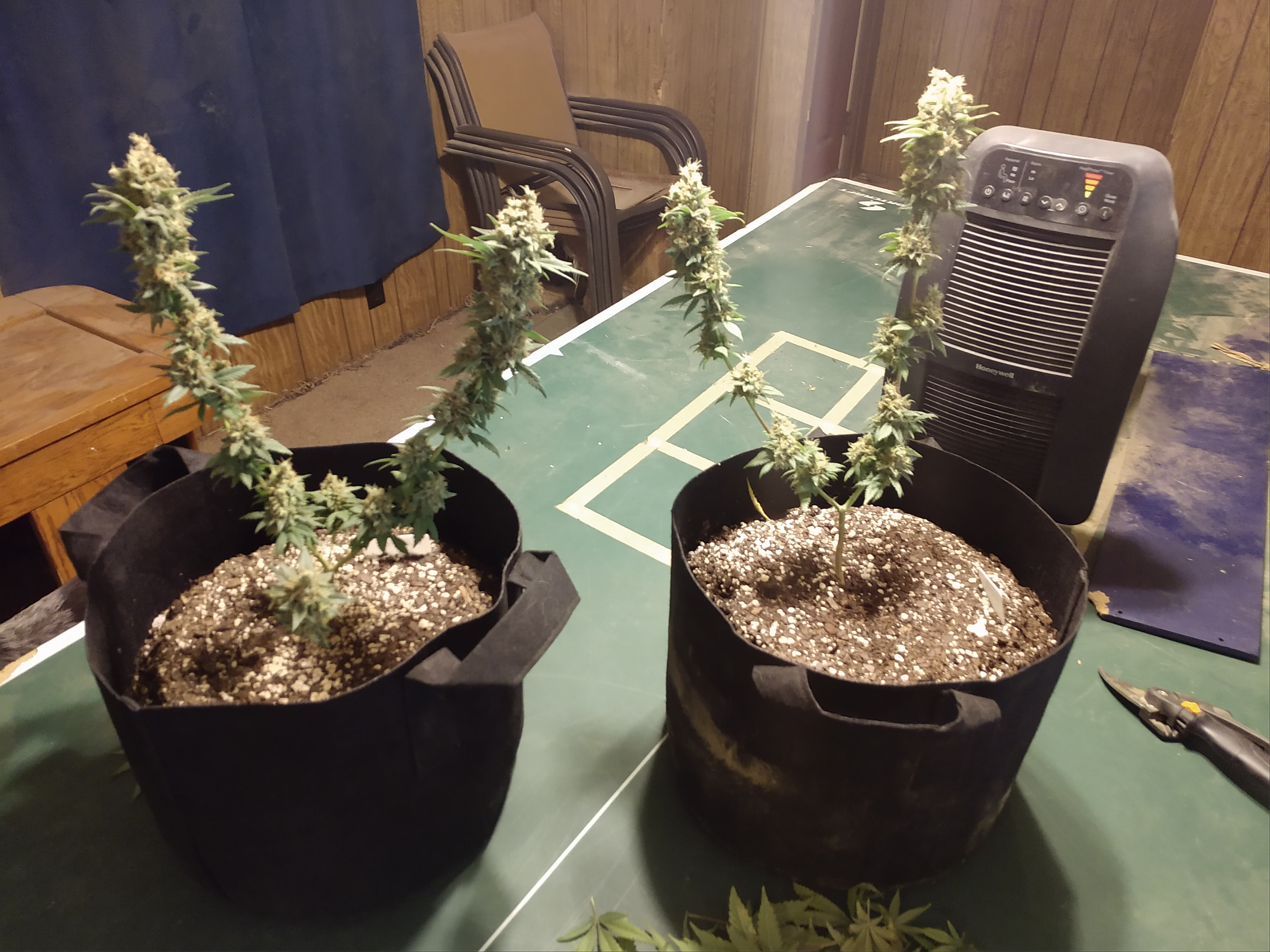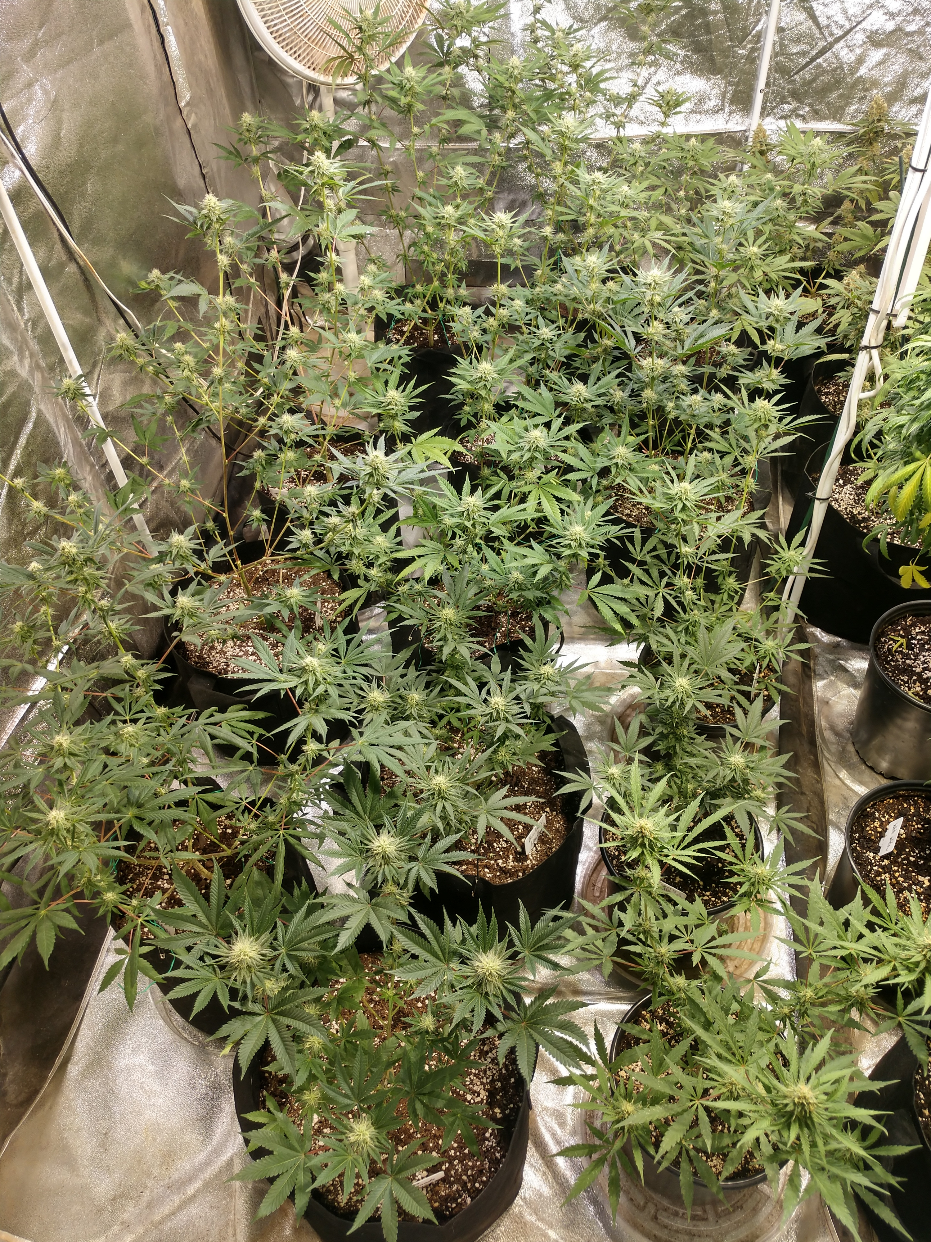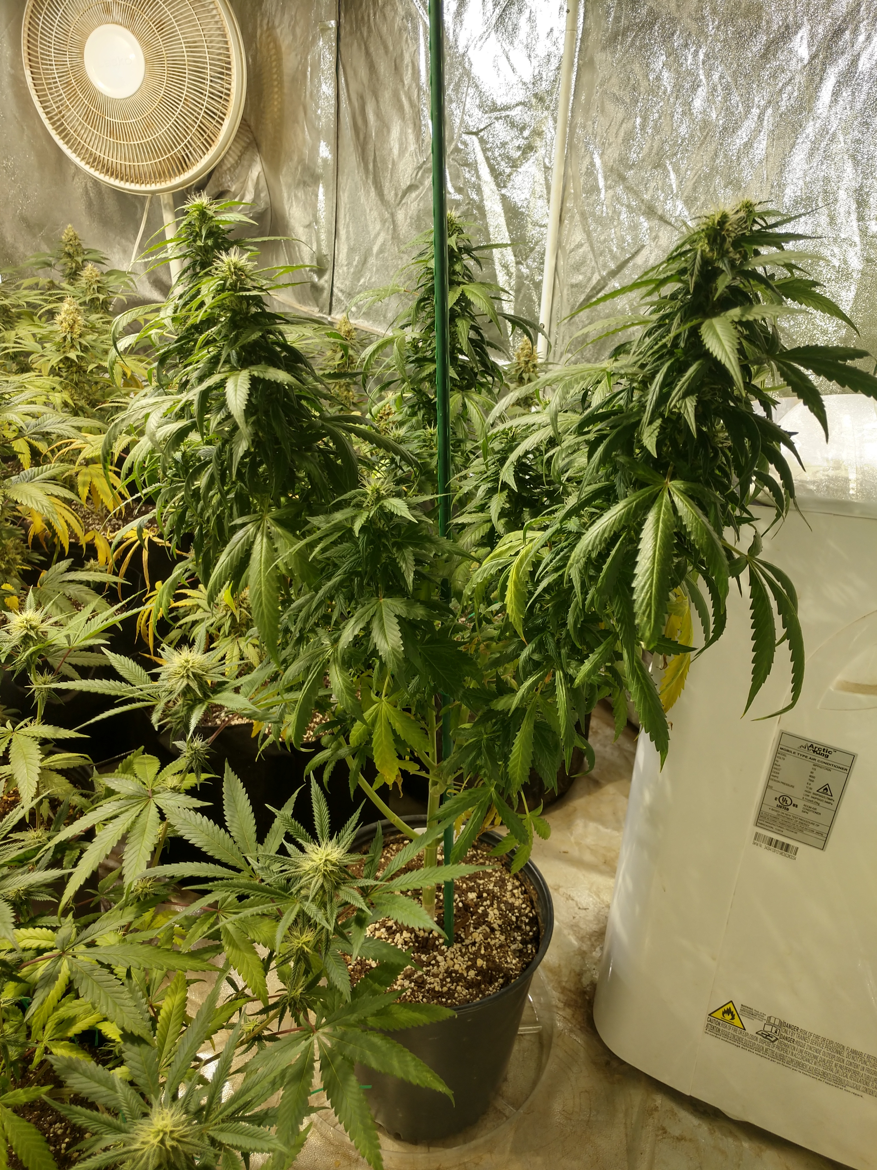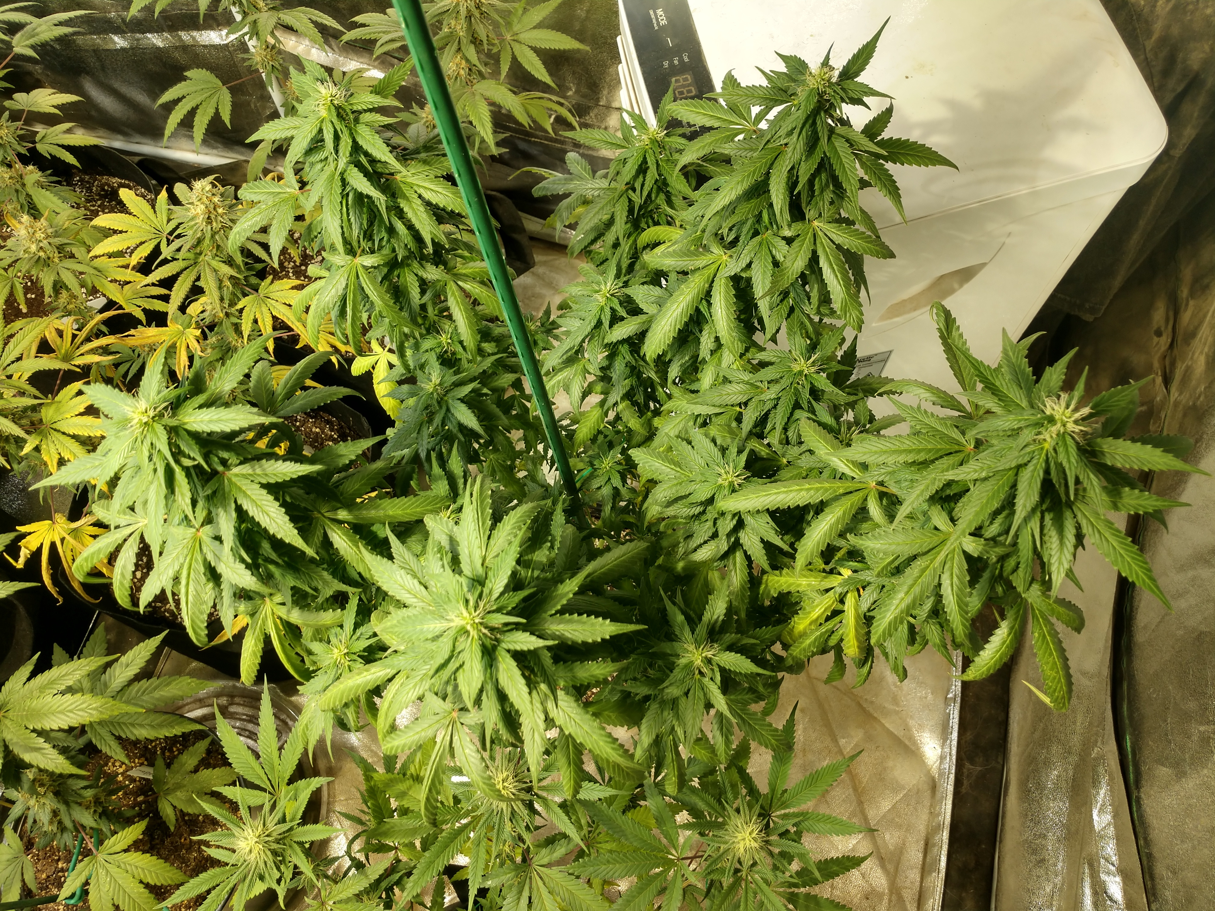 Rearranged the tent (again) and put 4 Blue Dreams in to start flowering. Did some defoliating on most of them too. I was supposed to be putting the next cycle in the tent next week but I have a feeling the White Widows aren't going to cooperate with that because they still have another week or 2, minimum. Getting excited for this one, the buds from the mother WW came out really good even though they're still curing. Hoping I got most of the pollen sacs off the TK91 because I really don't want seeds. It looks like my WW missed the last pollination, fortunately, so hopefully that was it for the seeds for a little while. I guess we'll see in a few weeks. AccidentalGardener did I fill the empty spot? 😂