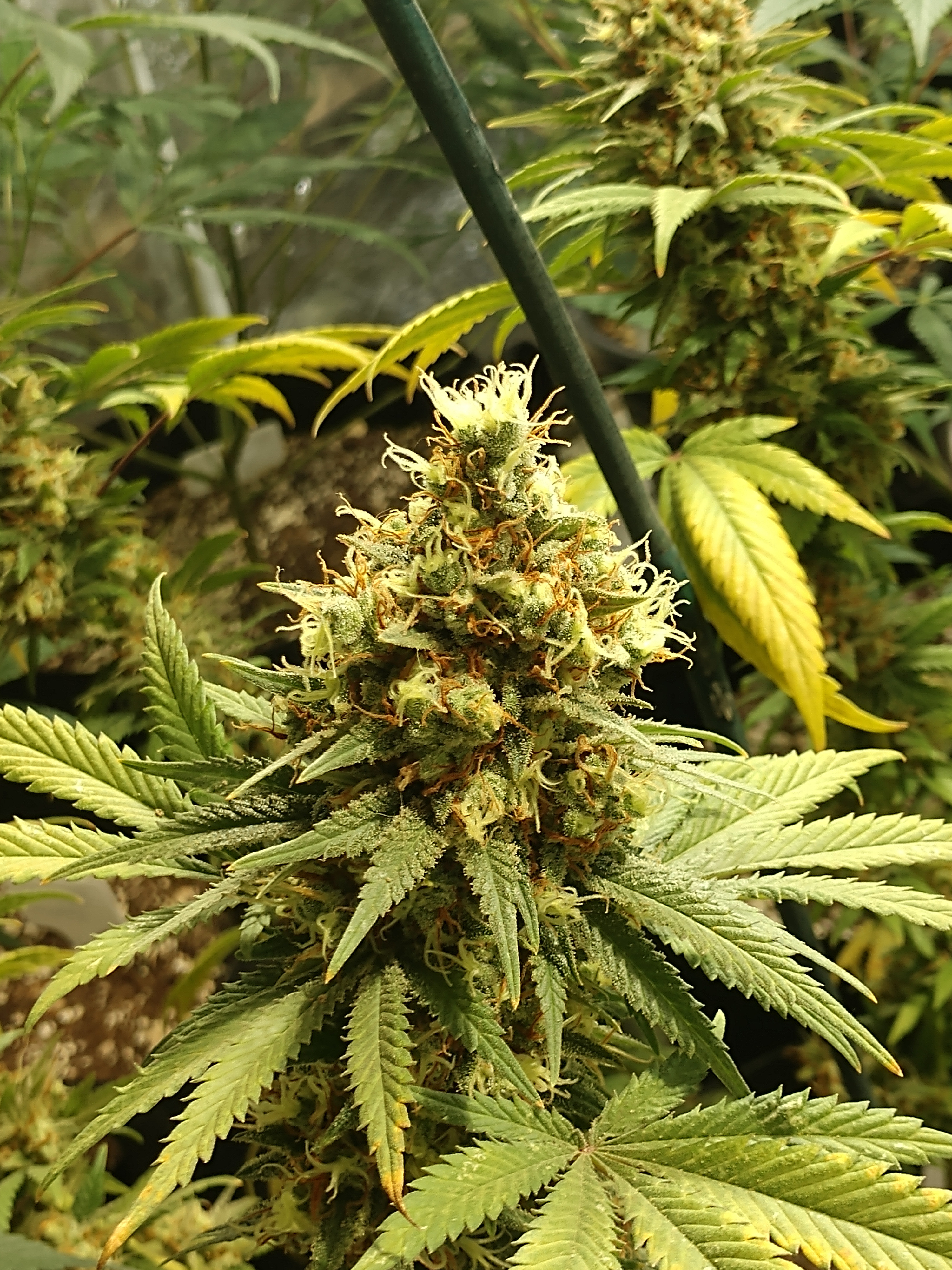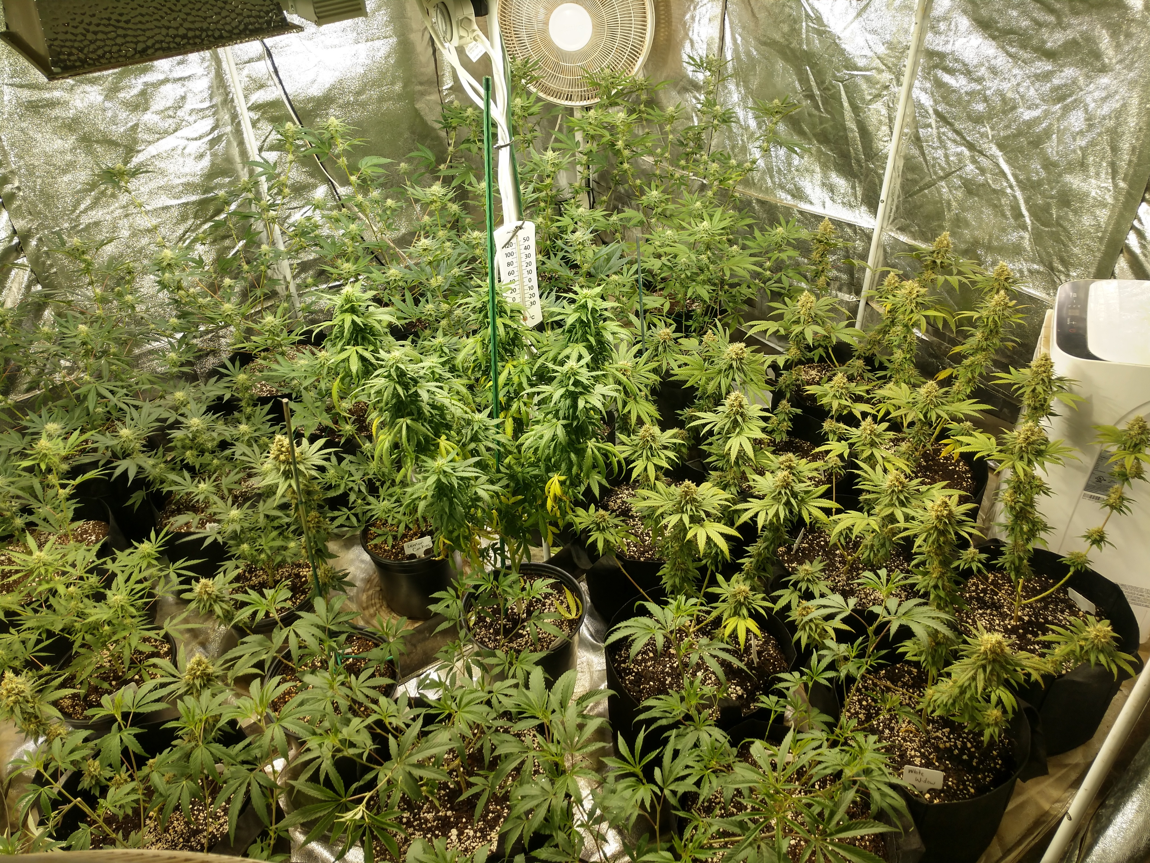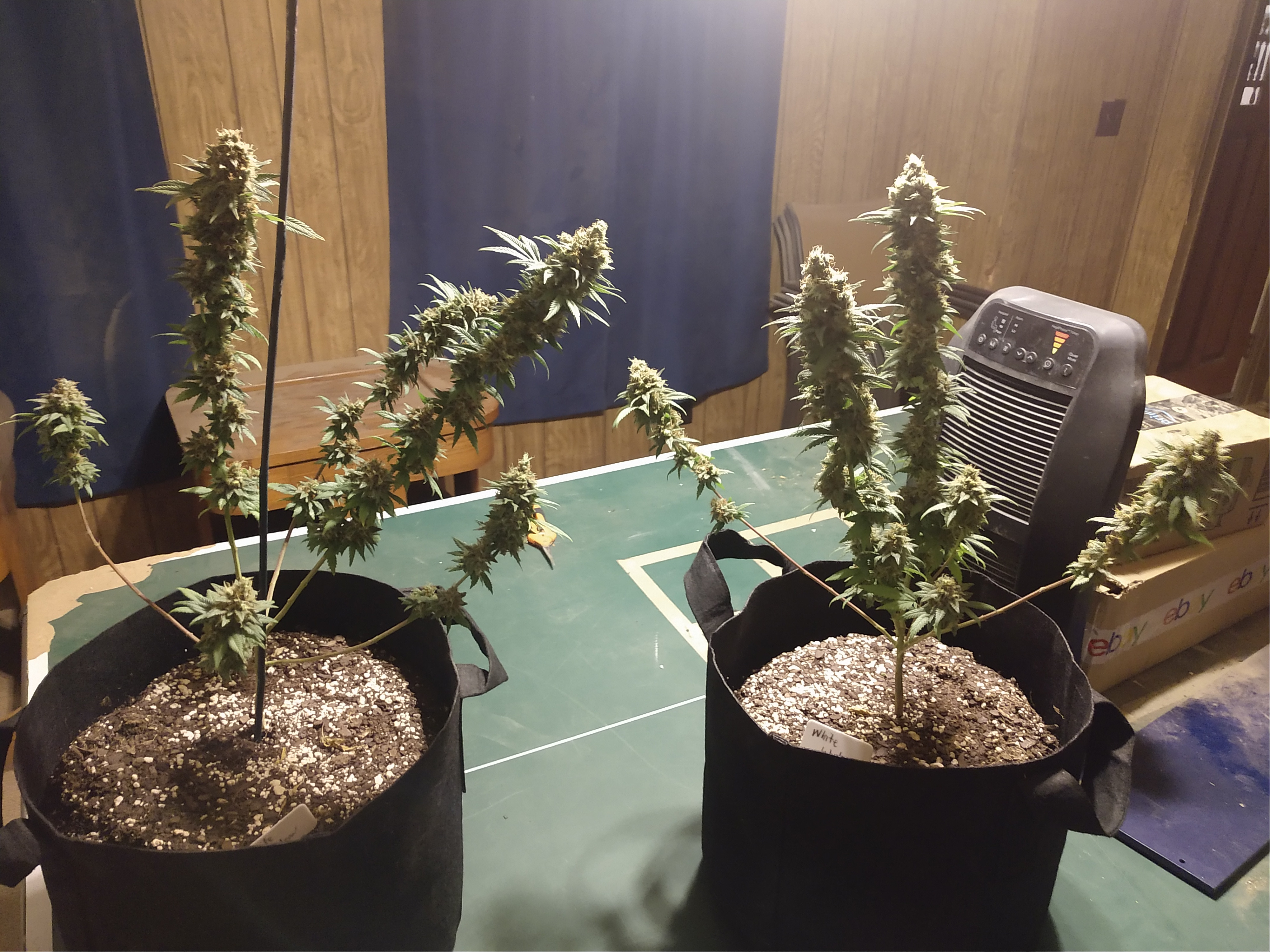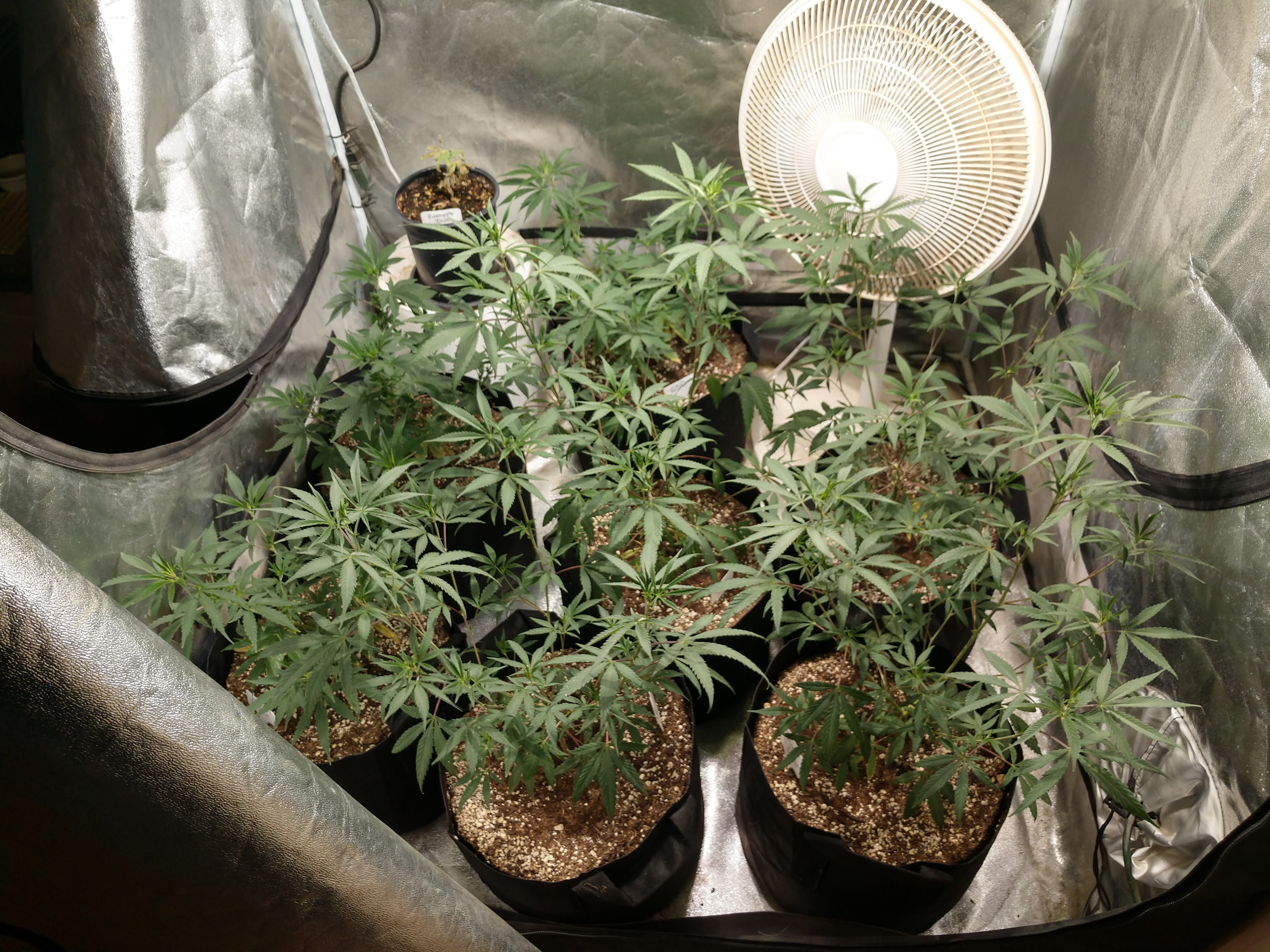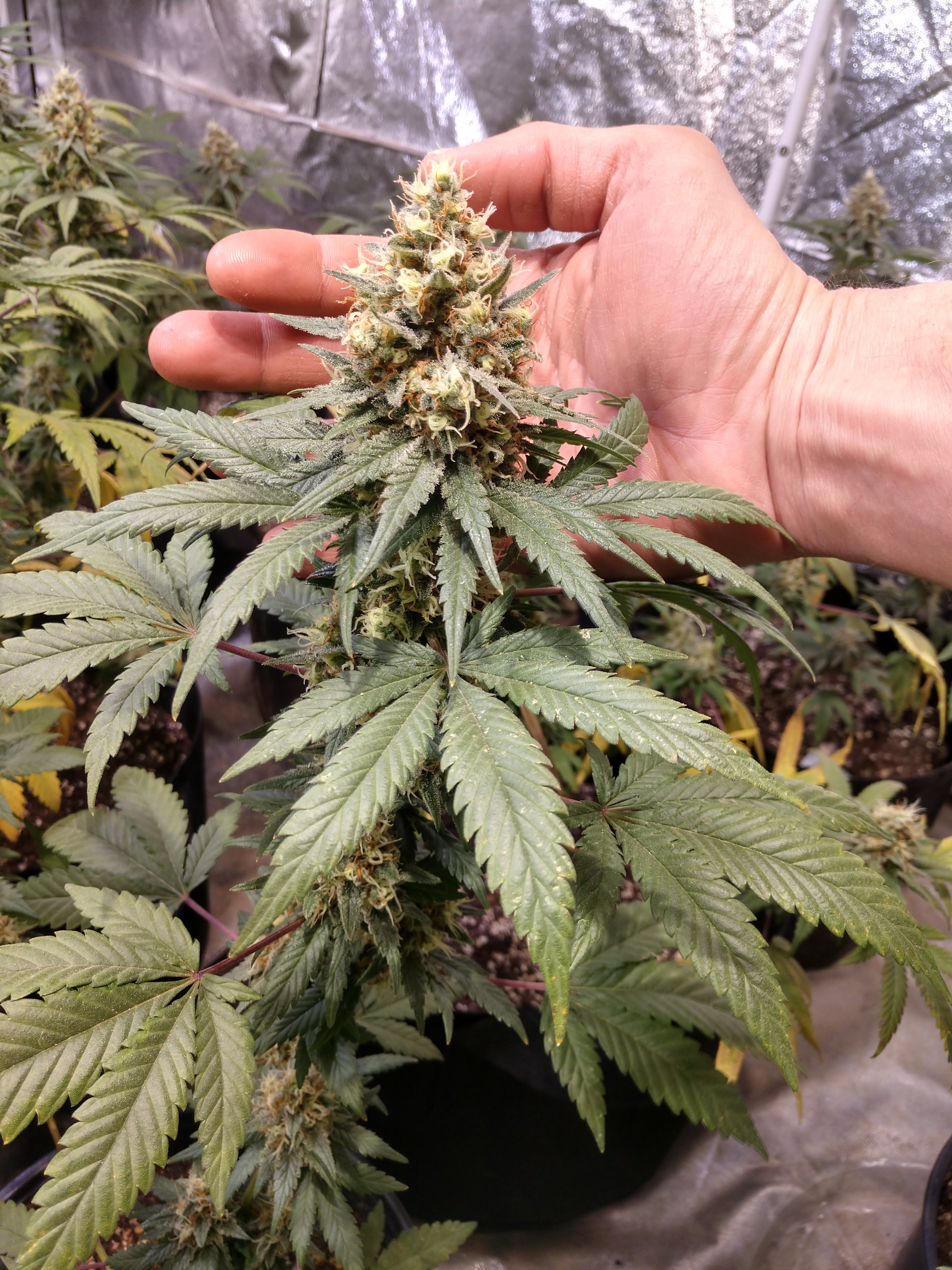 Rearranged the tent (again) and put 4 Blue Dreams in to start flowering. Did some defoliating on most of them too. I was supposed to be putting the next cycle in the tent next week but I have a feeling the White Widows aren't going to cooperate with that because they still have another week or 2, minimum. Getting excited for this one, the buds from the mother WW came out really good even though they're still curing. Hoping I got most of the pollen sacs off the TK91 because I really don't want seeds. It looks like my WW missed the last pollination, fortunately, so hopefully that was it for the seeds for a little while. I guess we'll see in a few weeks. AccidentalGardener did I fill the empty spot? 😂