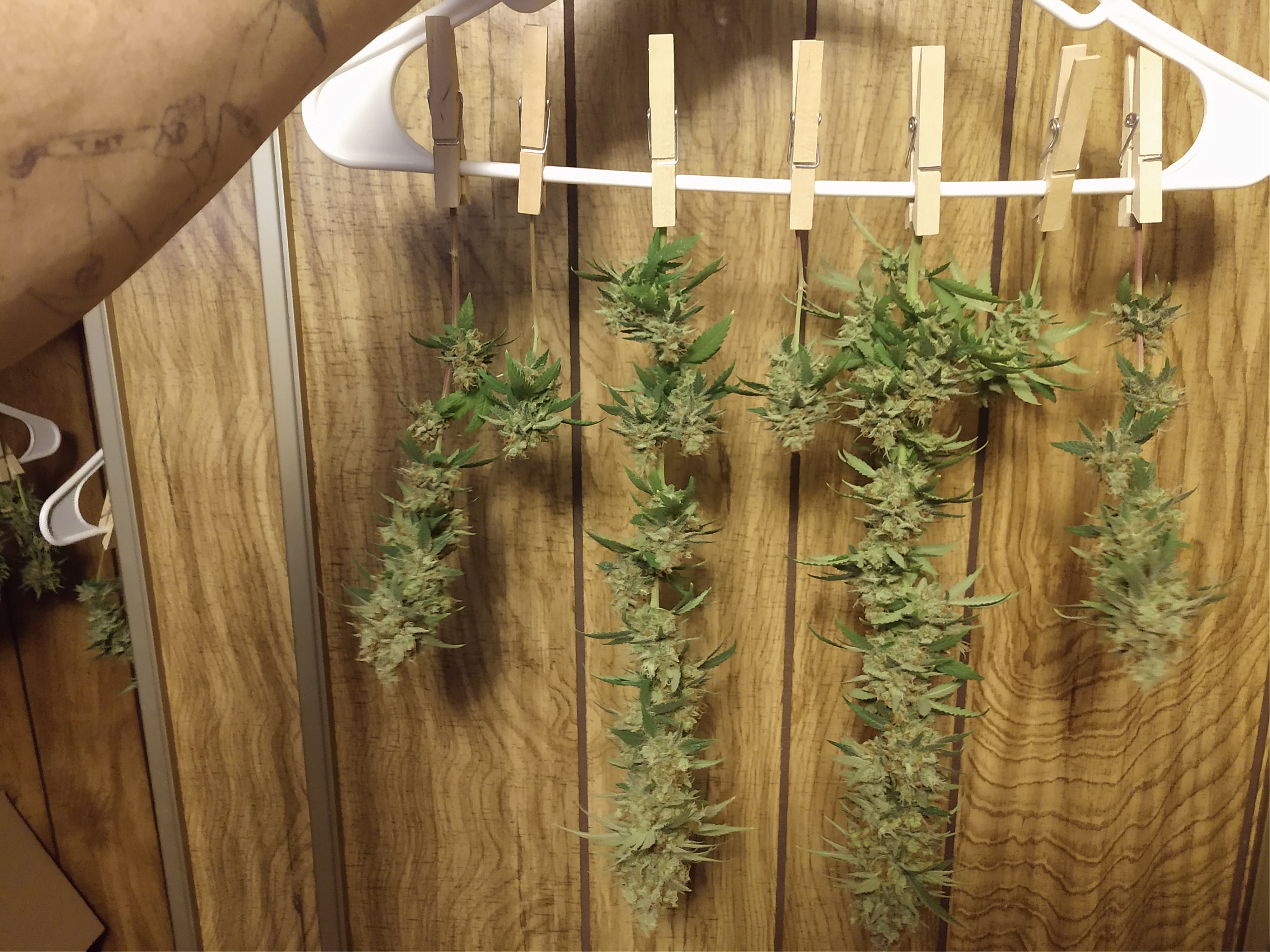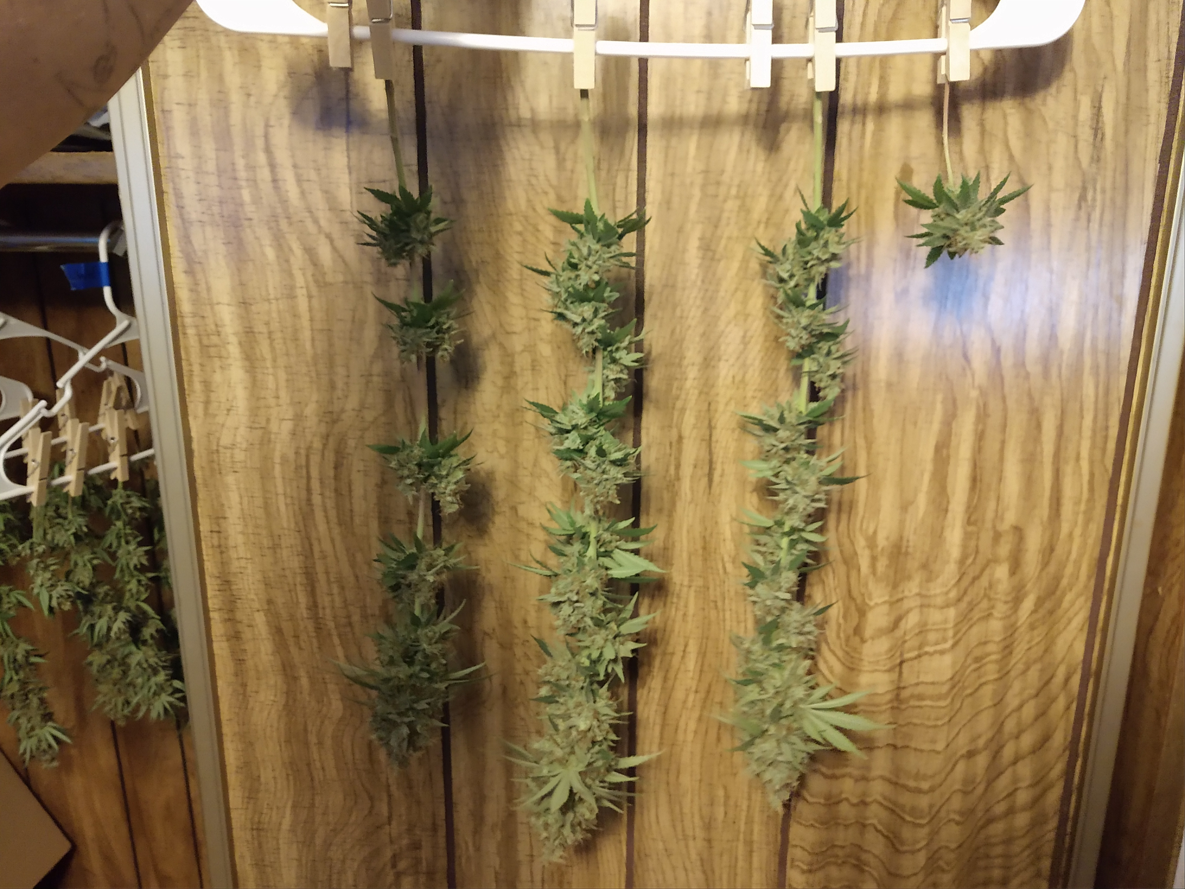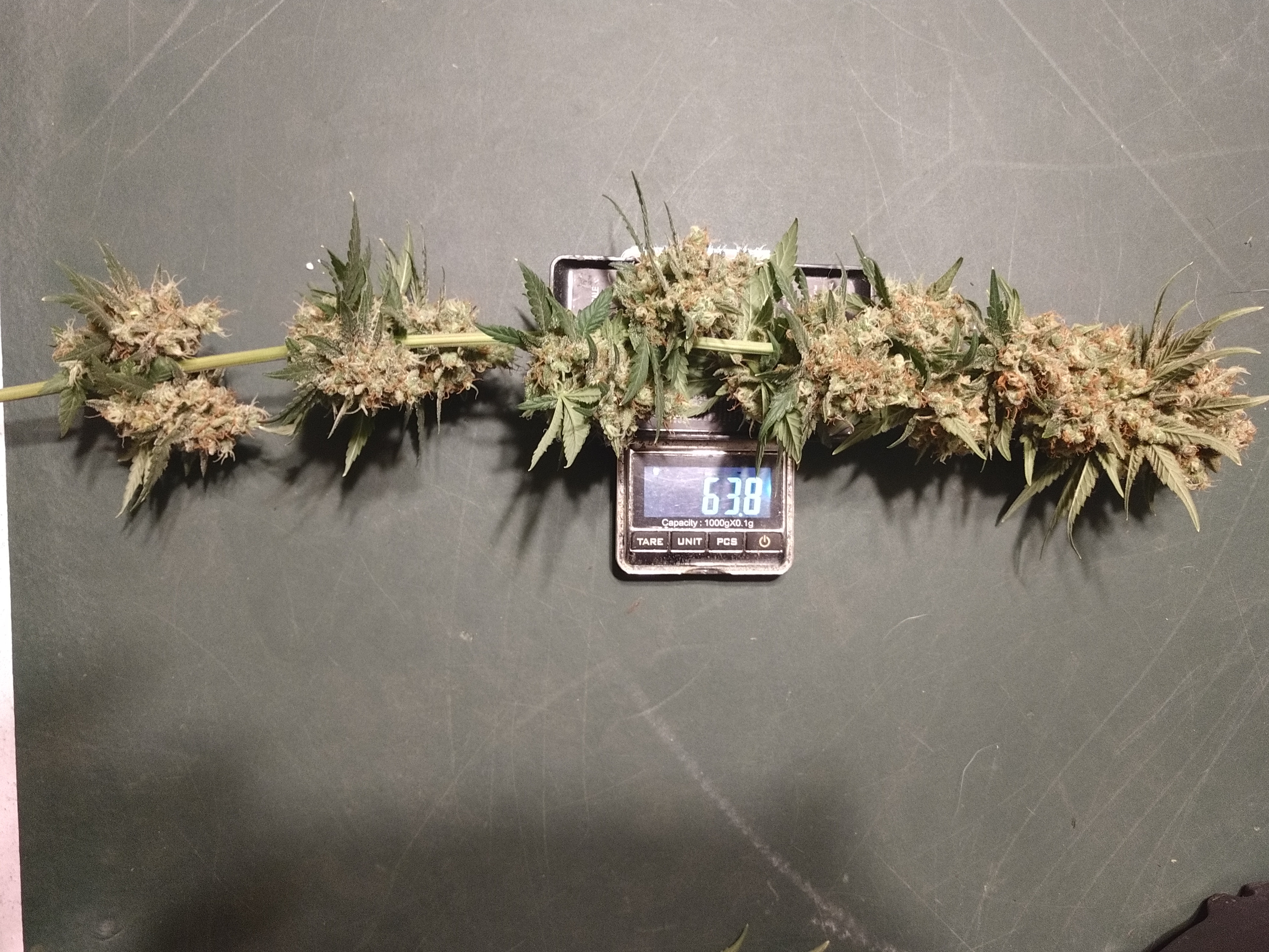 Well, I cut all the White Widow down a few days ago. They're mostly dry now and in the jars. I was close with my original guess of 6oz, and my last guess of 200g. Pictures are from harvest day. Plants are tiny but the yields were good. I don't expect the weight to drop much more, but right now I'm at 191g total. My next ones are already almost done too. Some can probably come down any time, and some have maybe 2-3 weeks left. Hoping for about 14oz total for the next ones, just a guess (there's a good amount of popcorn buds so it's hard to say).