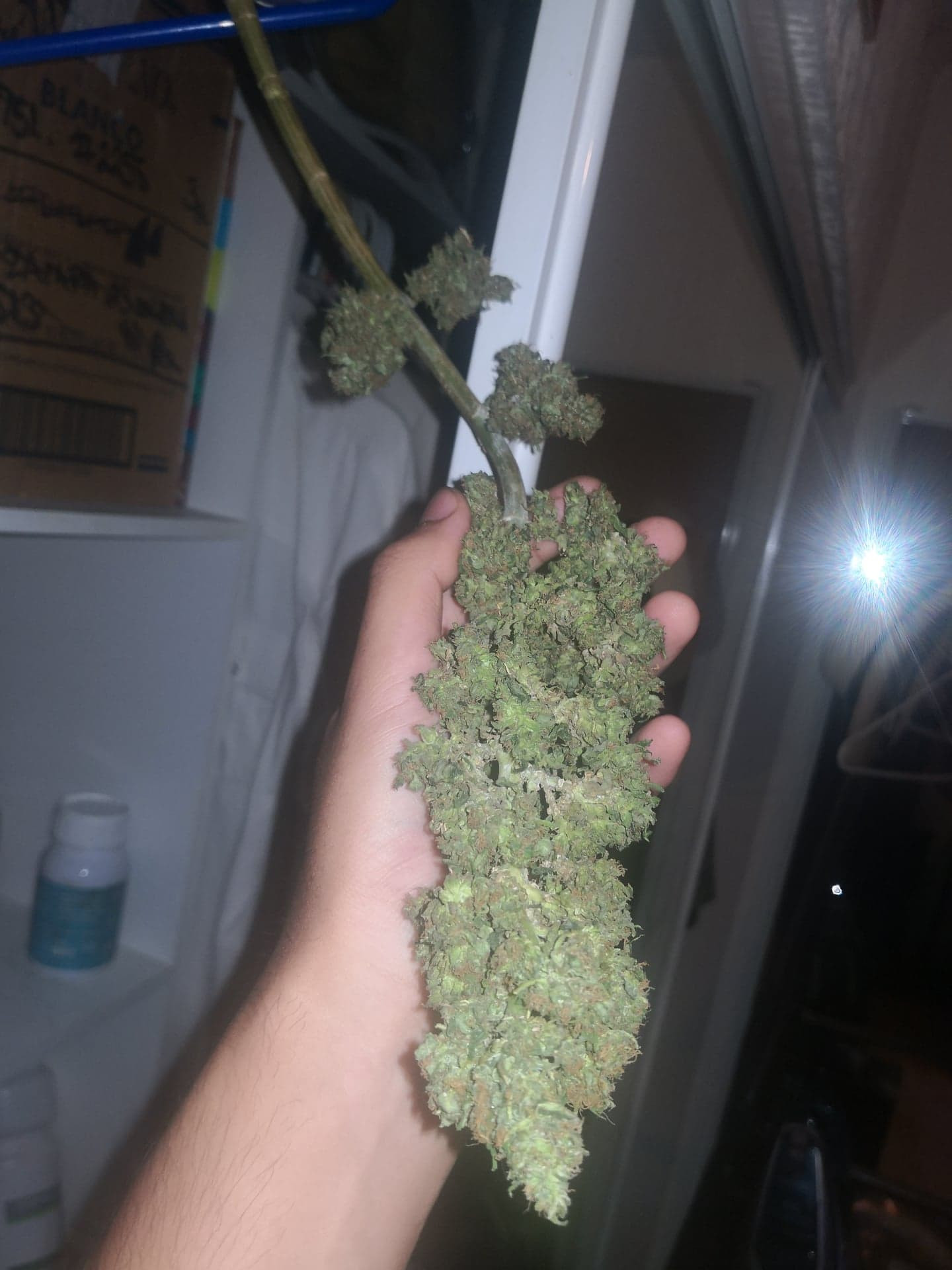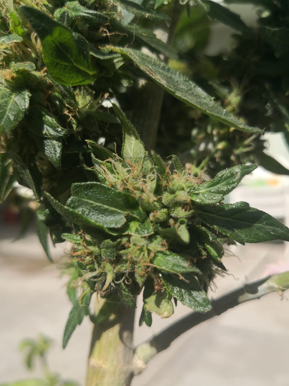 Now I will post some pictures of the buds and how they are looking atm, yesterday I broke the stem off the plant, I don't know if I should harvest it all before more stuff happens or just to wait a week or two: