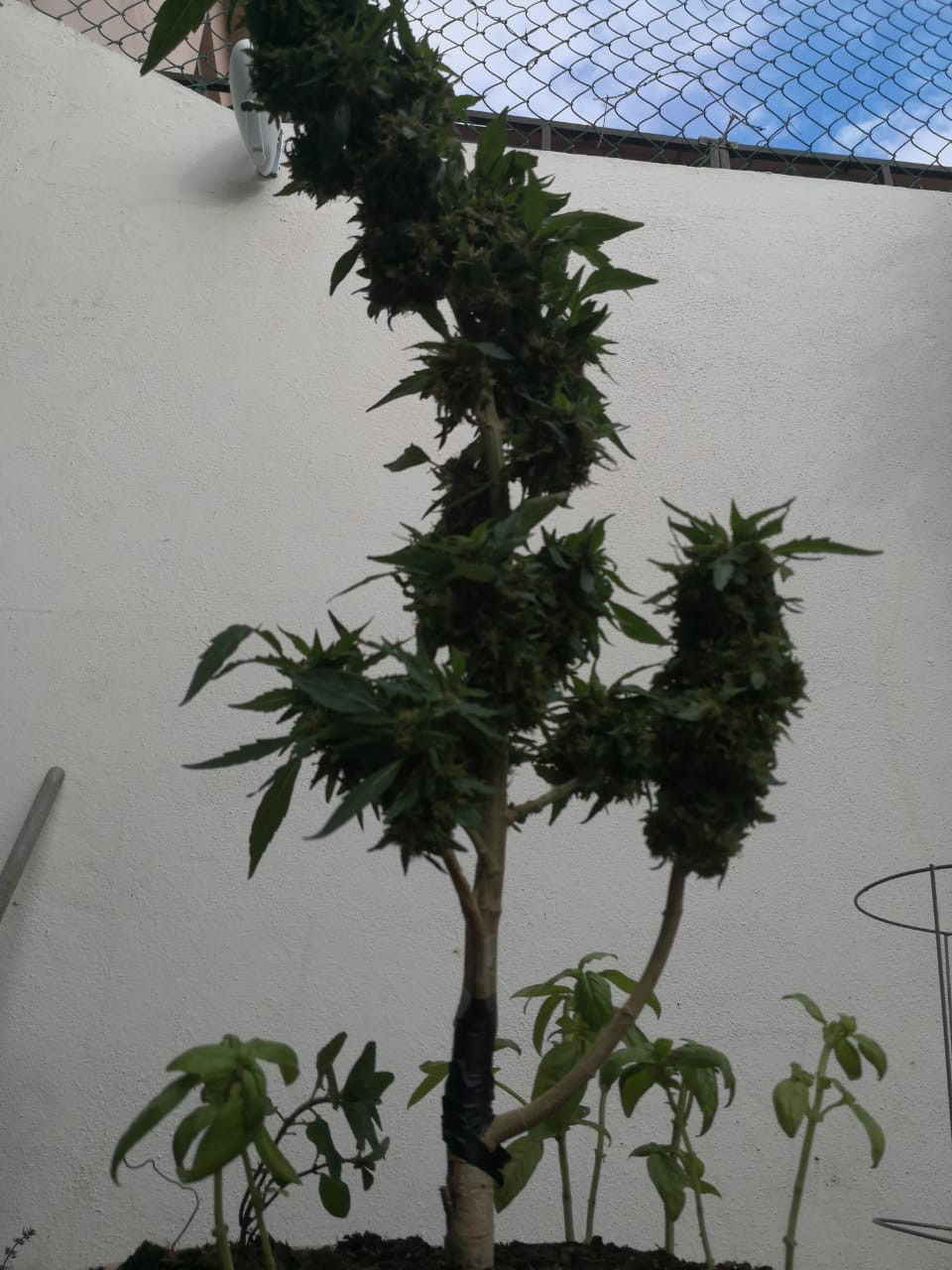My plant has passed a lot of stressful moments and I am afraid I created more stress by removing one of the branches entirely by snapping it. I was trying to save it from contaminated buds that were forming black spots from the inside, for what I know, this was created by the caterpillars defecating there and keeping humidity inside the buds. That branch is "curing" at the moment and the rest of the plant is still out there, with some small caterpillars hiding in it. I try to remove them all, even sprayed some neem oil but damn is it difficult.