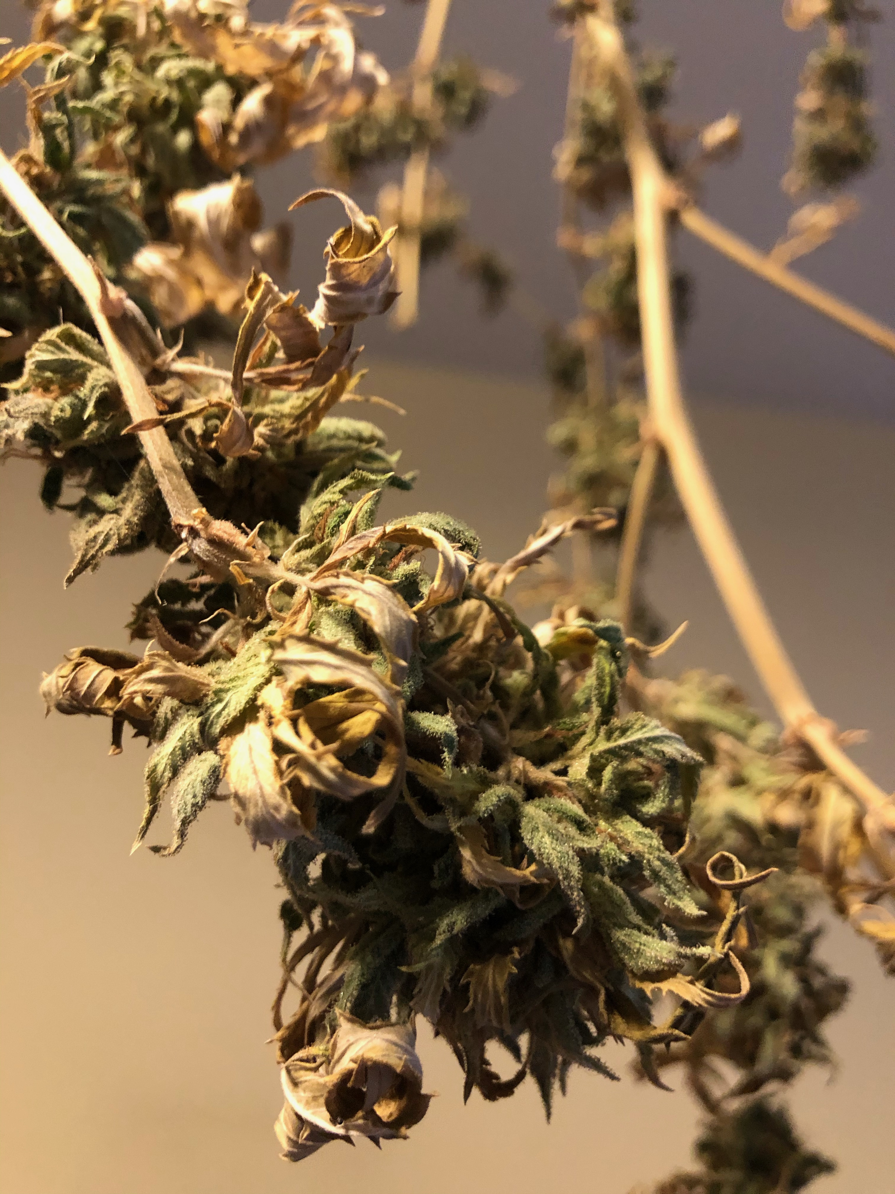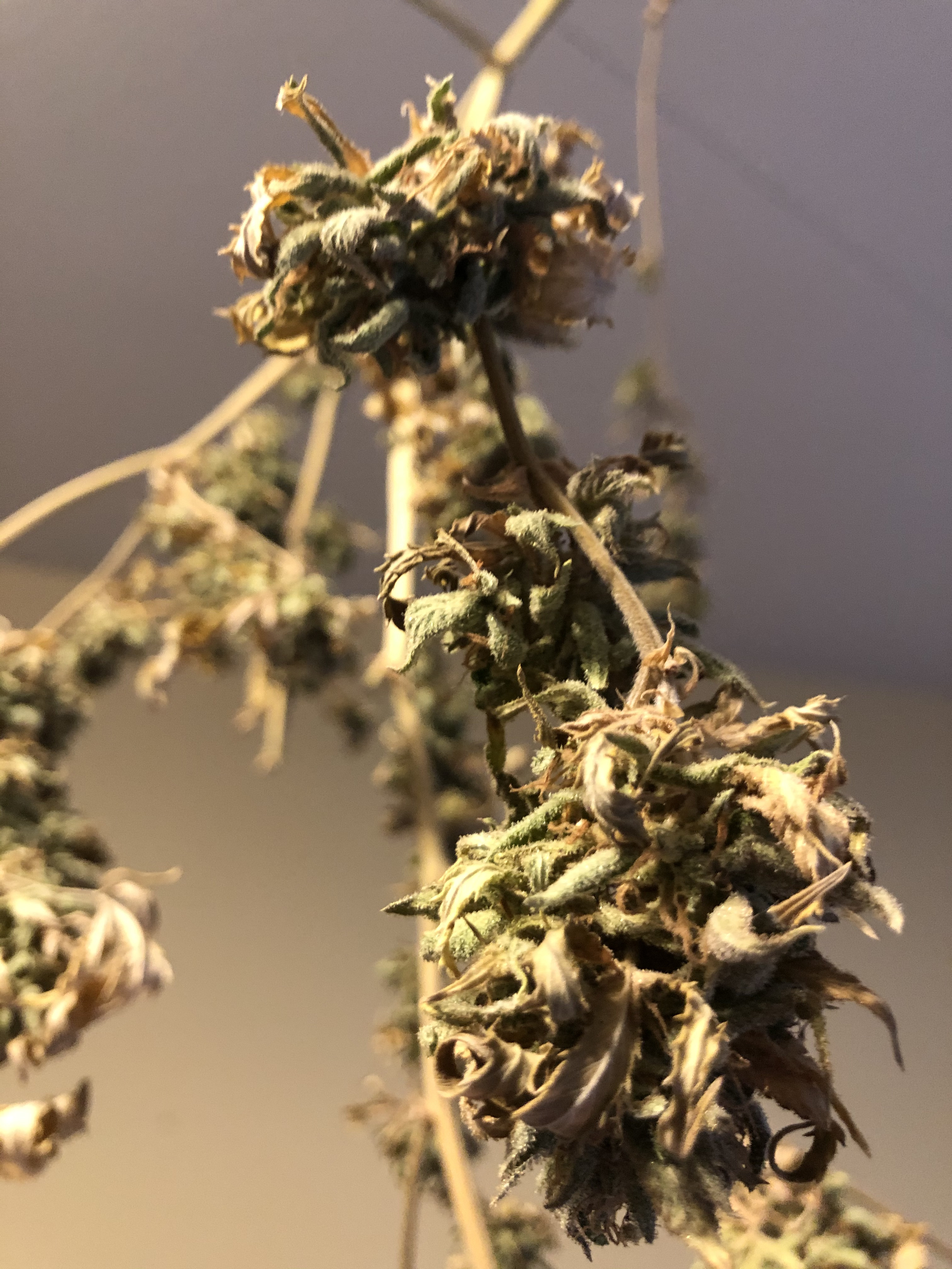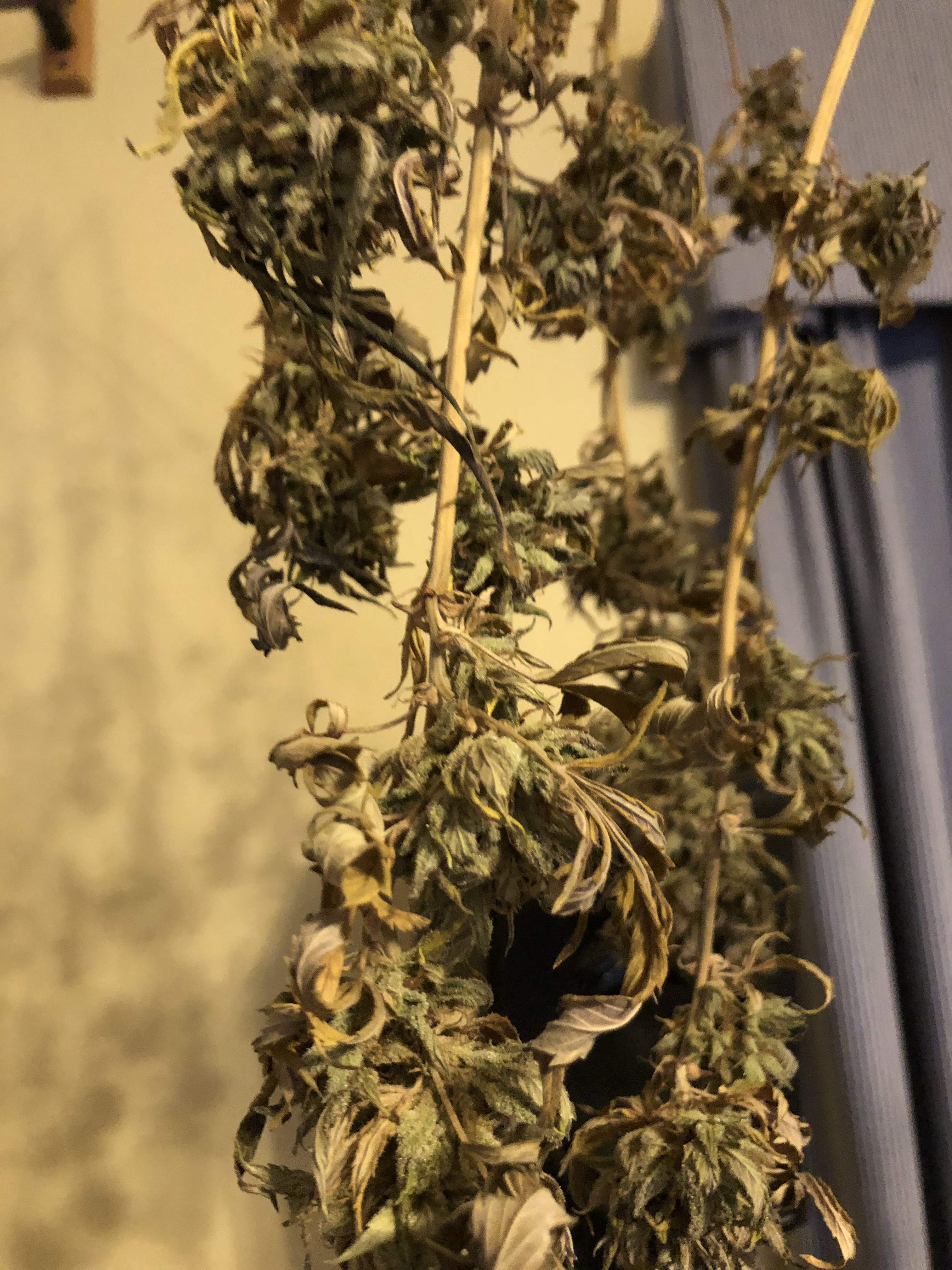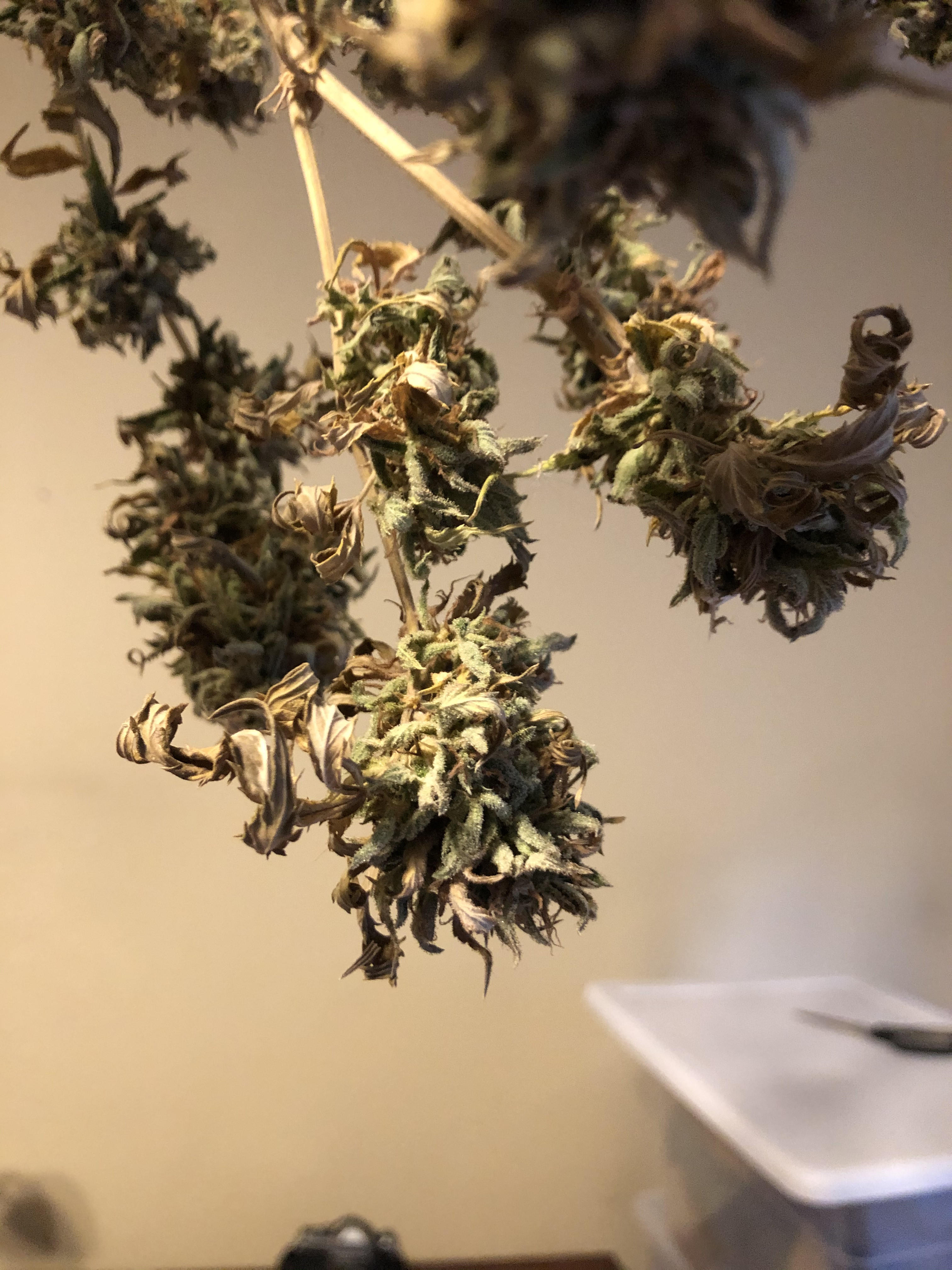 I previously posted pictures of my buds that had bud rot, and after getting advice I decided to take off all of the infected buds and harvest. My plants have been drying now for about two weeks and I would like to start trimming/curing but I wanted to make sure my buds looked good and not infected before I did that because obviously I am not trying to smoke buds with mold on them. Attached are some pics of my drying plants, I would love some help trying to identify if my buds look ok or not. Thank you so much!