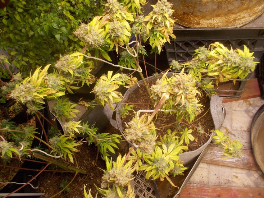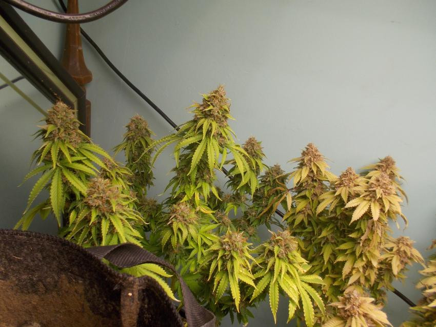 10 weeks in flower, I took a bud from the Greasy Grapes a few days ago, now dry enuf to test, I took a few more today after the sample. Luvely taste and smell, its gonna be hard to stay out of it while it cures, good thing I have ample stock! That Berryfreak is phat, but still gaining weight and no amber yet, cloudy yes so she's close. The MP x T1000 is still clear to cloudy, as is the BB4. The SMCG is still weeks away.