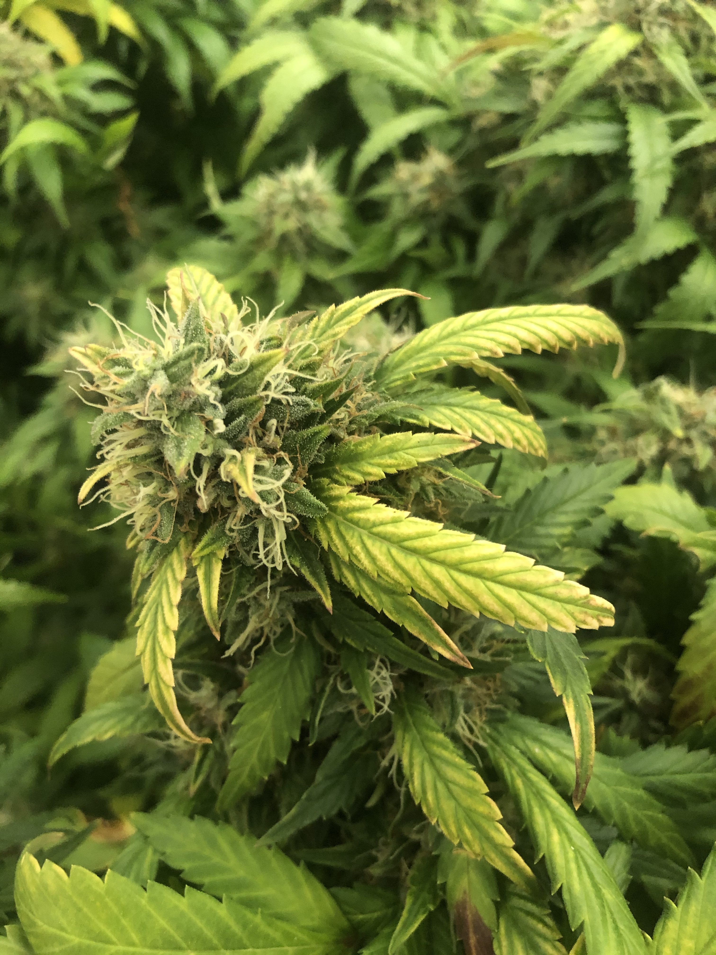 I’m mid way into week 7 of flowering and within the past few days one of my plants seem to of gotten a little sick. I’m pretty sure my plants aren’t ready to harvest yet because of all the white pistols and the trichomes still look clear under the microscope... however I’m getting concerned for the plant that’s looking ill because I don’t want it to get any worse.. next week I was due to flush.