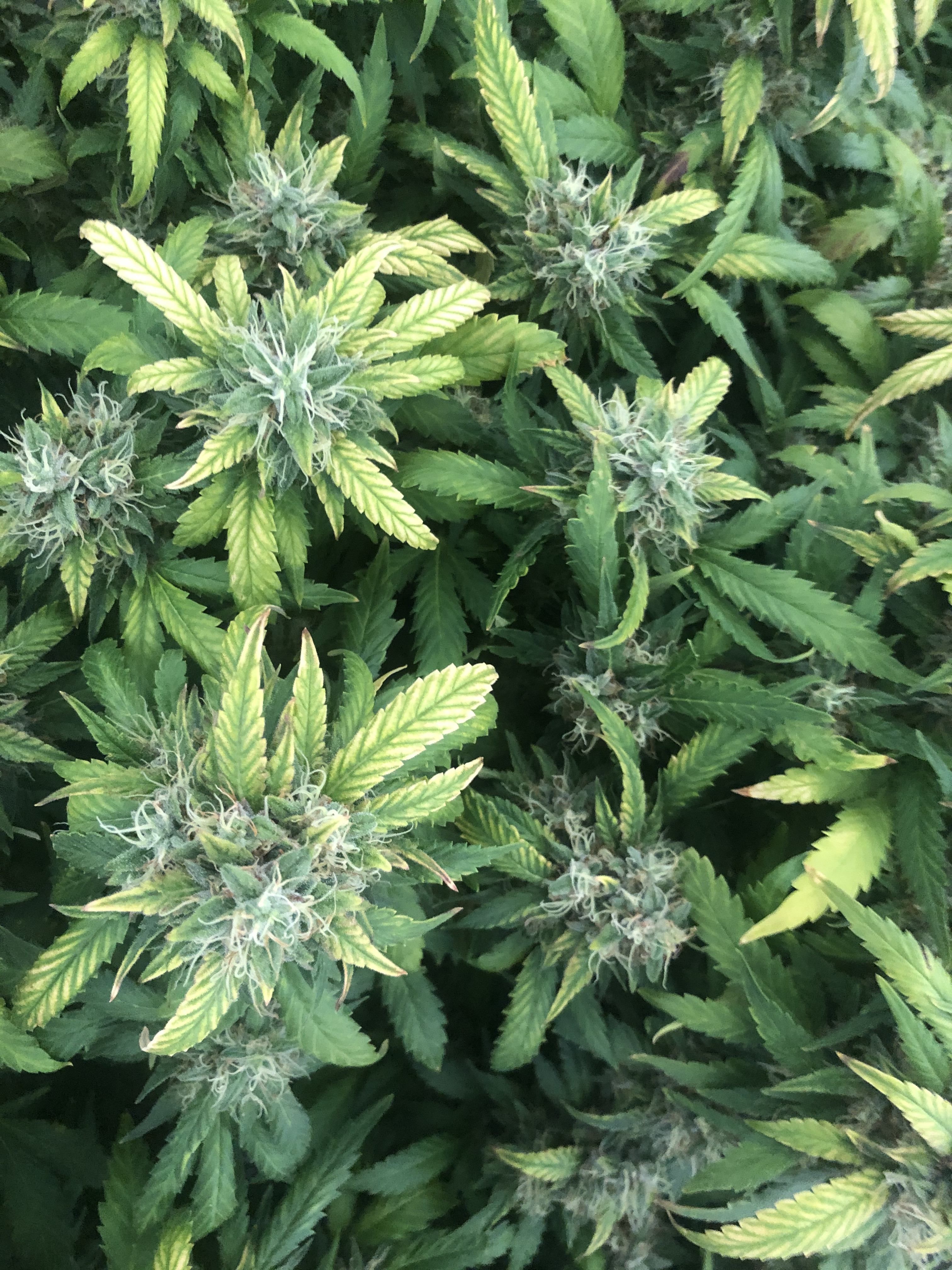 Why are you flushing? Looks weeks away and do you still give grow? That fert i don't know about it says to give both during flower is what i'm asking? What's the bottom half of your plants look like looks real dense full of leaf how's the air flow? Are those pots drying out?