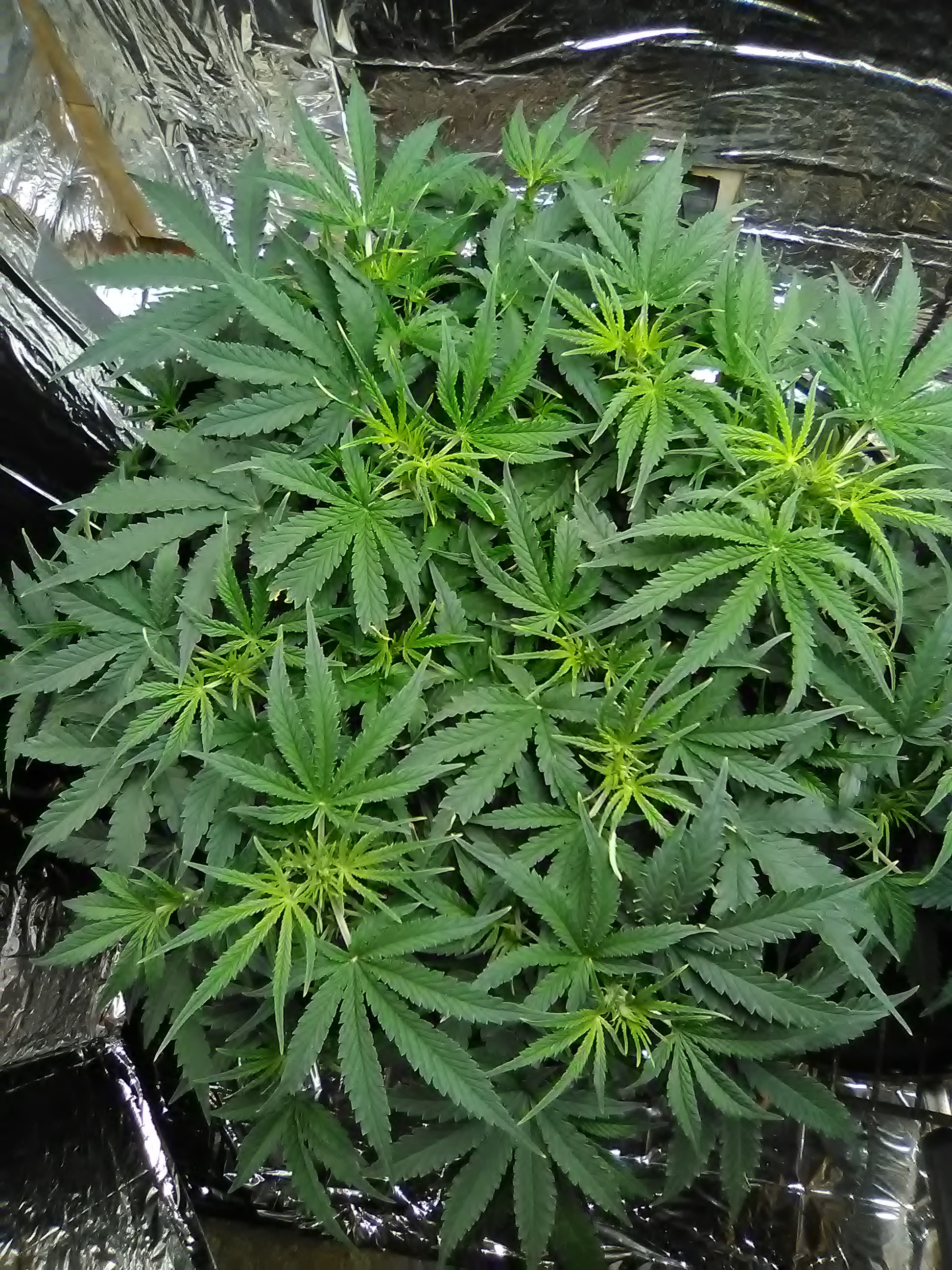 To defoliate or to not defoliate that is the question.I have been doing selected defoliation during her growth to open up bud sites but stopped a few days ago so she has gotten farley bushy.She is now going into flower should I keep doing it or stop and let it grow out till she is done. I don't want to slow growth down at this point but i'm inclined to do it to open it up a little bit.Its a white widow autoflower Click image for larger version