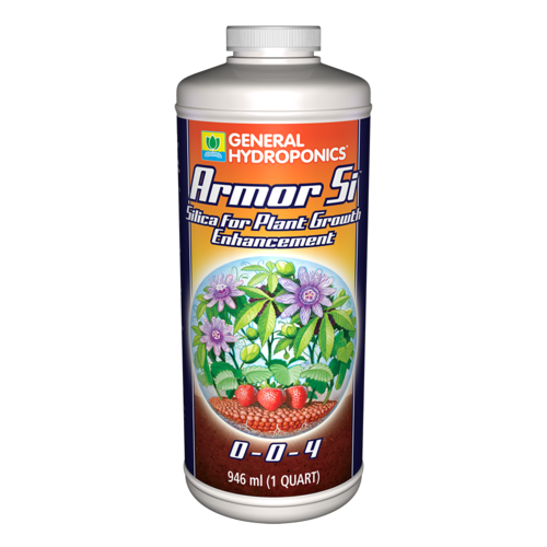 Armor Si delivers the benefits of Silica and Potassium; increased plant strengthening and stress resistance leading to increases in agricultural production (yield). Beneficial in hydroponics, Coco-Coir and soilless blends, potted plants in prepared soils as well as for garden cultivation. May be used as a growth enhancer in addition to your regular fertilizers. Use mild solution for young plants, perennials, and as a foliar spray. Use full strength solution for fast growing annuals during foliar and structural growth, as well as flowering and fruit production. Silica benefits: Strengthens plants, improving plant stature which leads to advantageous exposure of leaves to light. Improves stress resistance, drought tolerance, heat and cold stress tolerance. Potassium benefits: Improves plant growth including structural and foliar growth, increases yield, improves flower and fruit production.