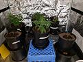 The biggest autos are now 16 days old. Blueberry X Cinderella Jack and Northern Lights x Lemon Skunk -both FBLs. The NL cross really got to praying, so I lowered it by a couple inches -seems to be way happier. I have to transplant them to 2-gallon soon-soon, like the next 8 hours. Next time I'll start them all in 2-gal from the get-go. I was out of 2 gal at the time. If I do it right, they'll never know they got new shoes. Slide