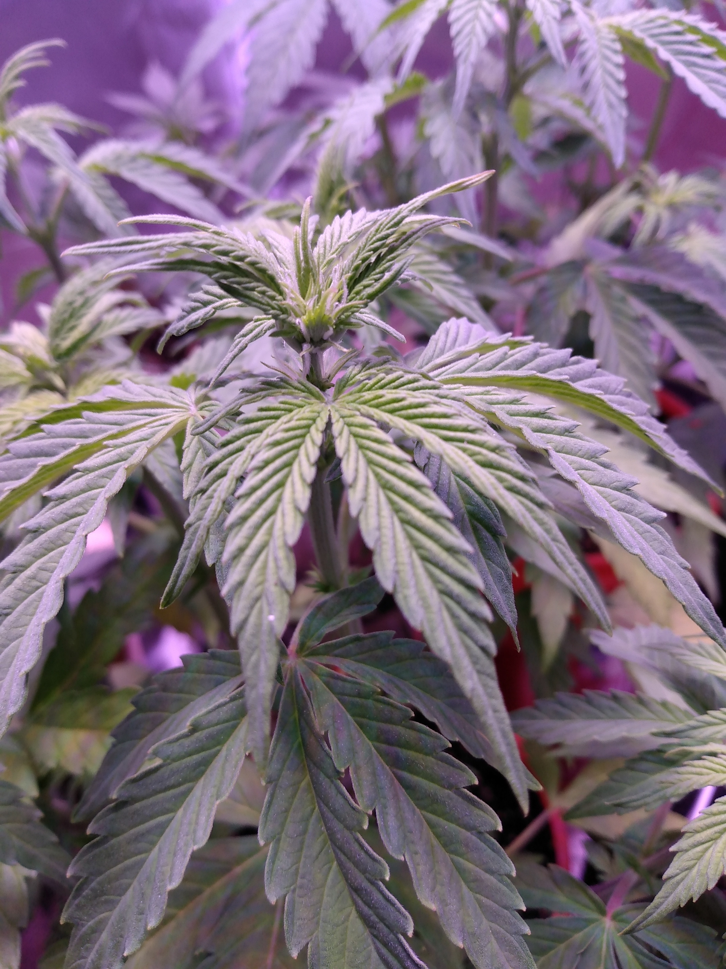 The photos are growing fantastic. Gorilla glue, zkittliez, wedding cake, tye dye all are just bursting with growth. They are hitting the walls of the 4x4 not sure i can keep these in limbo for another month while the autos finish. I have another tent an light but it's in a unheated area outdoors. I've used it for spring but winter is a constant problem with keeping it heated over 76f an above 55f during lights out. So i can run them autos 24hrs is the only way to keep temps up for me an i put a chicken coop clamp on light with a 54watt CFL an use another Lamp that only has blue/white. So 2 450vipars only 1 with full spectrum an a clamp on heat lamp.
