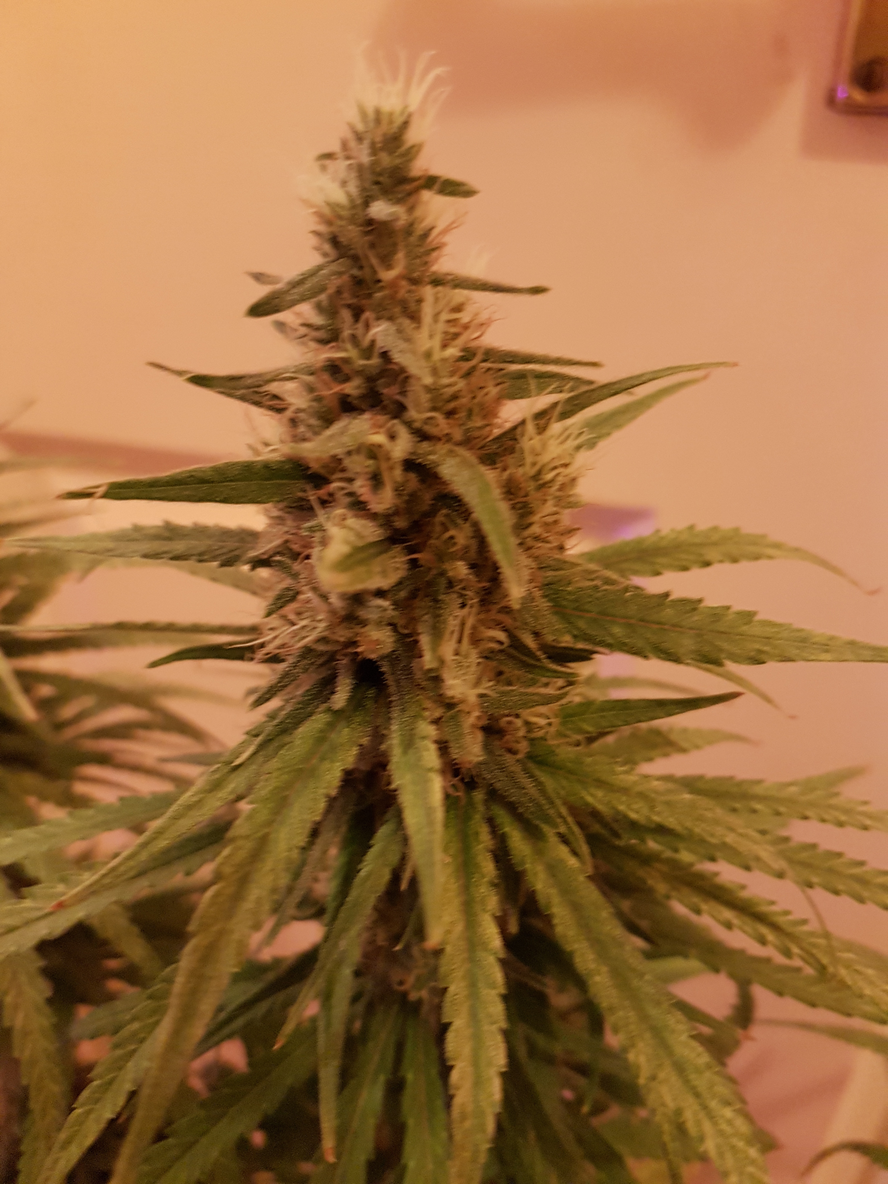 gbauto Yeah she looks to have a long way to go when looking at her. She was mostly brown hairs before the foxtailing started and now the buds look immature but the trichomes say otherwise Which is causing me a bit of a dilemma. I'm going to harvest my other 2 plants tomorrow and i'm thinking of harvesting this one as well at the same time. I've held off a couple of days on the others with the hope of doing them all in one go. The plant in this post has still had a little foxtailing going on and has some white hairs but the trichomes are looking how i want them now.