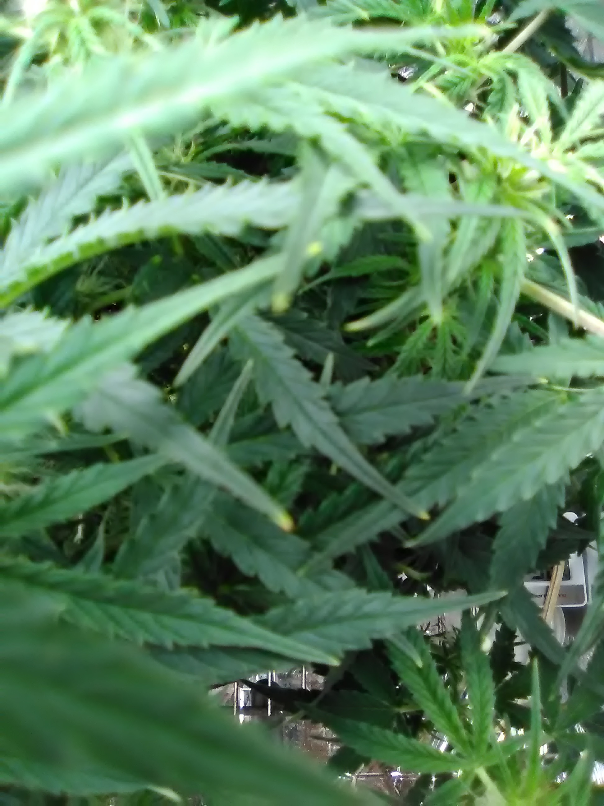 Day 49 Is this the first sign of nutrient burn she is in the first weeks of flower. it is in soil and I have only gave her 2ml of calmag and 1 tbsp molasses once a week + water ph 6.0-6.5 and the 1 first shot of a flower stacker 1ml 4 days ago Click image for larger version
