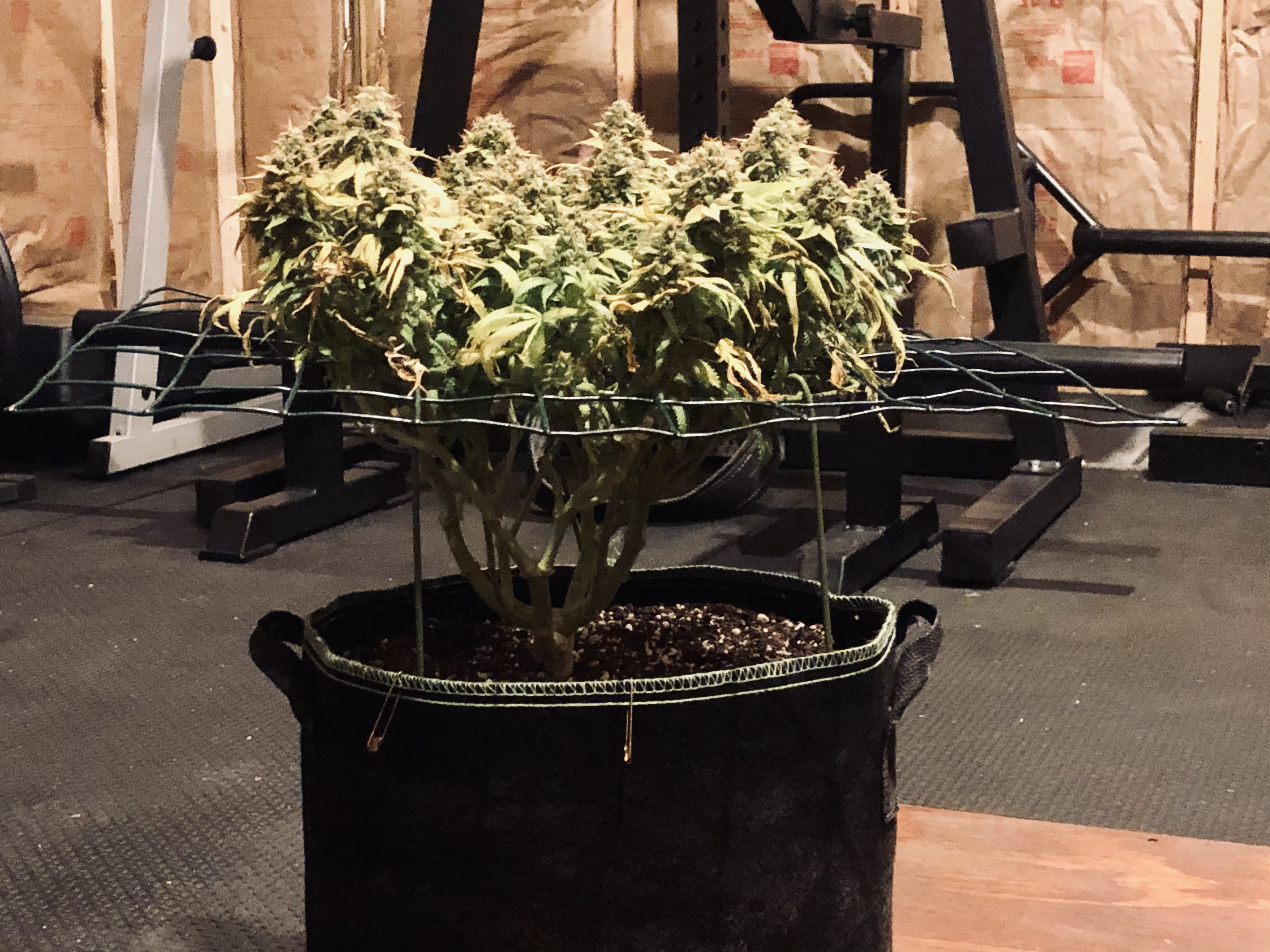How long you plan on vegging these plants will determine your final pot size. I usually don’t go 7 gallon unless they’re getting a full 8wk veg. Otherwise you’re just using more medium and water than needed. Your net should also be lowered for a proper ScrOG. I’m not sure what training you’ve done so far but as soon as I pot up to the final pot the go under a screen and start growing horizontally. Check out this member’s tutorial for a grasp of how to ScrOG. Most ScrOG articles are badly written and stay away from the weaving in snd out of the net bs. Just keep tucking everything underneath the screen until the buds are ready to start growing up. I added a couple pics of a plant I started harvesting last night. I like the screen to be just high enough that I can still easily water. Anything higher is wasted space and extra time vegging.