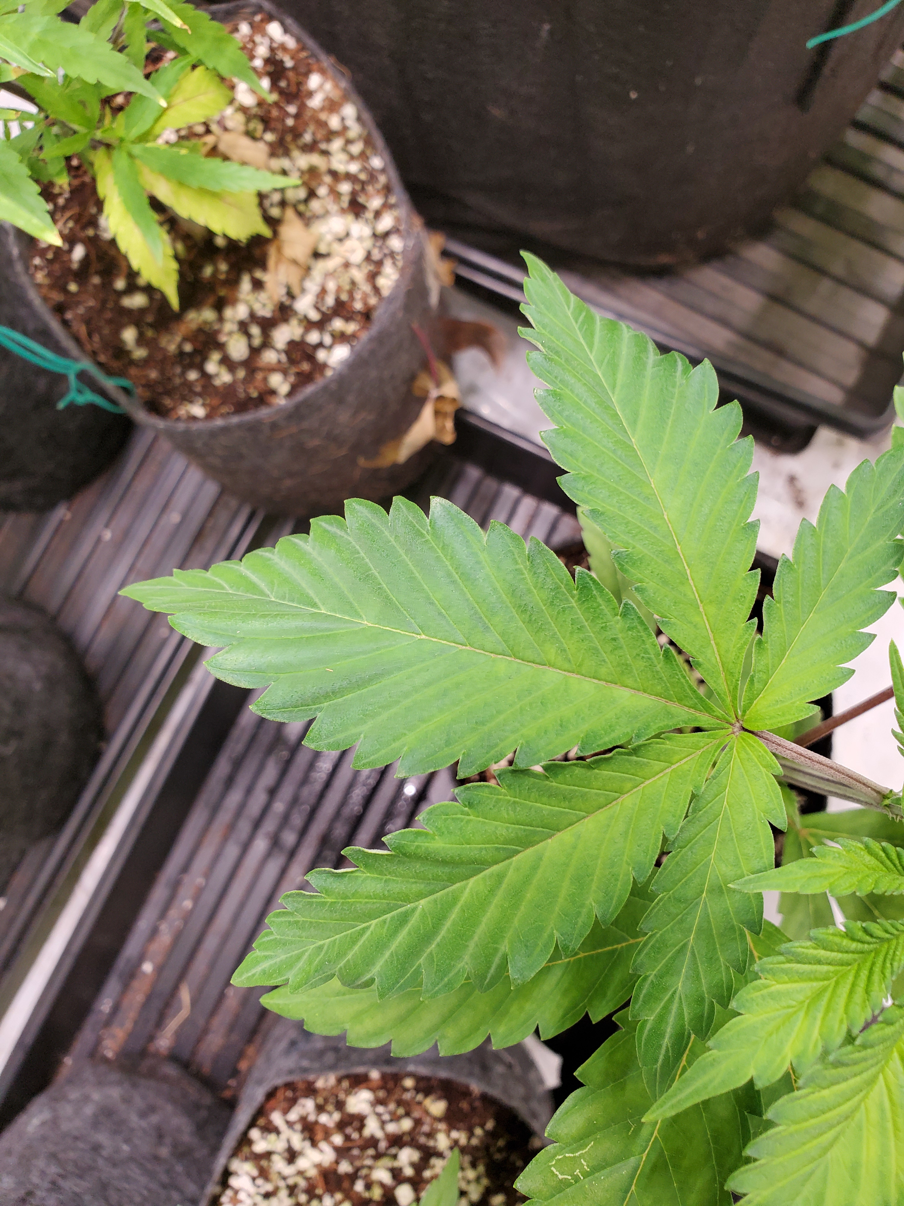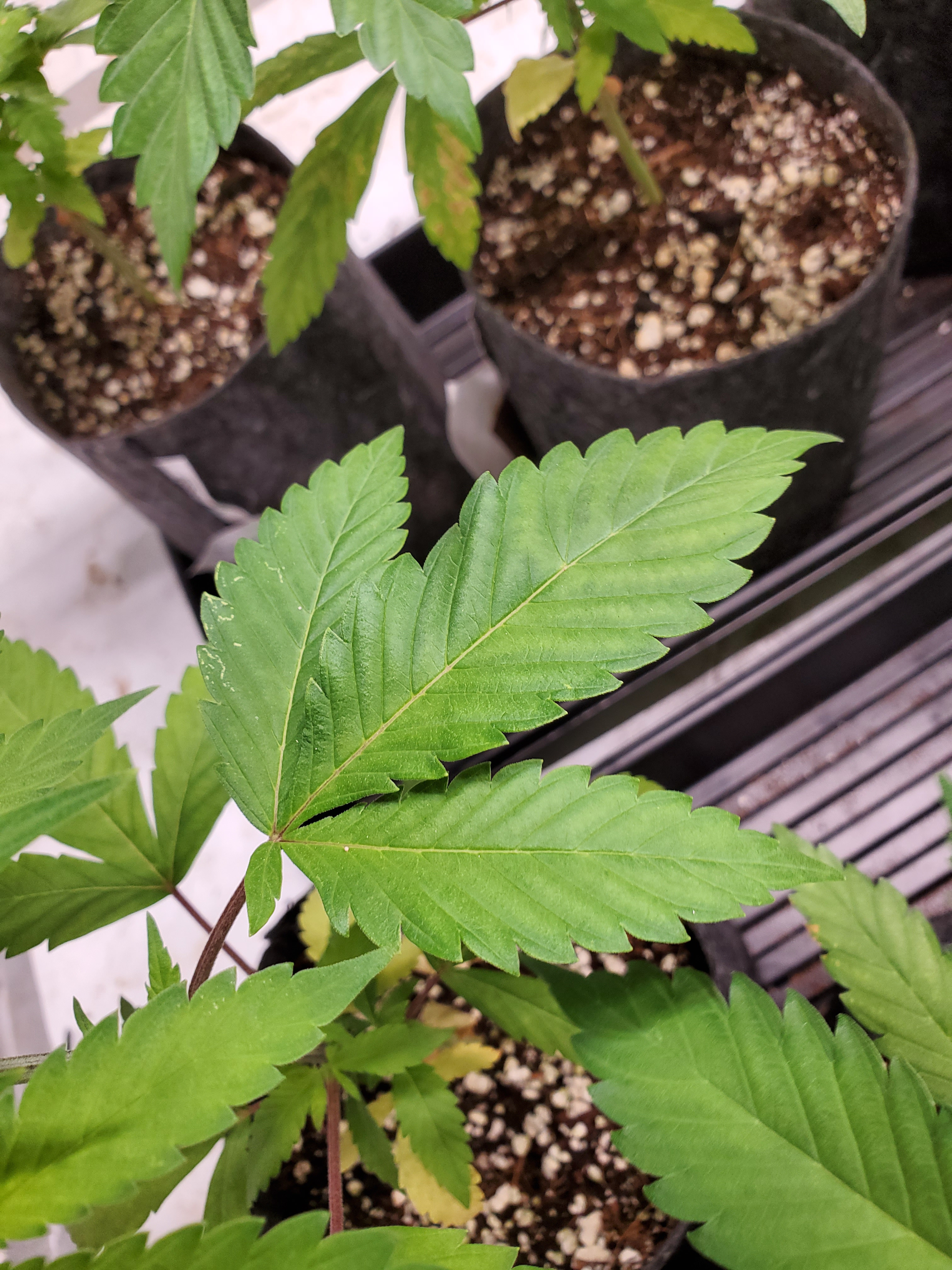 Room temps are set to 79°F, with a oscillating fan blowing across all the plants. Lights are LEDs, both set on the 200w setting, height set to 28". Mixed strains but all indica dominant hybrids. Any help would be appreciated, thanks.