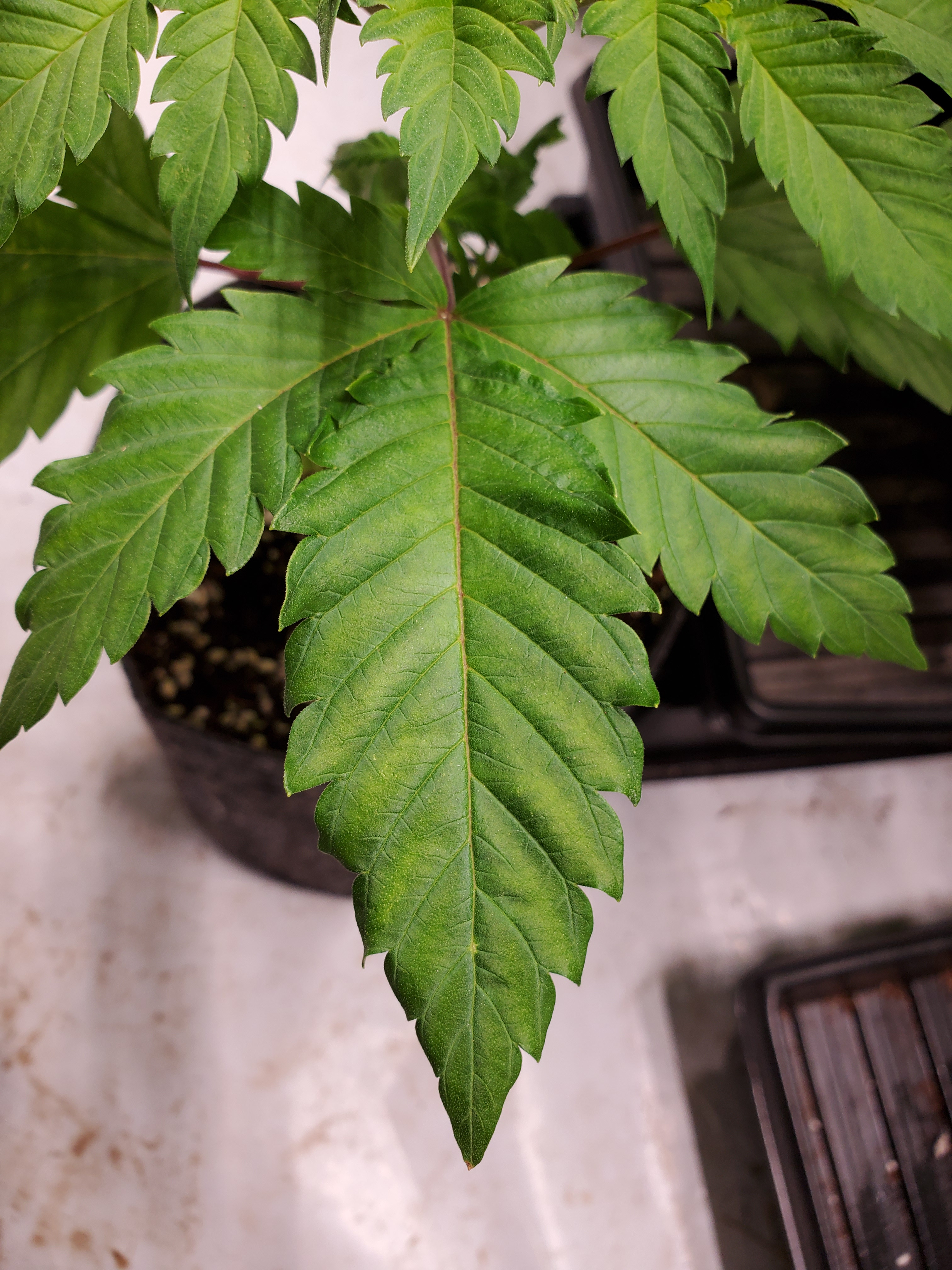 Hi everyone, I'm having some issues with a few of my plants that are in early veg. I first noticed it in only one of the plants, started out as just the edges of the leaves looking, (for the lack of a better word) ruffled. Now almost all have a few leaves that have twisted, and have the same ruffled edges.
