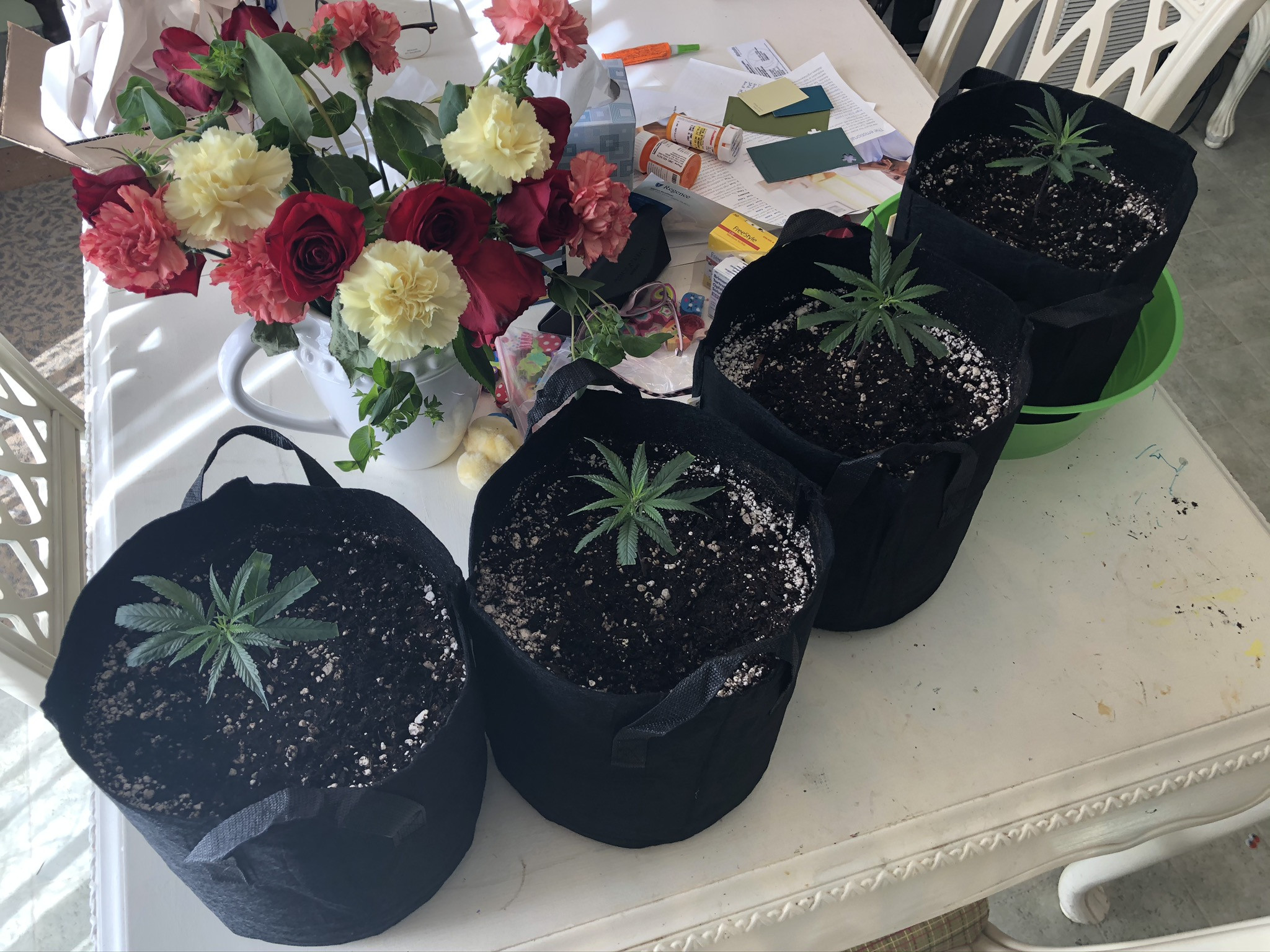 I use a 4x4 tent for pheno hunts using coco in 3 gal bags and only let them get to the 5th node-top for a cutting and flip to flower.