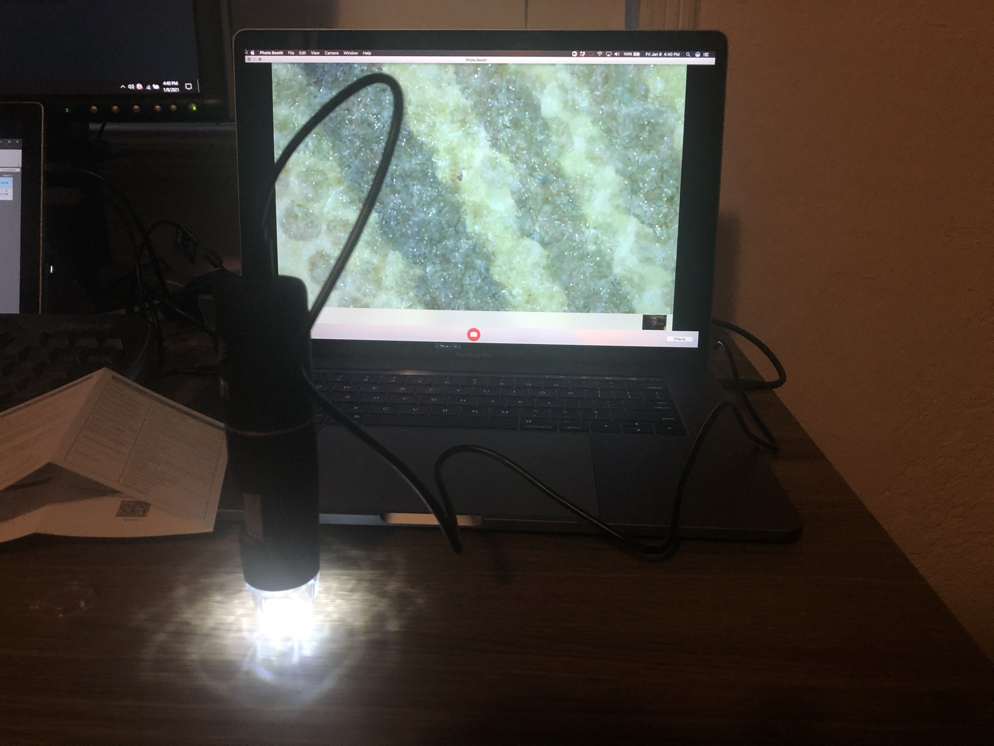 I’m not sure what was wrong with YYCannabis’ two usb microscopes but this thing is AMAZING! It was uncharged out of the box so I plugged it in and by the time I read the instructions I turned it on, selected it in the Photo Booth app per instructions, turned the LED light all the way up, set it on my desk and turned the focus until it was.