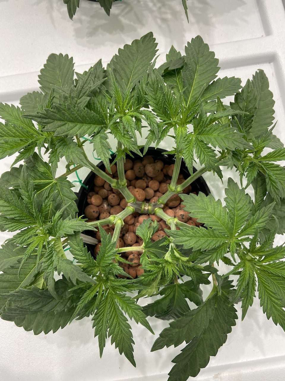 I follow Nugbuckets' tutorial on mainlining, because his method makes more sense to me: stem growth should be equal, and final bud sites should be equidistant from trunk. These girls are about to start week 5 of nutrients; they're around 6 inches tall; growth just started to pick up. I figure they have two more weeks to reach 14 inches before I throw the switch. They were germinated in mid-November.