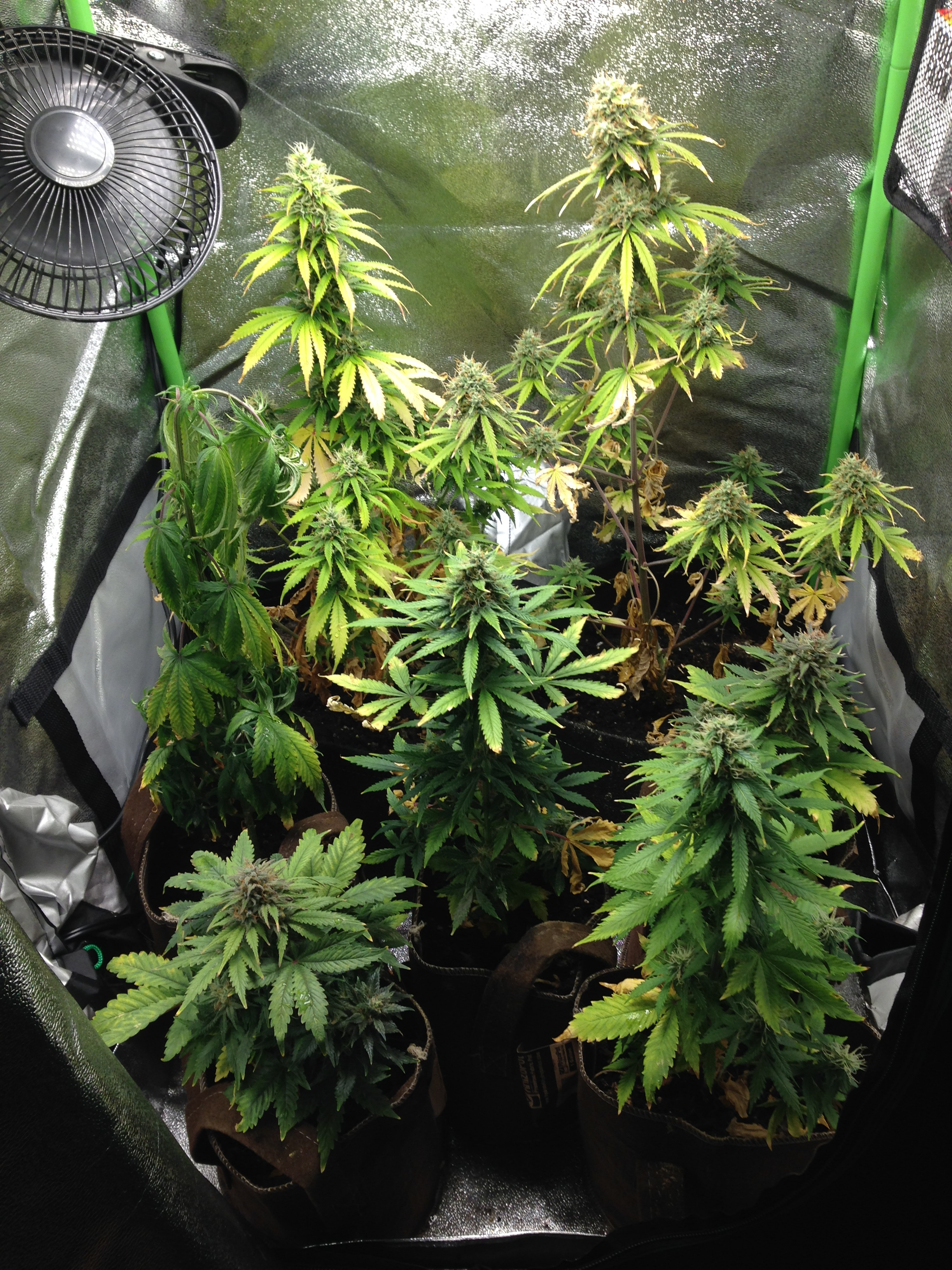 As an aside, I am aware that a SOG setup with both 1 gallon and 2 gallon pots is not ideal; however, I was experimenting with pot sizes to figure out my set up, plus a few seeds did not pop and I was hoping to maximize yield, otherwise, I would have used all 1 gallon pots, Maybe that was a mistake too, I don't know...