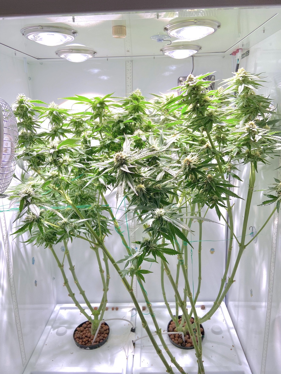Hi Mcnugs, These are my 2 grow boxes and my first manifold from my previous grow; here they are well after 3 week stretch; I kept all colas that made it into the sweet spot in the light, had to do quite a bit of super-cropping. I think it's best to wait until after 1st 3 weeks to do trimming: I've stunted growth in the past by doing it, so I wait now.