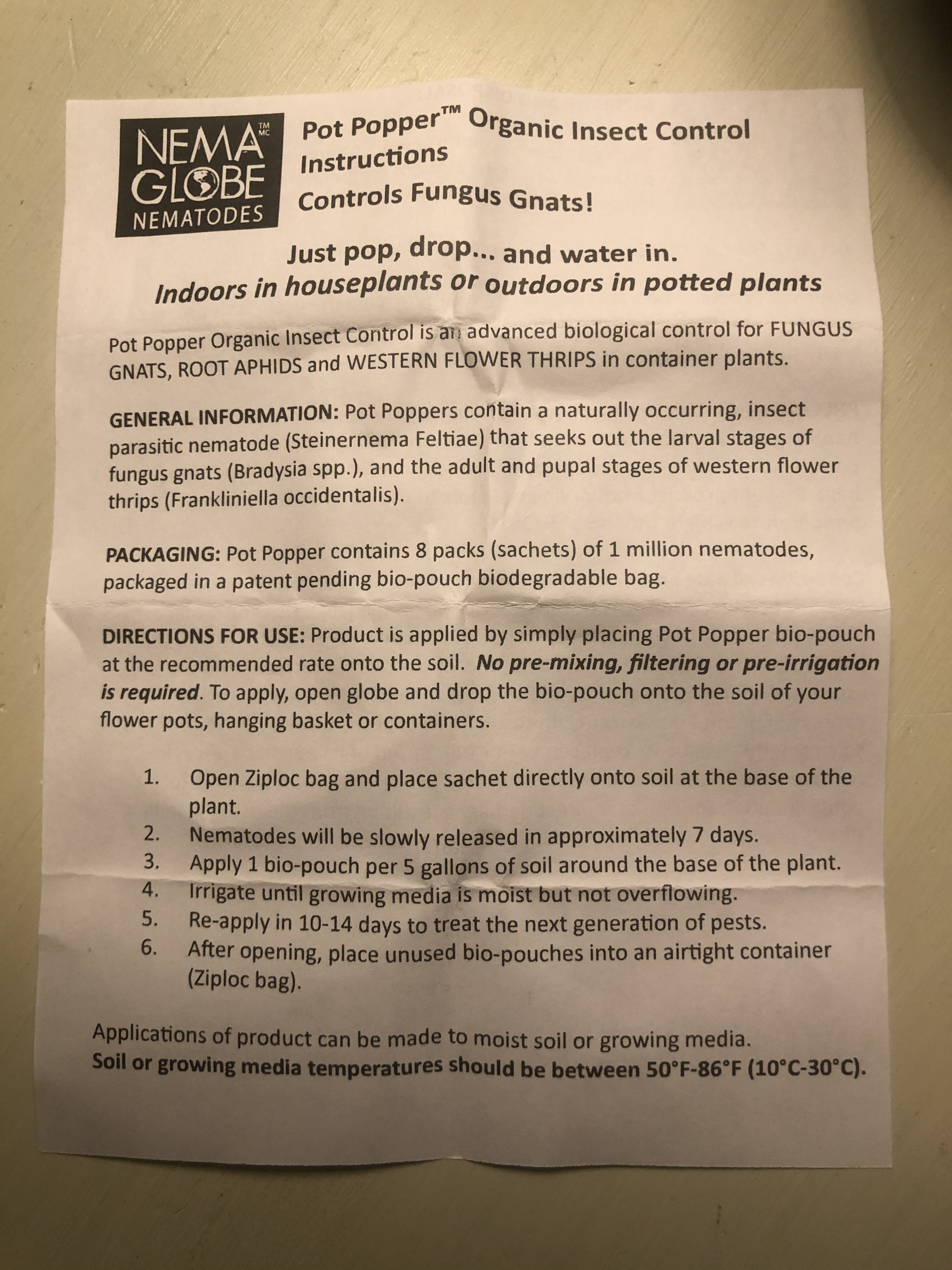 so I read the instructions again and like a dummy I did the first application and forgot to do a second 7-10 days later to catch the next generation. I had enough from my order to treat the propagation plants in the small tent. There’s been virtually no gnats in the flowering tent so the single treatment must have done jobs.