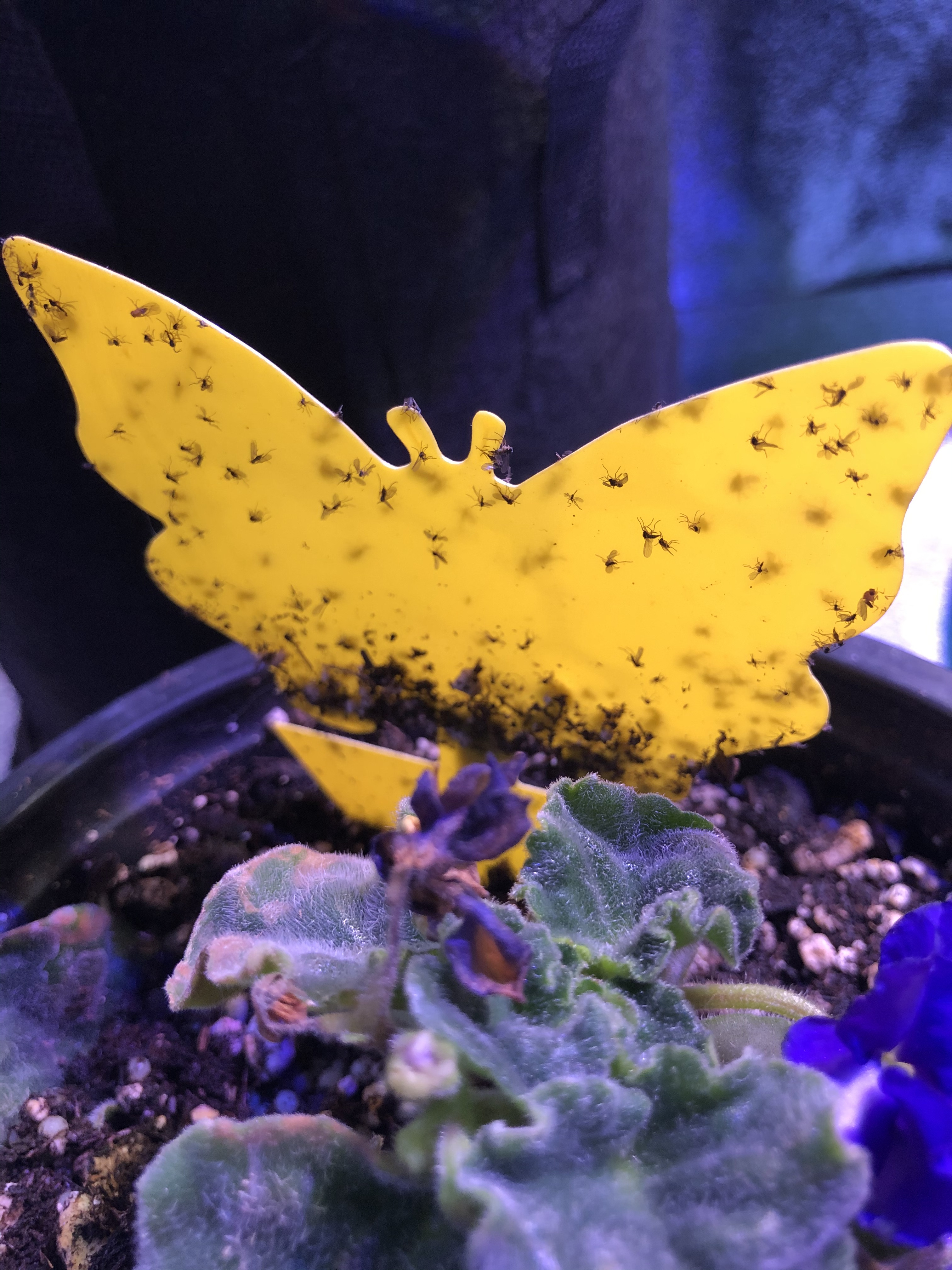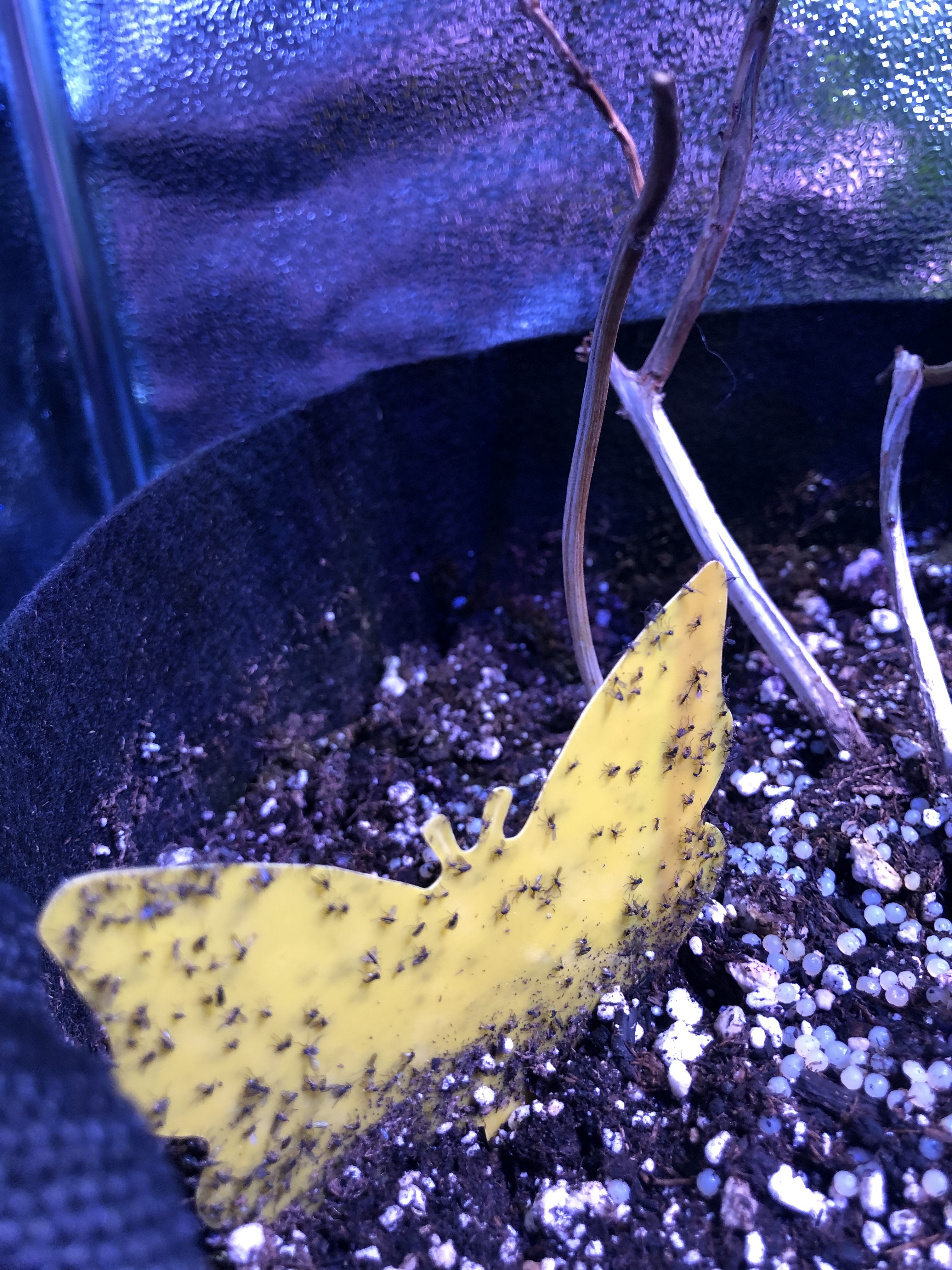 During my first grow which started in October I had 4 cannabis, one basil and one African Violet. All are planted with the same soil. A few weeks ago I noticed fungus gnats on top the AV’s soil. I immediately ordered and applied neem oil and the yellow fly sticky traps. Wow those sticky traps are great!