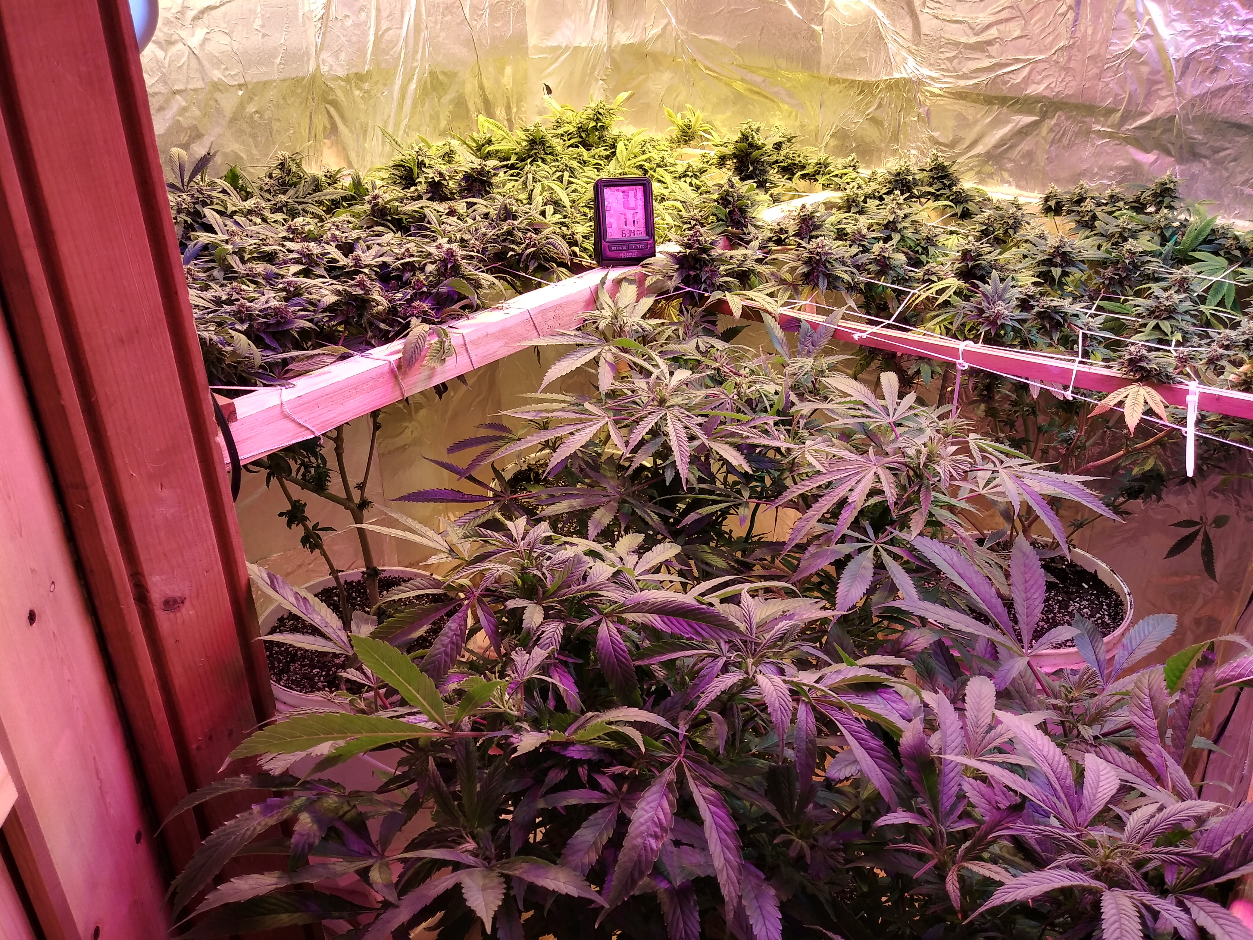 5x5 DIY flower room with 3 nets. 600w Hid mars hydro 600(100w) and Chinese led (150w actual).. Promix C coco mix +20% course perlite. General hydro nutes at slightly under full dose+ cal mag and molasses every other water.