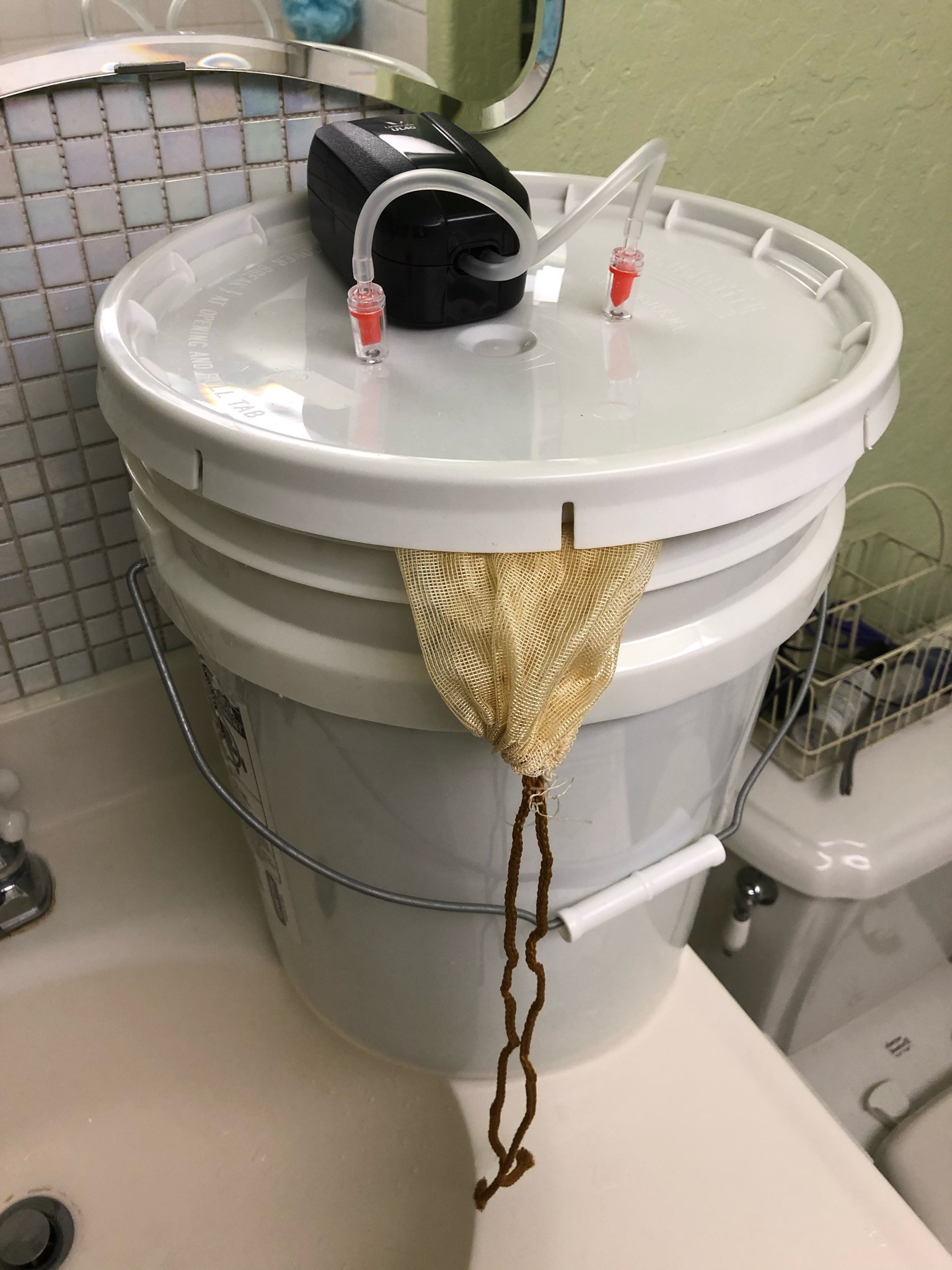 Day 1 - I fill my bucket with 3 gallons water. The “bubble” lid aerates it for 24 hrs to dissipate anything in this city water (which is nice water).