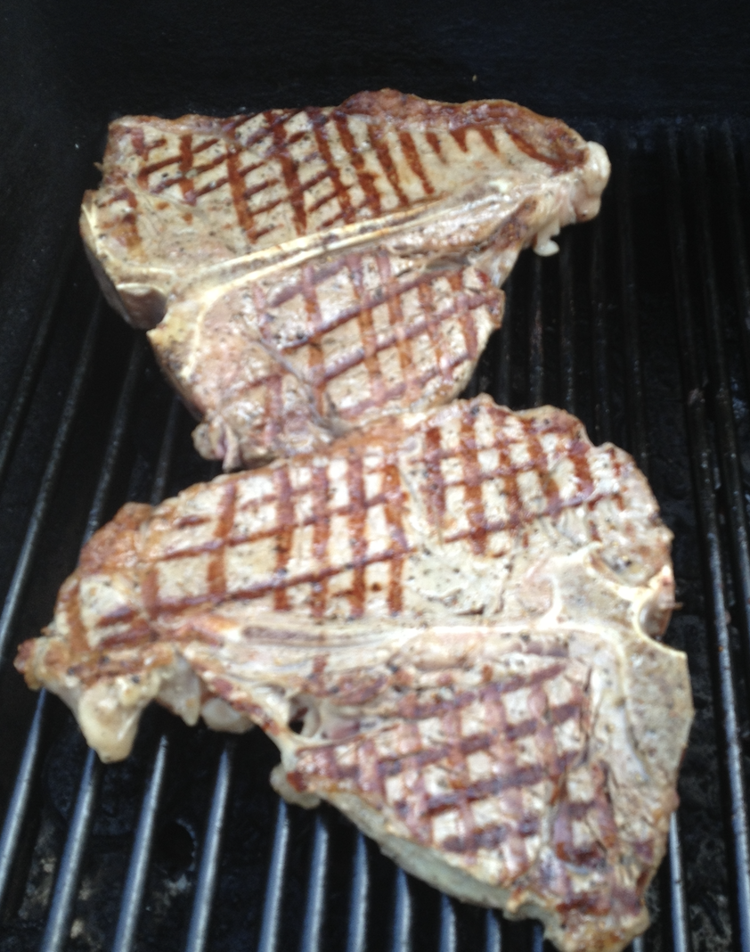 Our munchie vittles. Grilled Porterhouse 1 1/2" thick, Potatoes Anna (Braised in garlic butter and homemade chicken stock and topped with grated Parmigiano Reggiano, pan roasted Brussel sprouts and for dessert a cranberry cheesecake. Yummers!